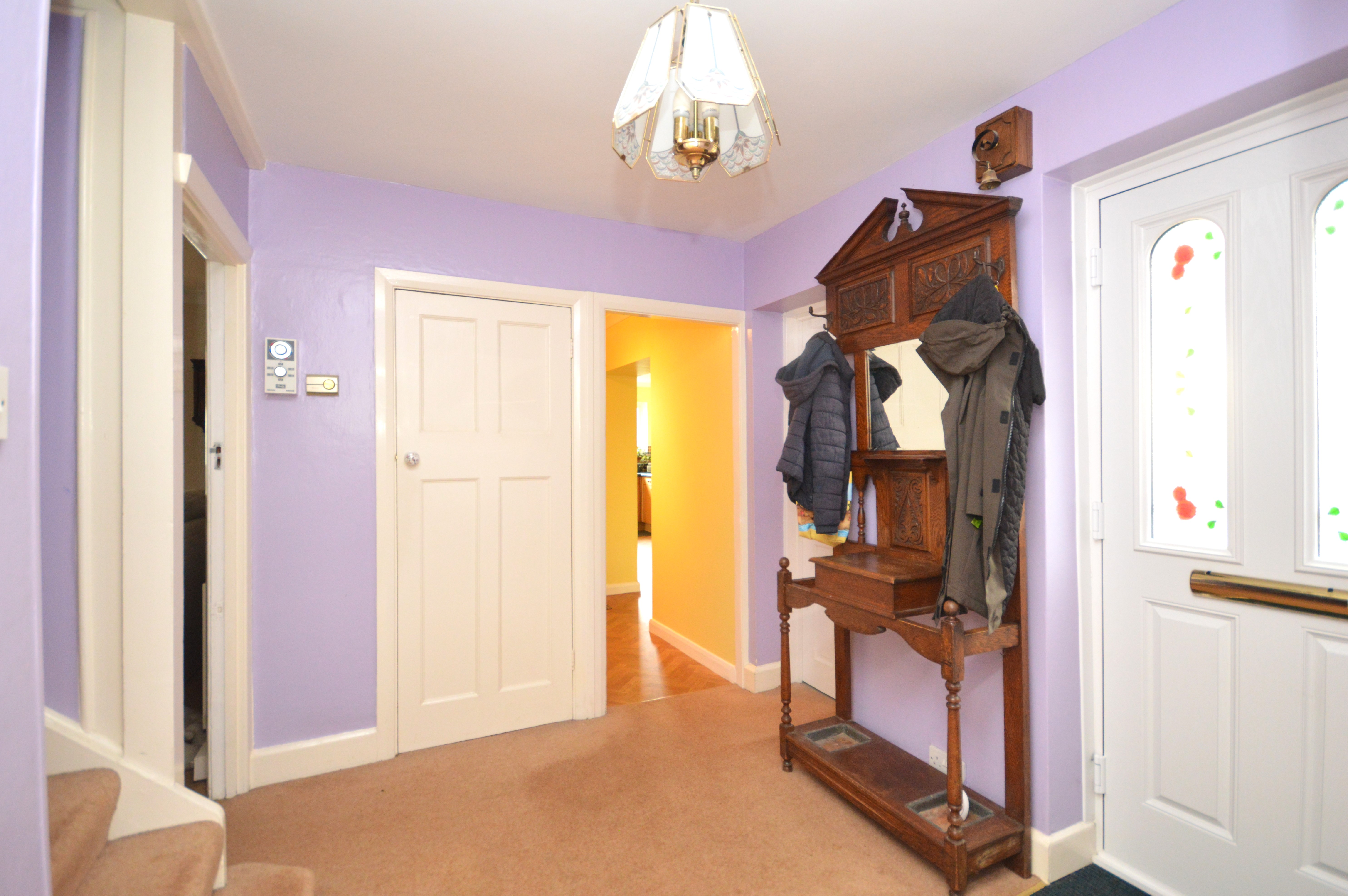 Composite, frosted glazed front door to side of entrance hall with carpeted floor coverings and stairs leading to the first floor landing. Radiator and large coat/shoe storage cupboard. Doors and openings to the following rooms;