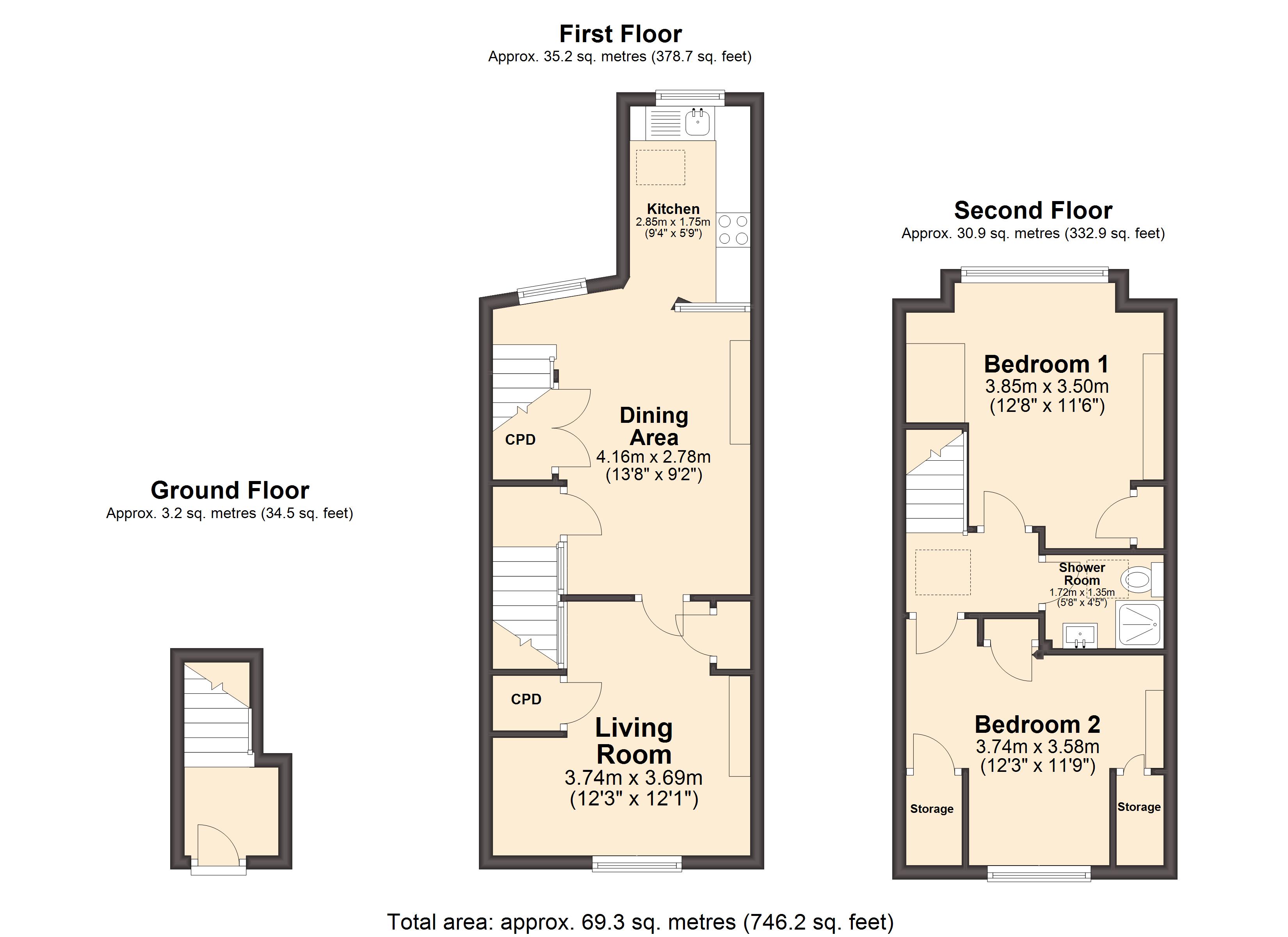 - Approx Sq Feet: 732 sqft