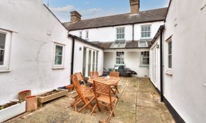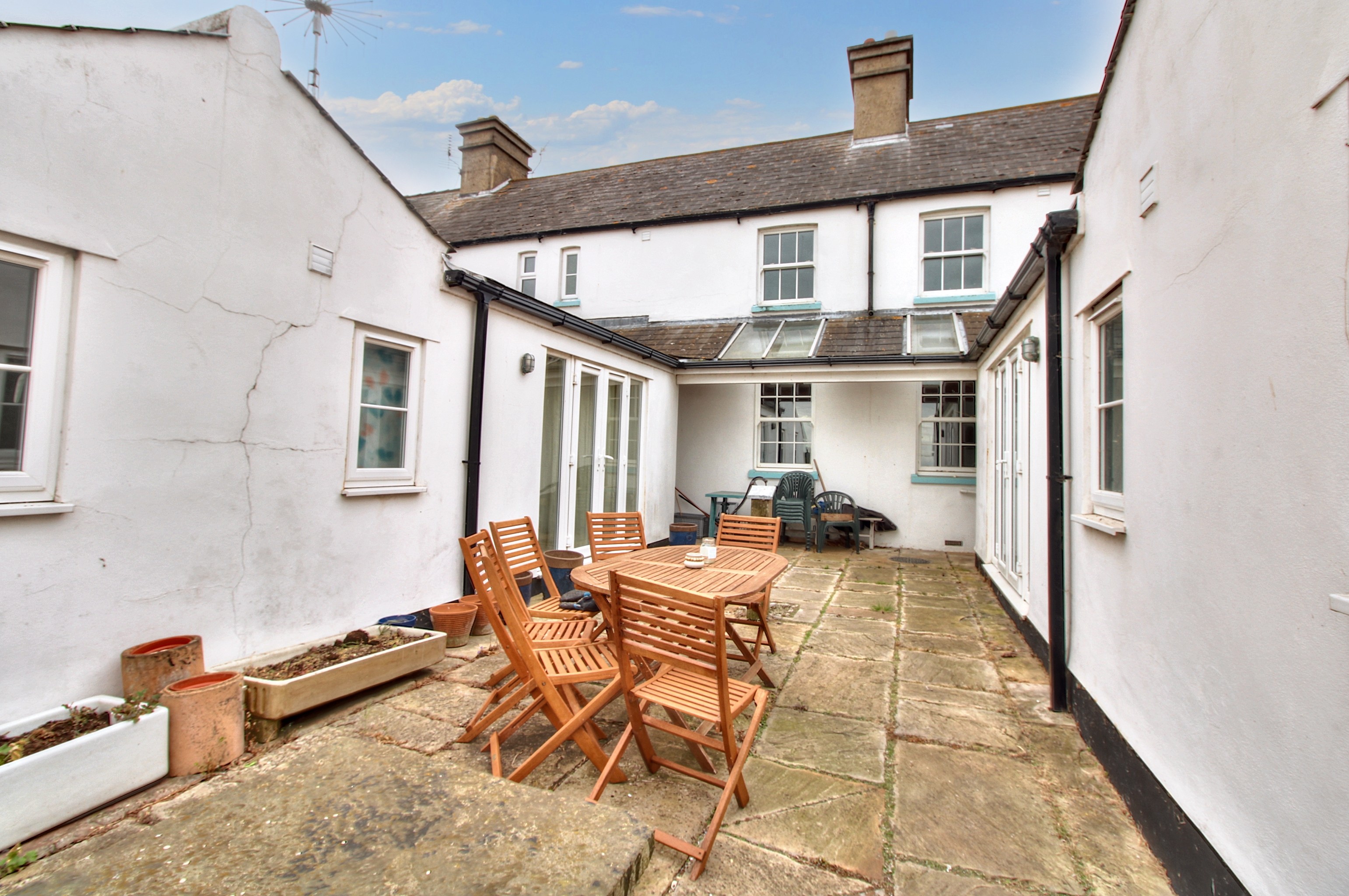The shared courtyard garden is a fabulous sun trap in the afternoon, providing a perfect spot for relaxation. It sits adjacent to the kitchen's double doors and the downstairs bathroom, offering seamless indoor-outdoor living.