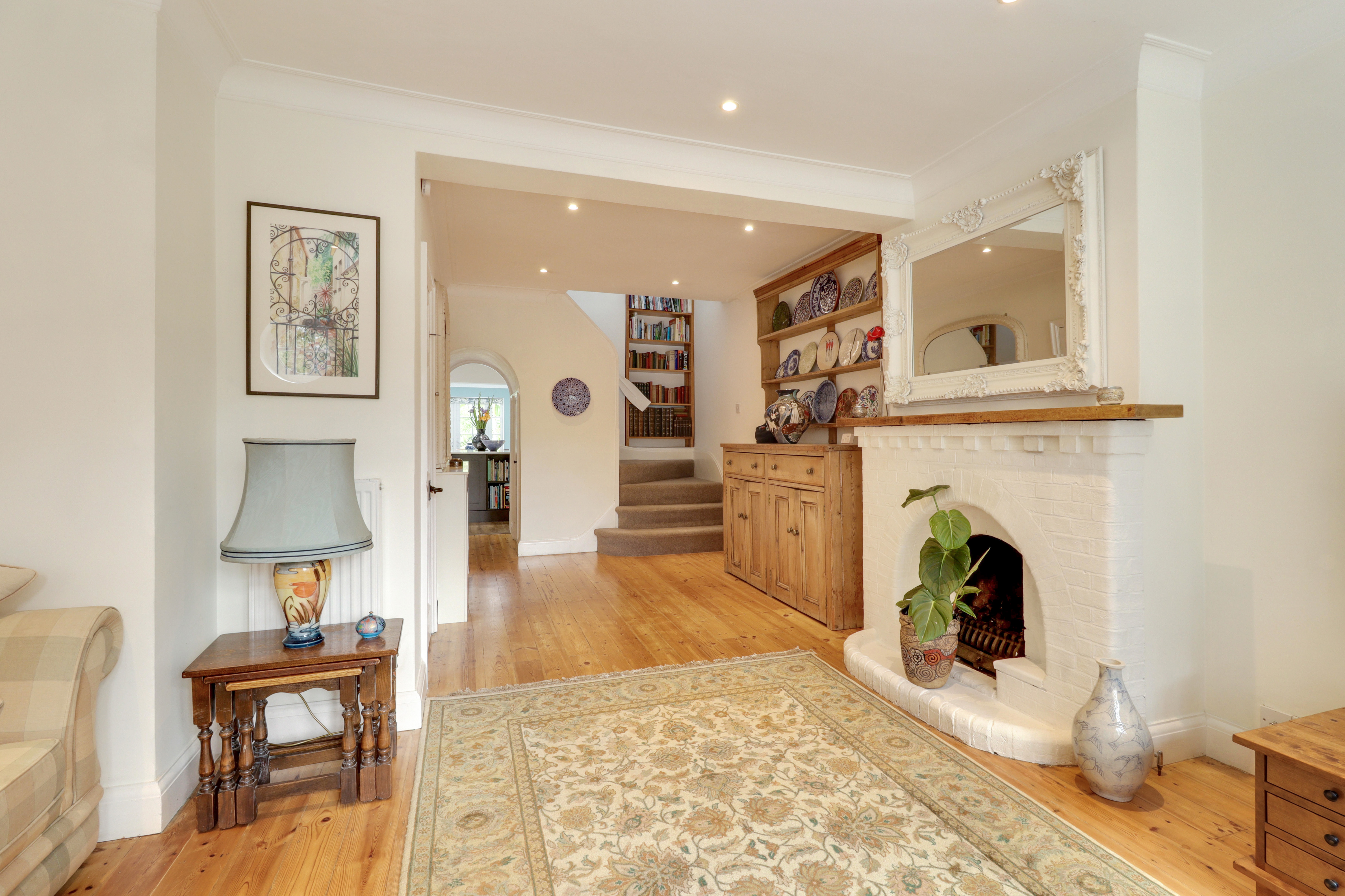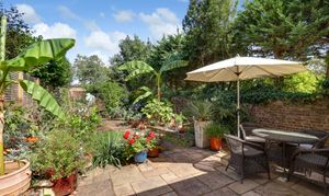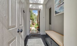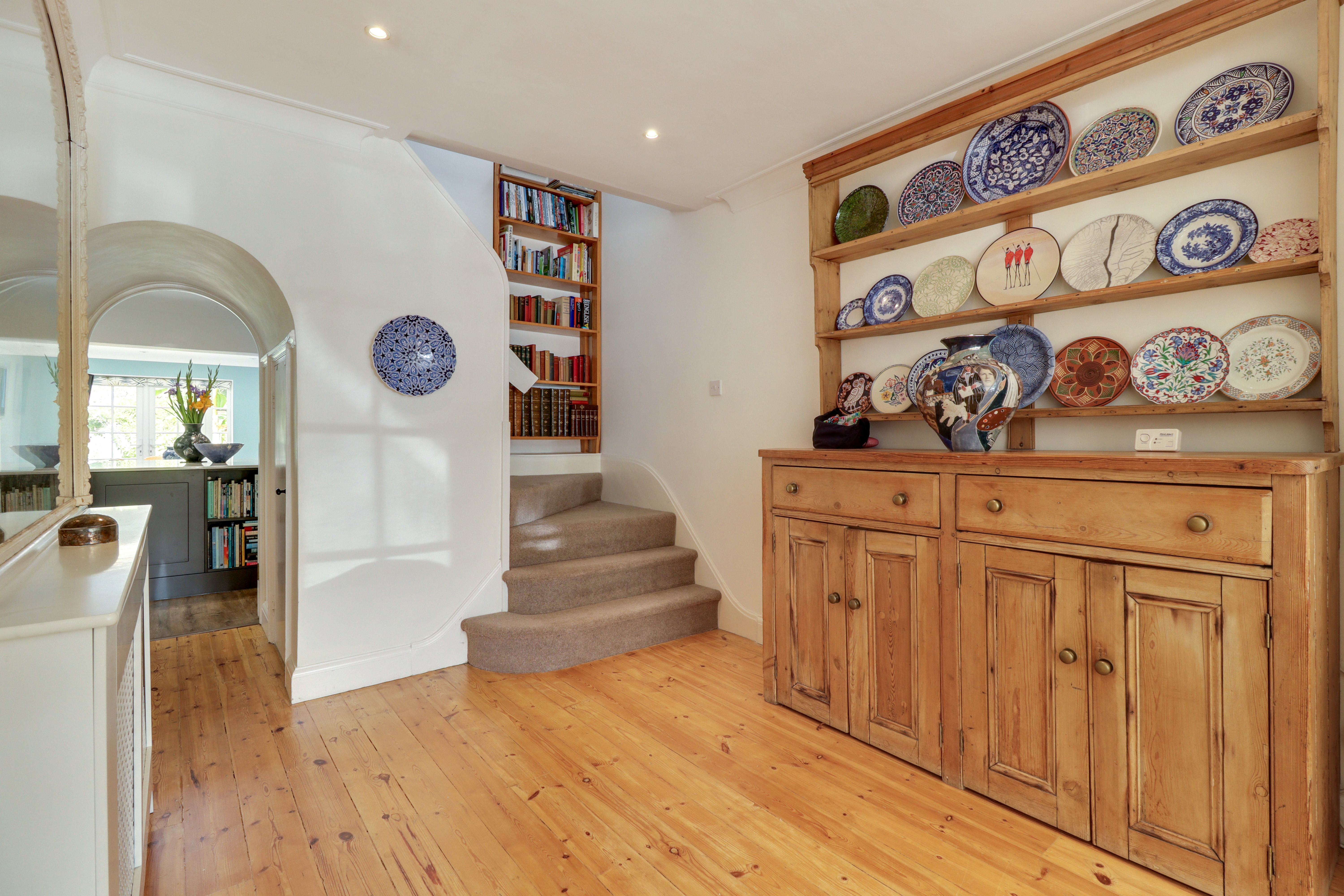 The stunning coach house is set back from the road behind electric gates and the ample driveway can accommodate 3-4 cars, a true luxury in this prime location. There is a large garage situated to the rear of the back garden, which can be accessed through the garden or via the neighbouring right of way.