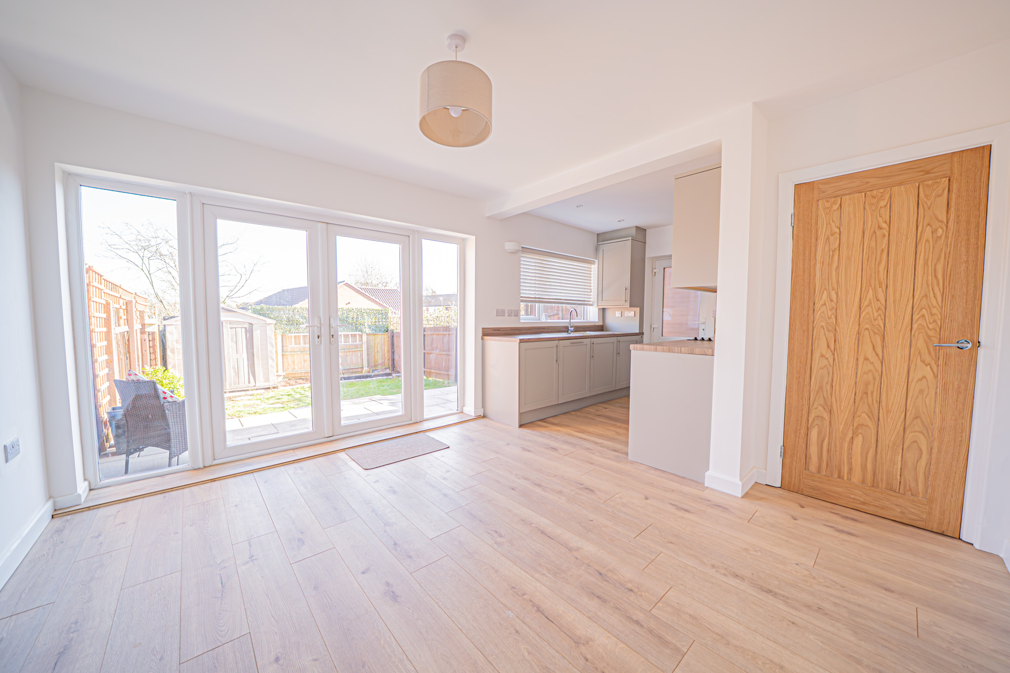 Upon entering, you are welcomed by a bright entrance hallway with a convenient guest cloakroom. The spacious living room provides a comfortable setting for relaxation or entertaining, while the heart of the home is the impressive open plan kitchen and dining area. Here, a newly fitted kitchen features contemporary units, integrated appliances (including oven, hob, and fridge / freezer), and ample workspace, making it perfect for family meals and gatherings.