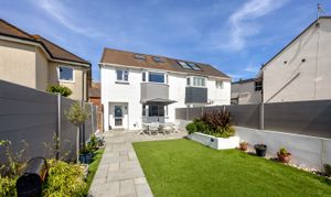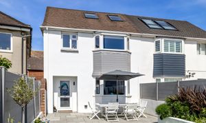 Outside, the south-facing garden provides a generous space for entertaining, with privacy ensured by stylish composite fencing. A second garden area with a patio offers a tranquil spot to relax in the evenings. The property also benefits from parking spaces at both the front and rear, making it as practical as it is beautiful.