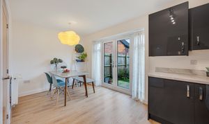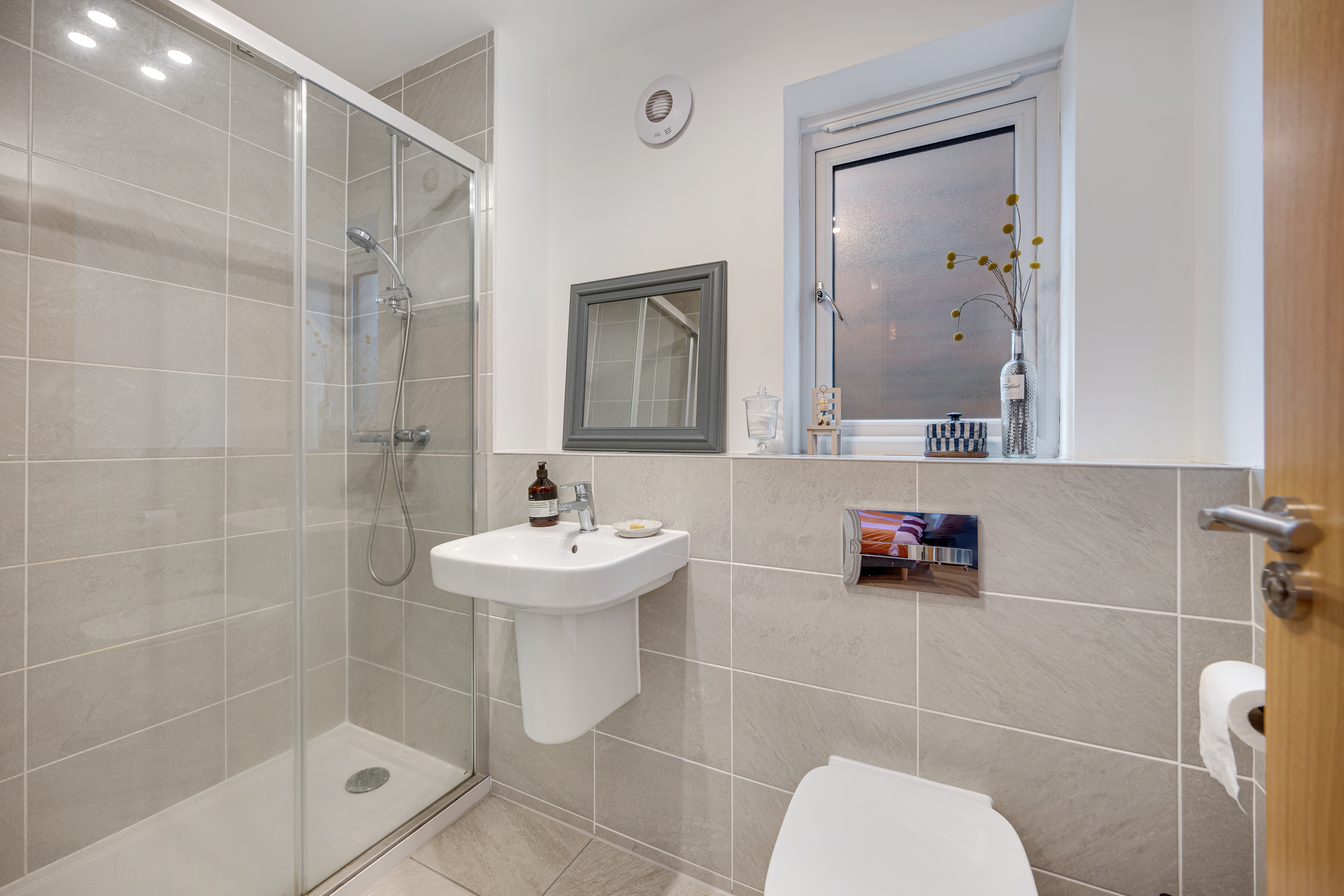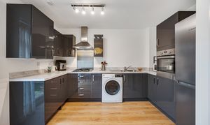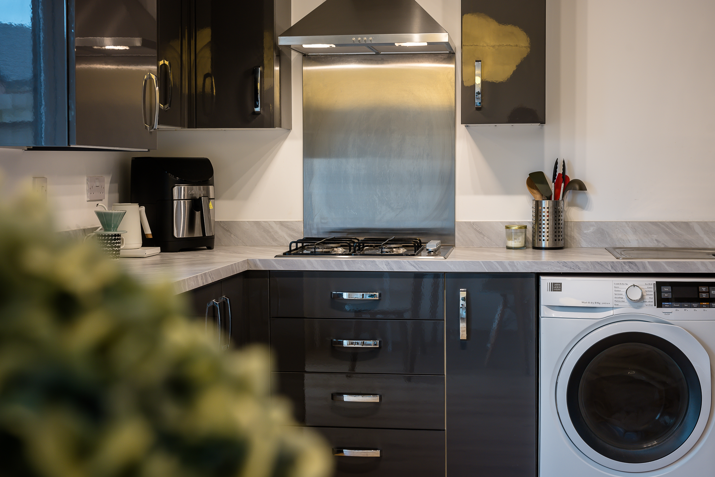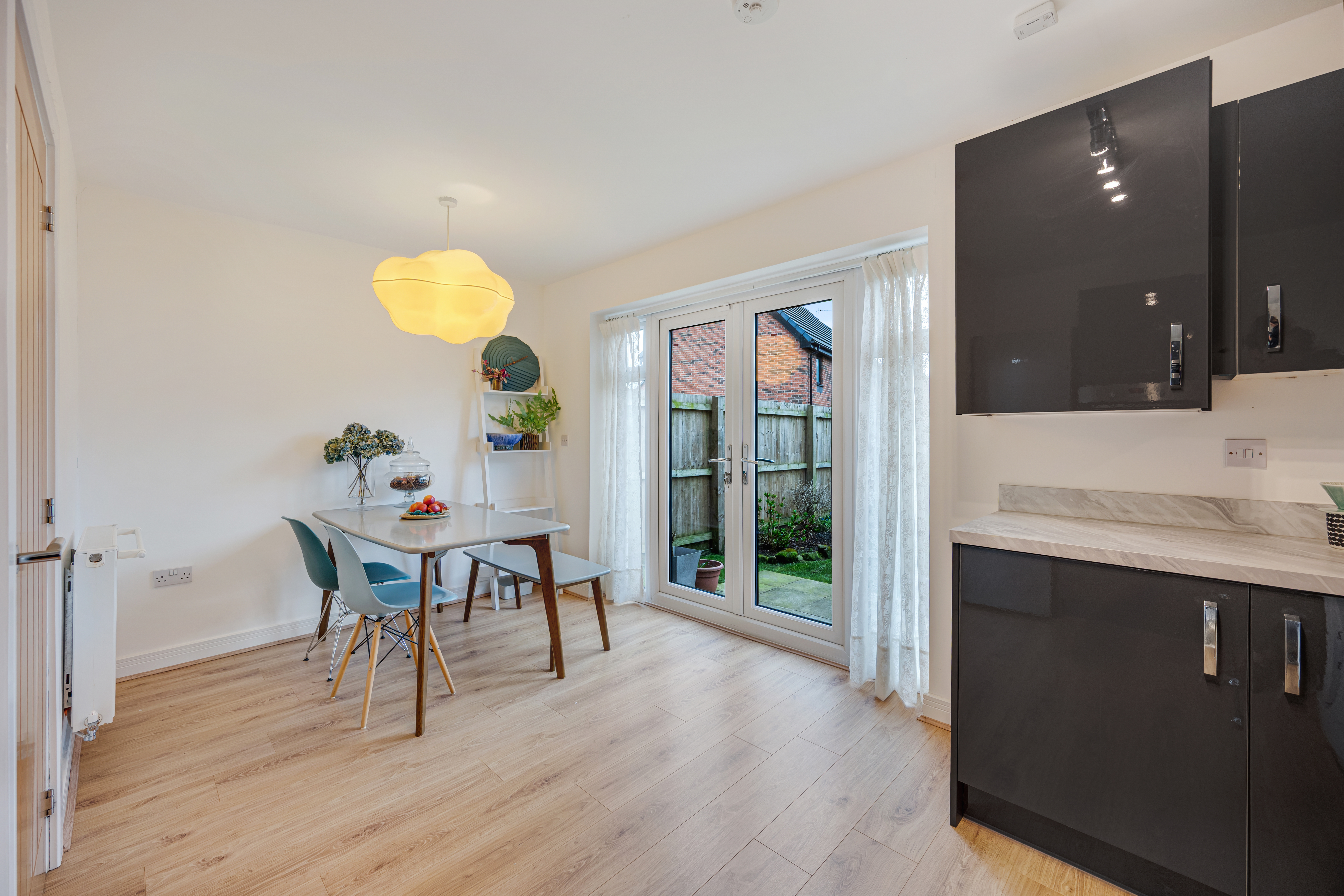 This stylishly presented freehold home offers an abundance of spacious and contemporary living accommodation with practical features throughout to include; a welcoming, bright hallway, leading through to a spacious lounge with a split-level staircase and handy under-stairs storage. The heart of the home is the fabulous open-plan kitchen/diner, featuring charcoal grey high-gloss units, stainless steel splash-back, built-in oven, gas hob, and space for appliances. This inviting space boasts french doors opening to the westerly faced, private, enclosed rear garden. A contemporary guest WC adds convenience and completes the ground floor accommodation.