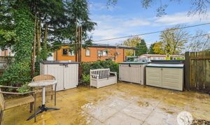 Outside, the property further impresses with a private landscaped patio to the rear, providing a perfect outdoor sanctuary for enjoying al fresco dining or simply soaking up the sunshine. A recently replaced composite decking offers additional seating for those looking to follow the sun all day and if a gate was added, an enclosed space to ensure safety for dogs.