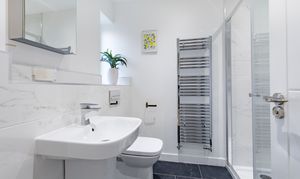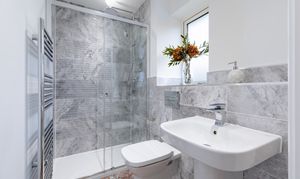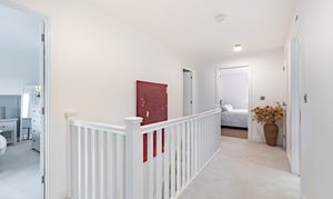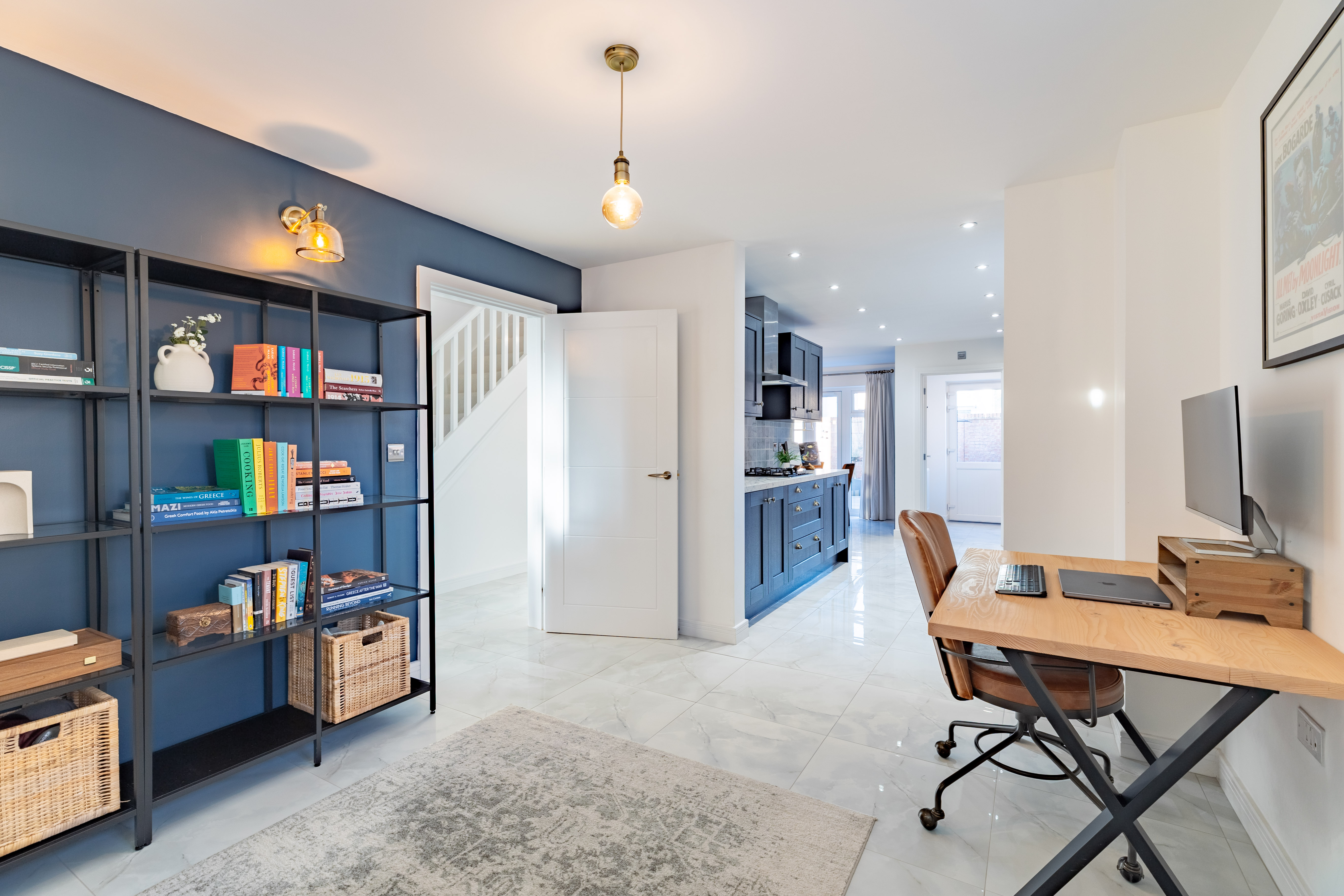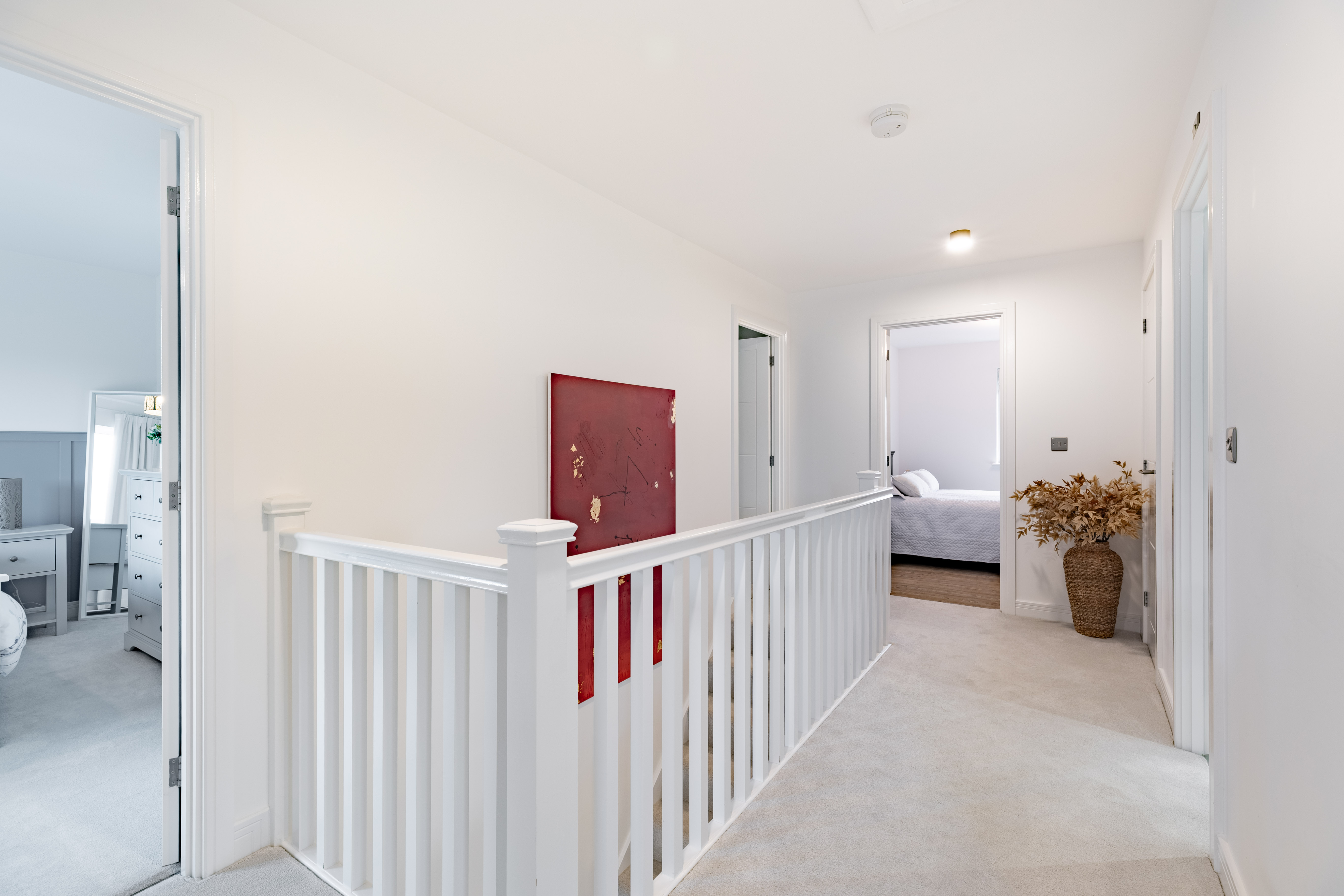 Upstairs, the principal bedroom includes its own dressing room and a modern en-suite shower room, forming a calm and private retreat. Three further double bedrooms offer excellent flexibility for family use, guests or effortless home working. Bedroom two also benefits from an en-suite shower room, while a four-piece family bathroom serves the remaining rooms, completing a well-balanced first floor.