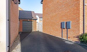 Externally, the home benefits from a rear garden, offering an easy-to-maintain outdoor space for al- fresco dining, play, and relaxation. A high wall and fencing give the space an excellent sense of privacy. To the front, a detached garage and driveway provide secure parking and additional storage, while security cameras and an ADT alarm provide peace of mind.
