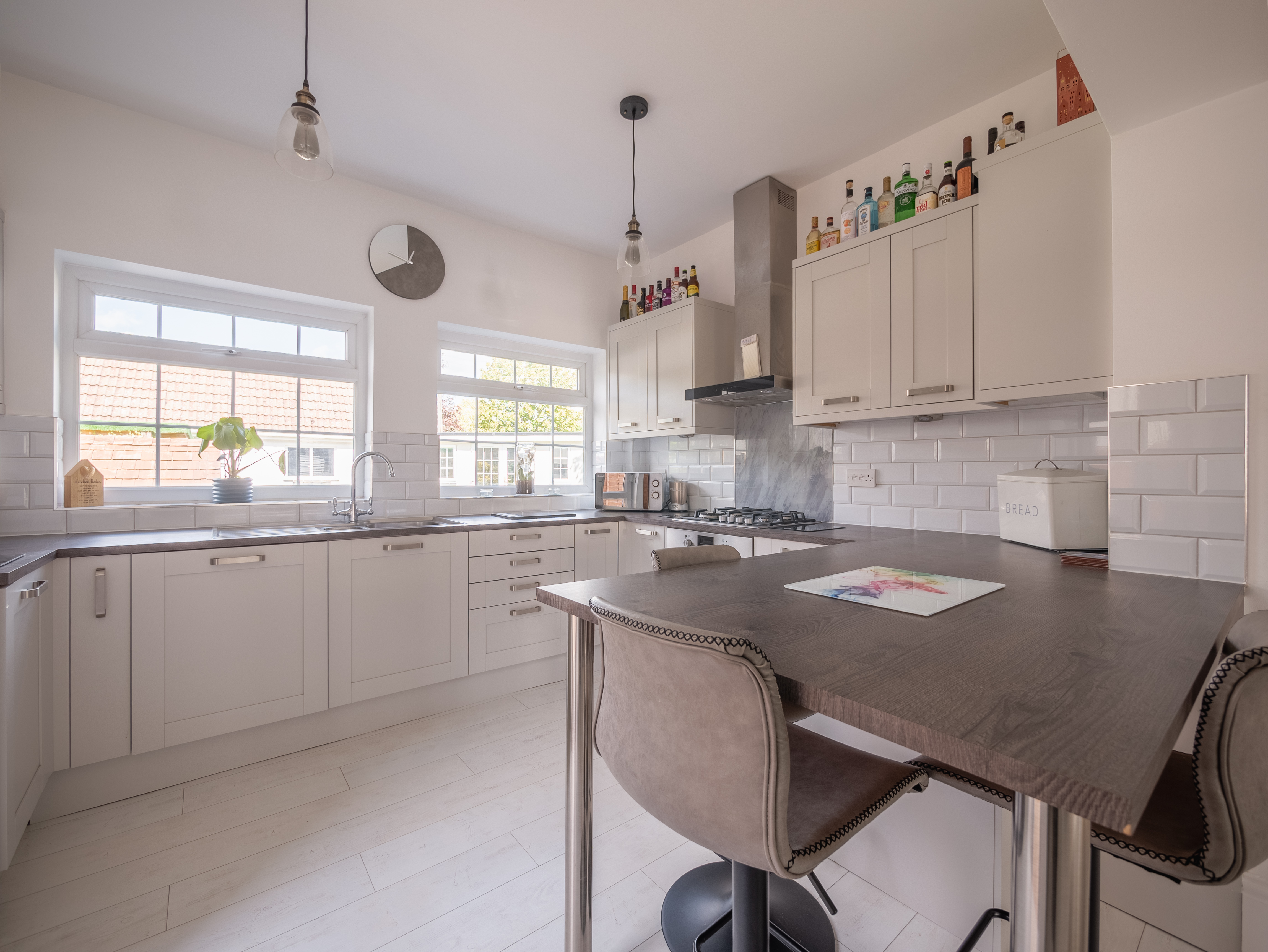 The kitchen diner, is your everyday meal preparation space, with a view of the garden adding a peaceful backdrop to your routine and has plenty of space for a large family dining table plus extras!