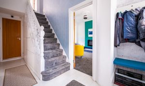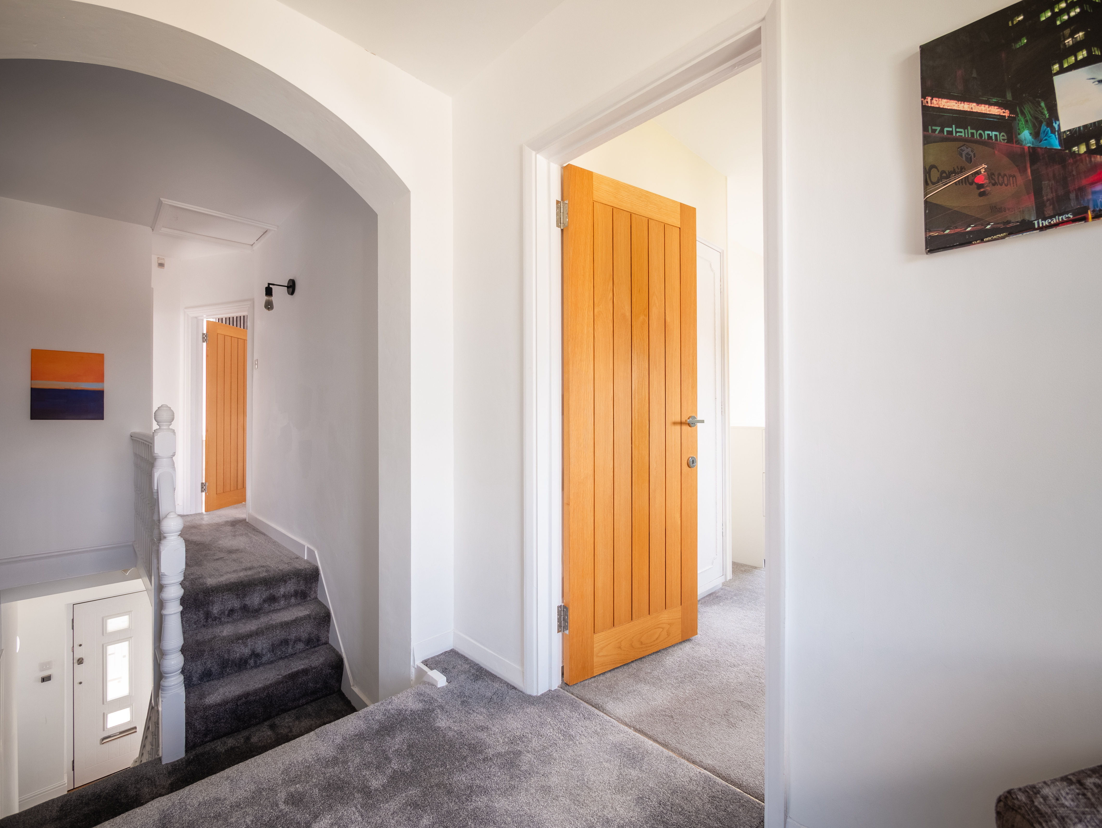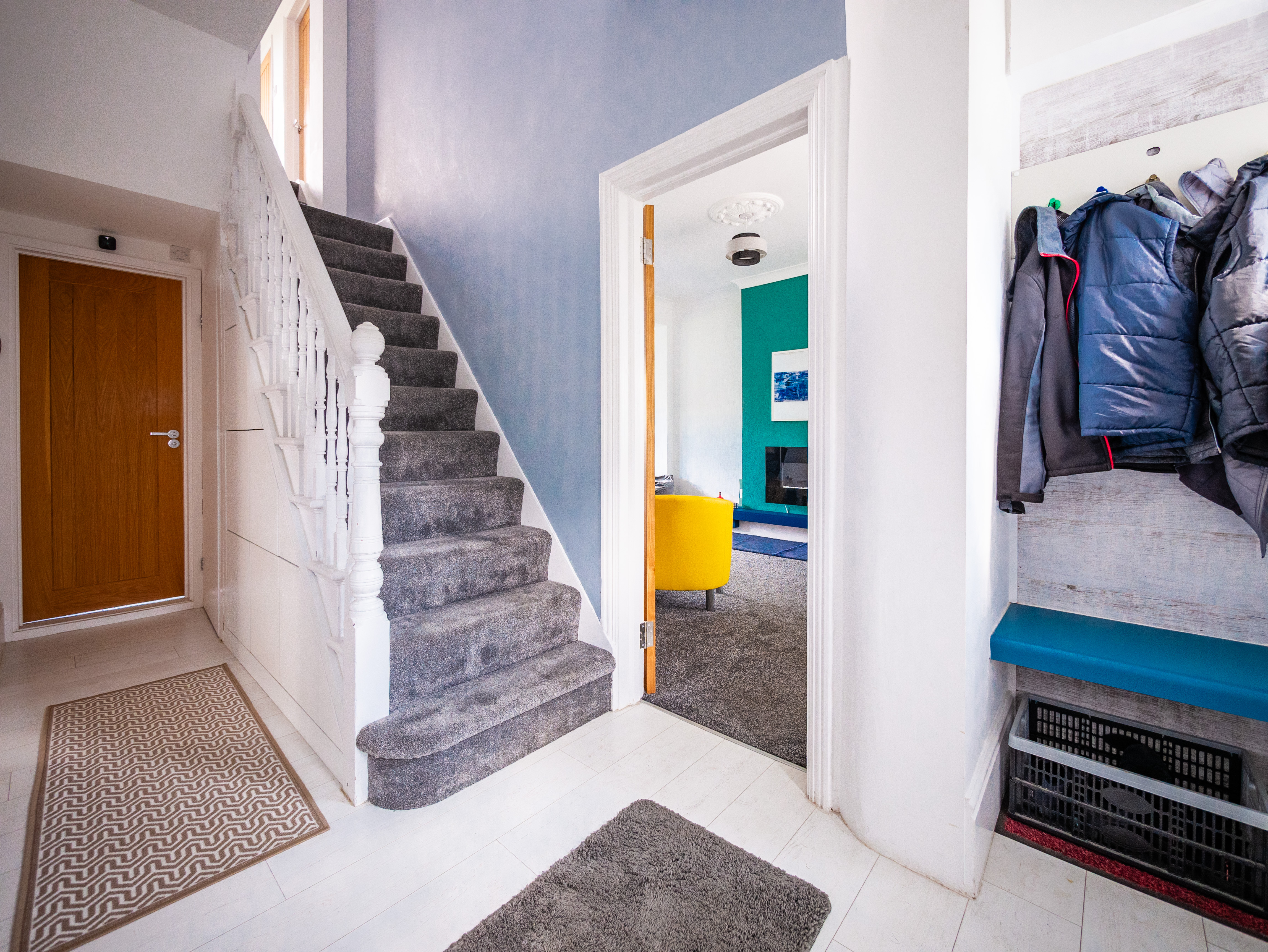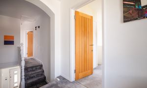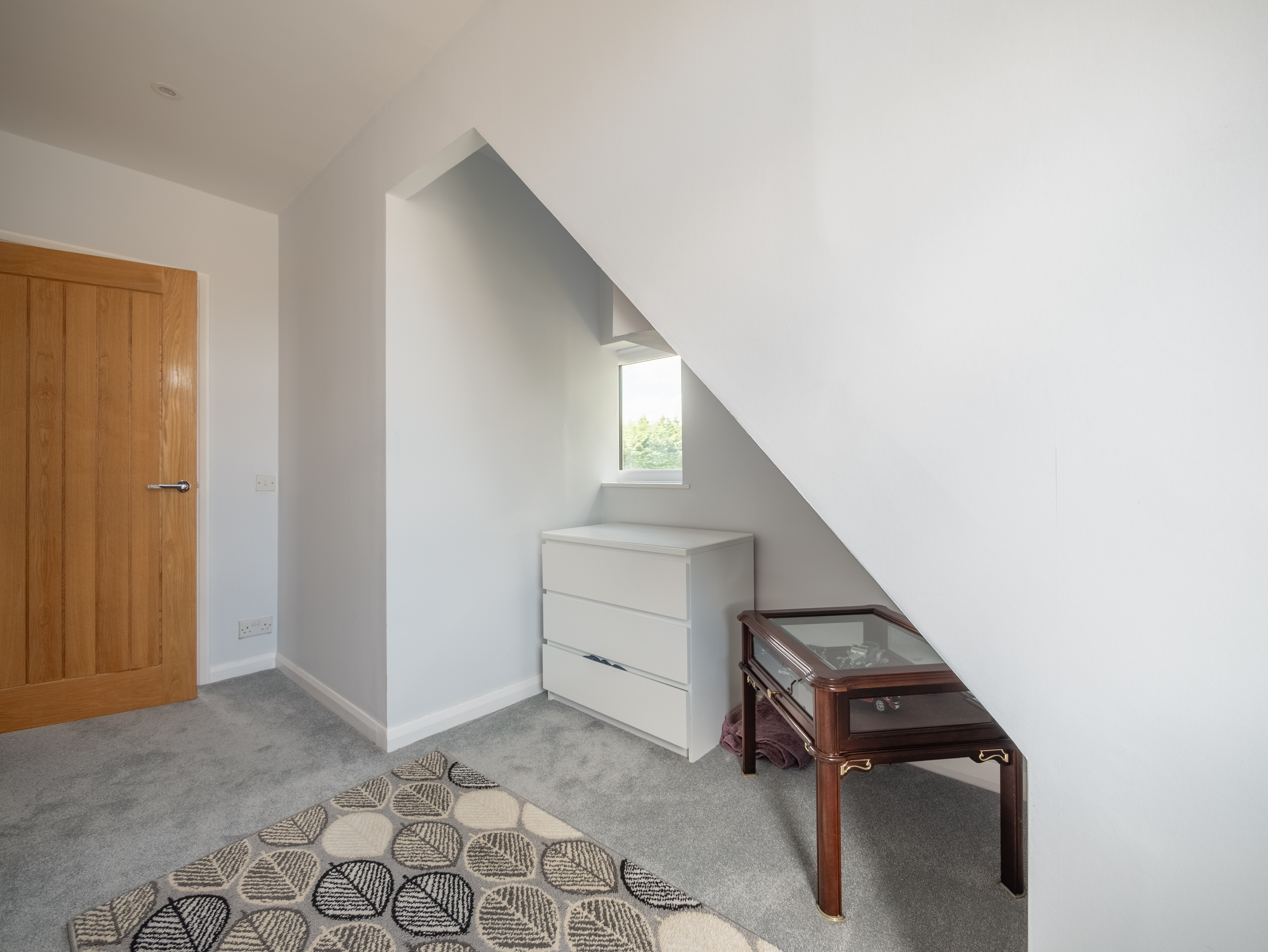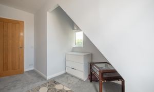 As you step inside, the entrance hall provides a simple transition into the home, leading you to the large lounge stretching from the front to the rear, a functional space for everyday gatherings or a relaxed evening. The under-stairs storage is a smart, practical feature, aiding in keeping the area tidy. On the other side of the hall, you'll also find a modern, and high-end shower room for daily convenience.
