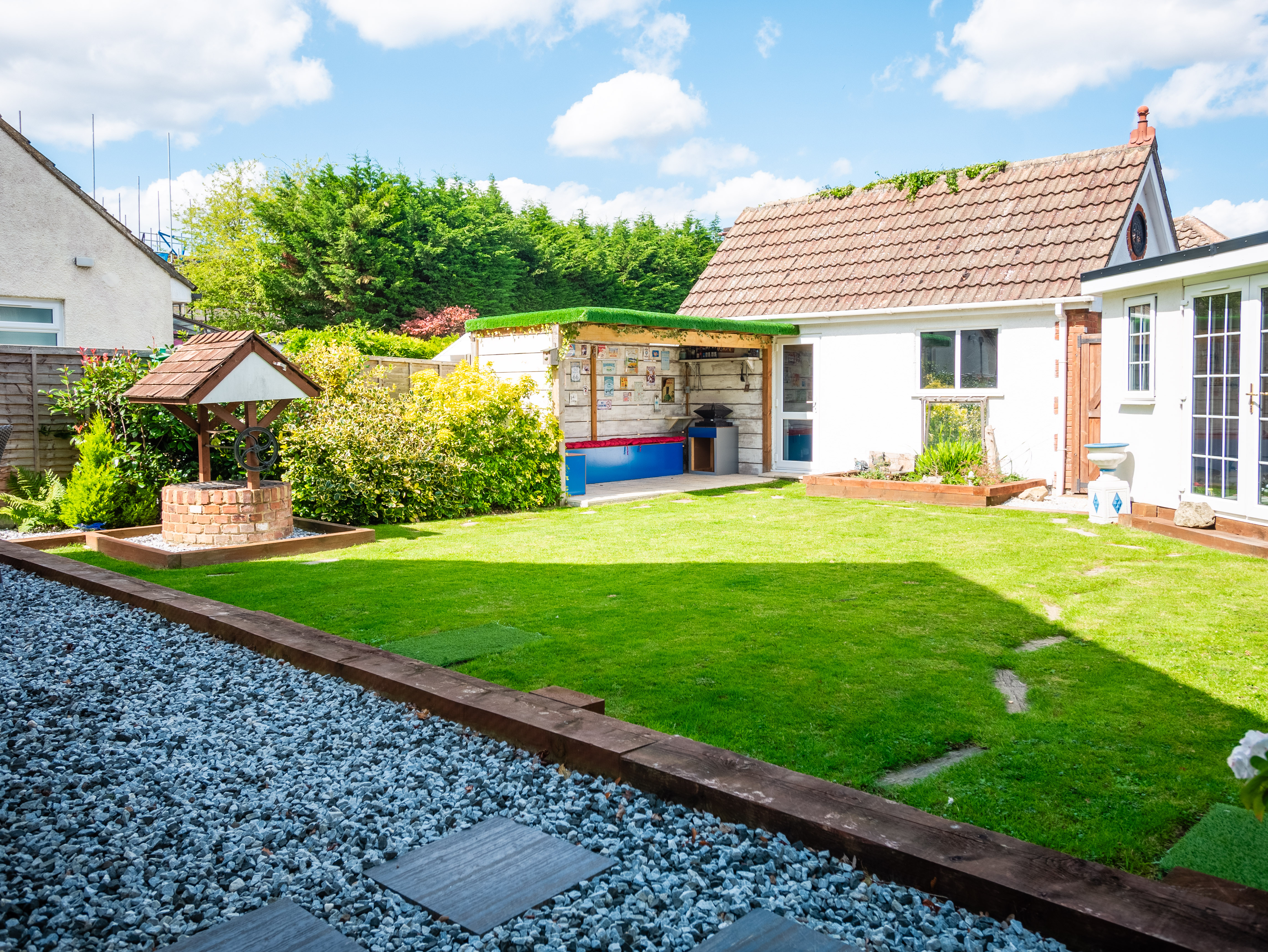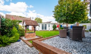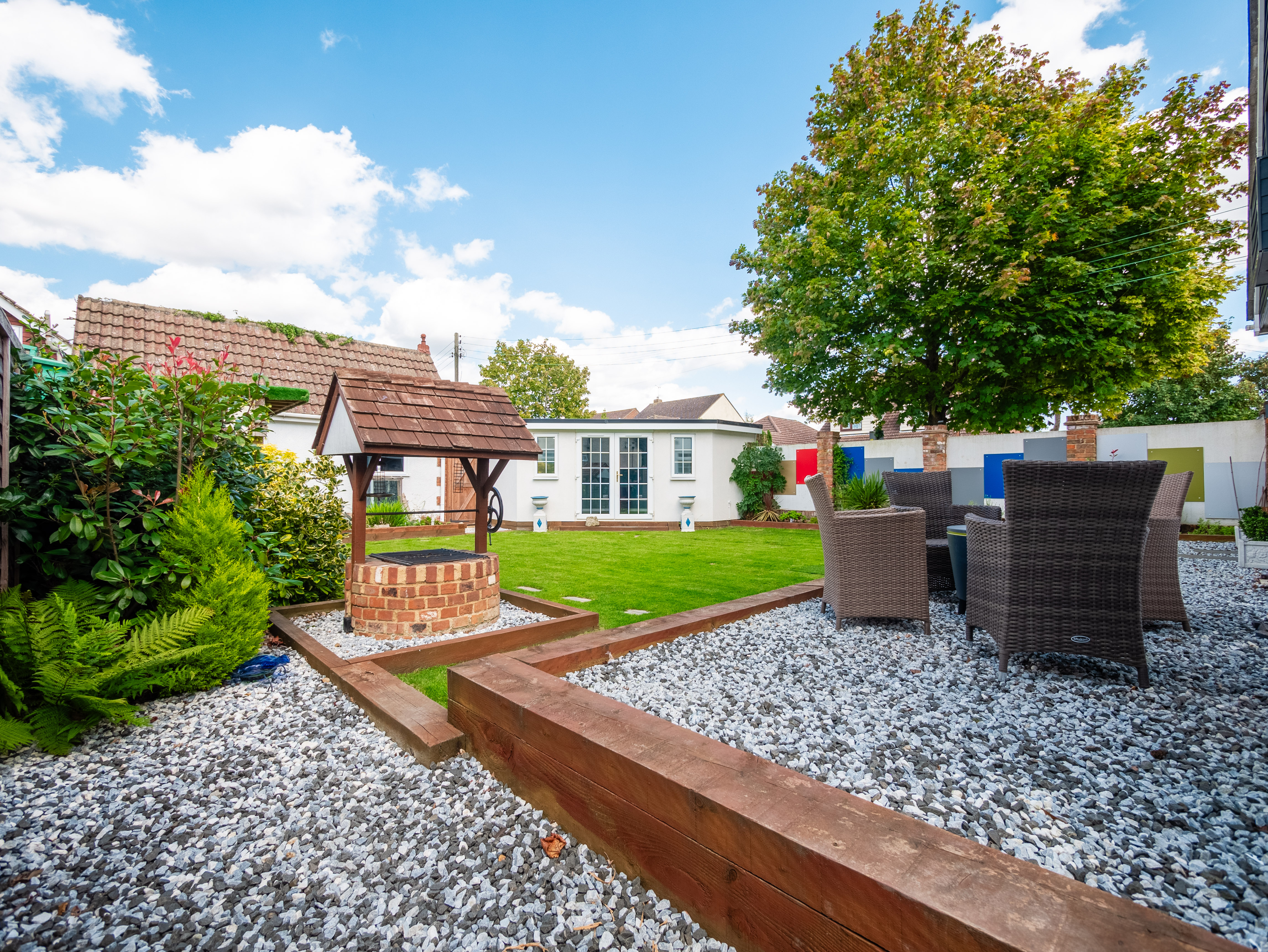 The outside area is straightforward yet enjoyable. The garden provides a spot for outdoor relaxation, be it a weekend barbecue or a quiet evening outdoors. A unique well feature adds a touch of character to the space, and there's a garden room that could serve as a home office, gym or additional storage. The driveway and detached garage provide practical parking space, catering to car owners or those requiring extra storage.