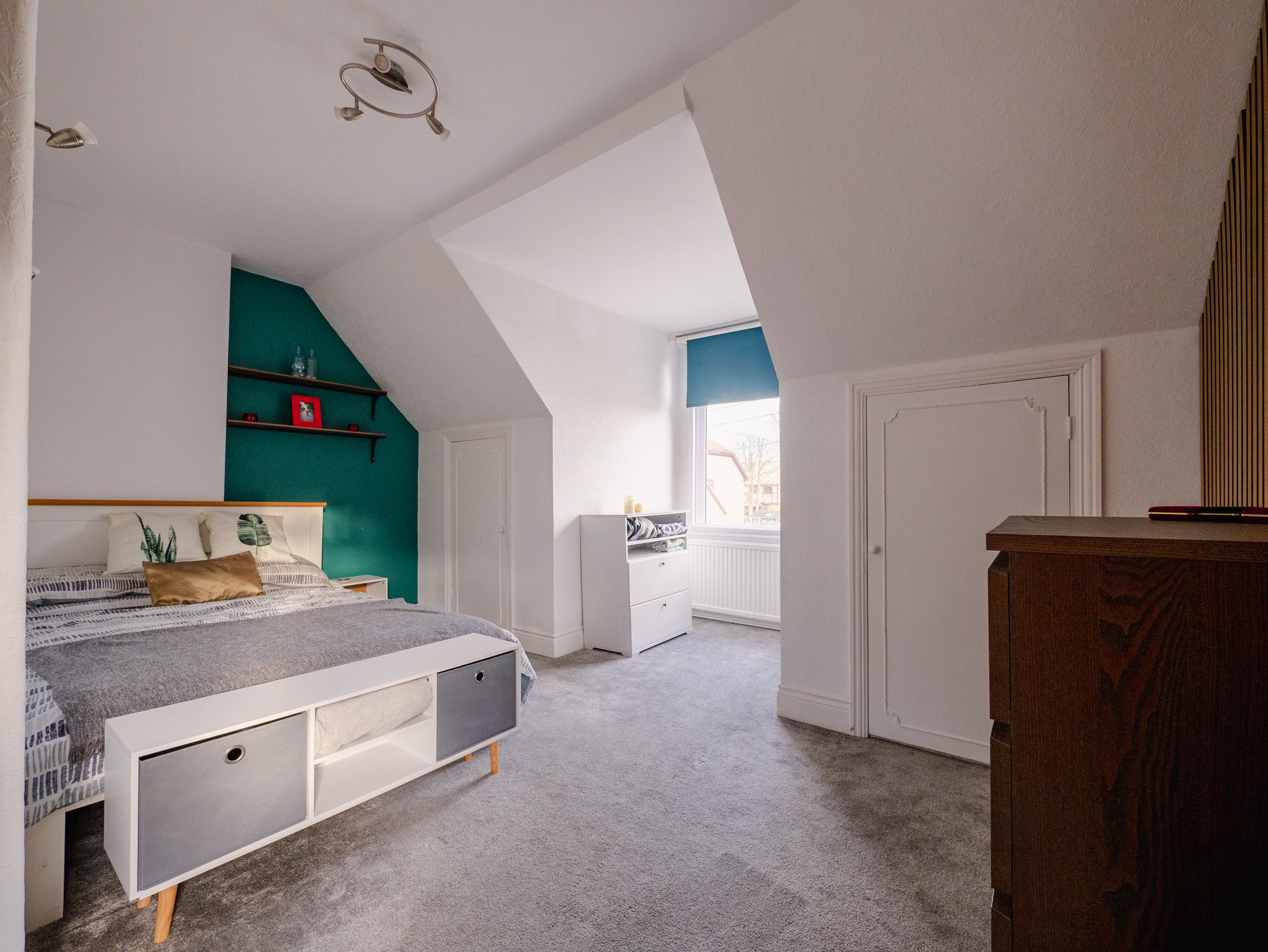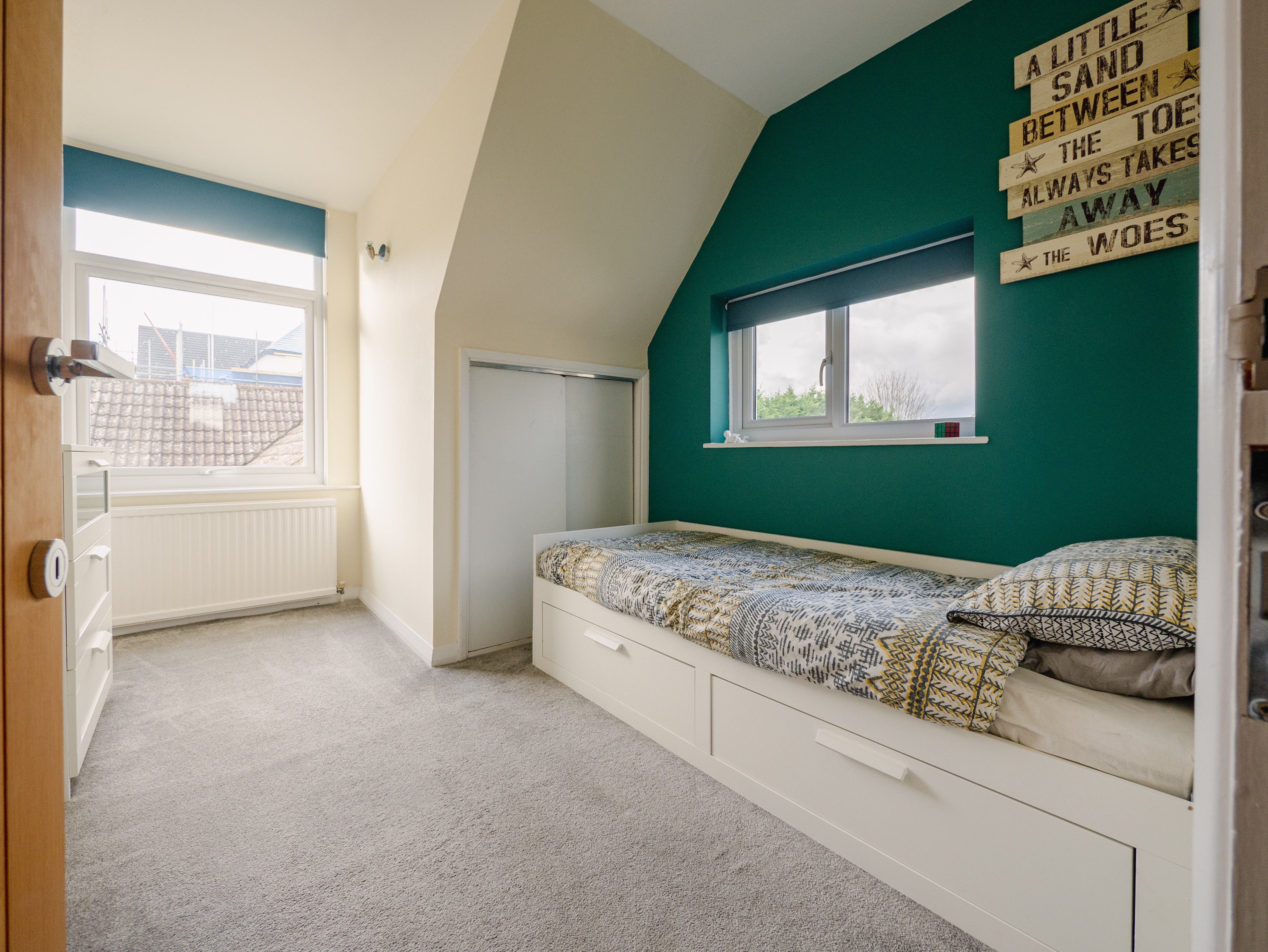 Moving upstairs, the four bedrooms offer a quiet space for each family member. The eave storage is a thoughtful touch, helping to keep rooms organised. The split-level hallway connects the living spaces and adds a layer of character and charm to this home.