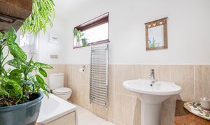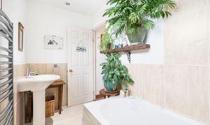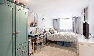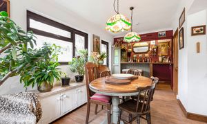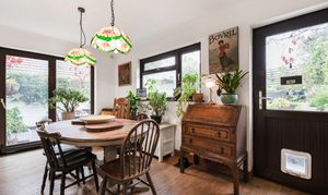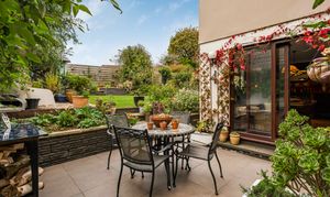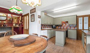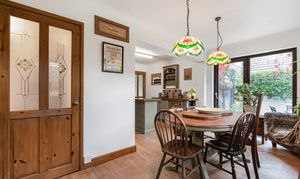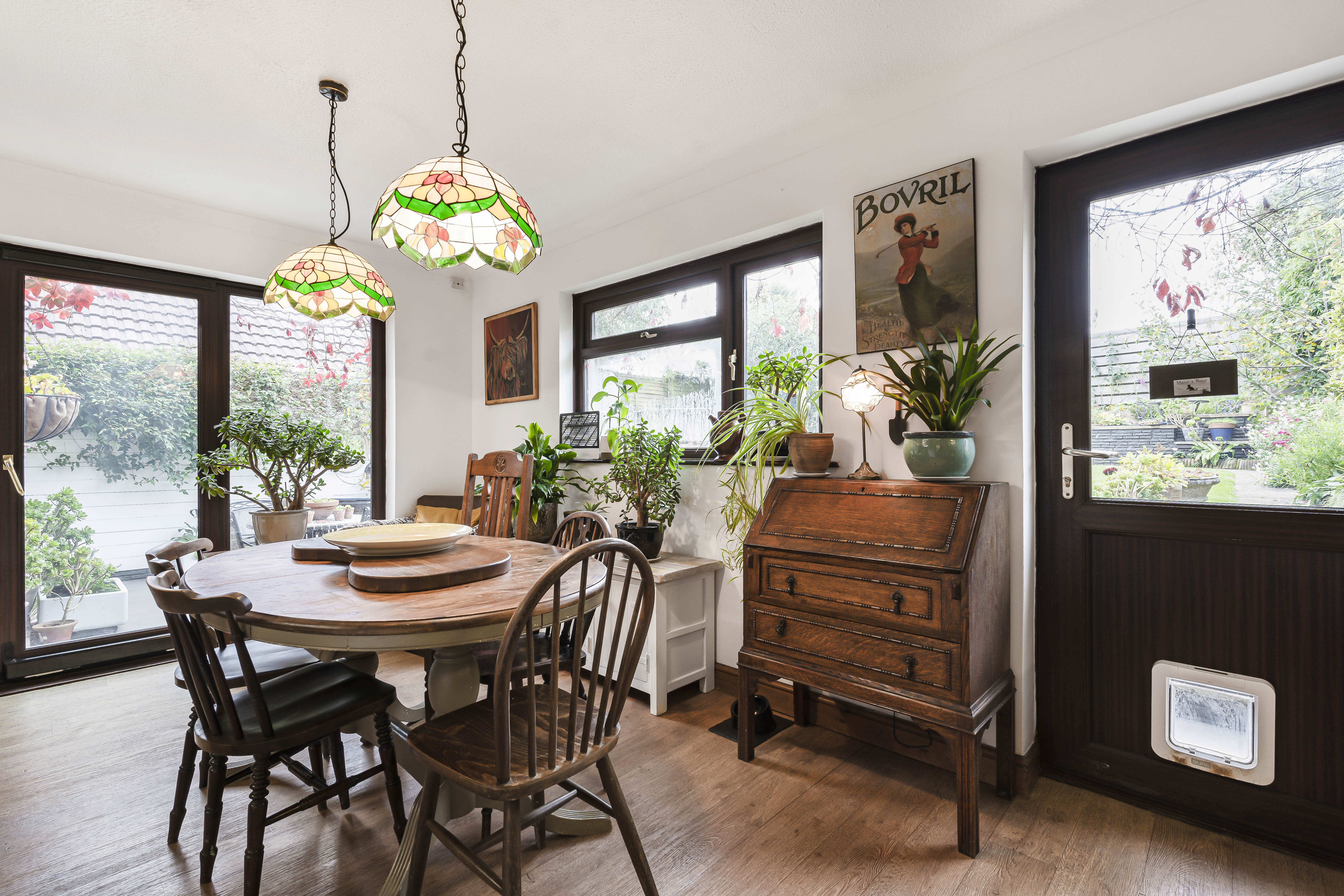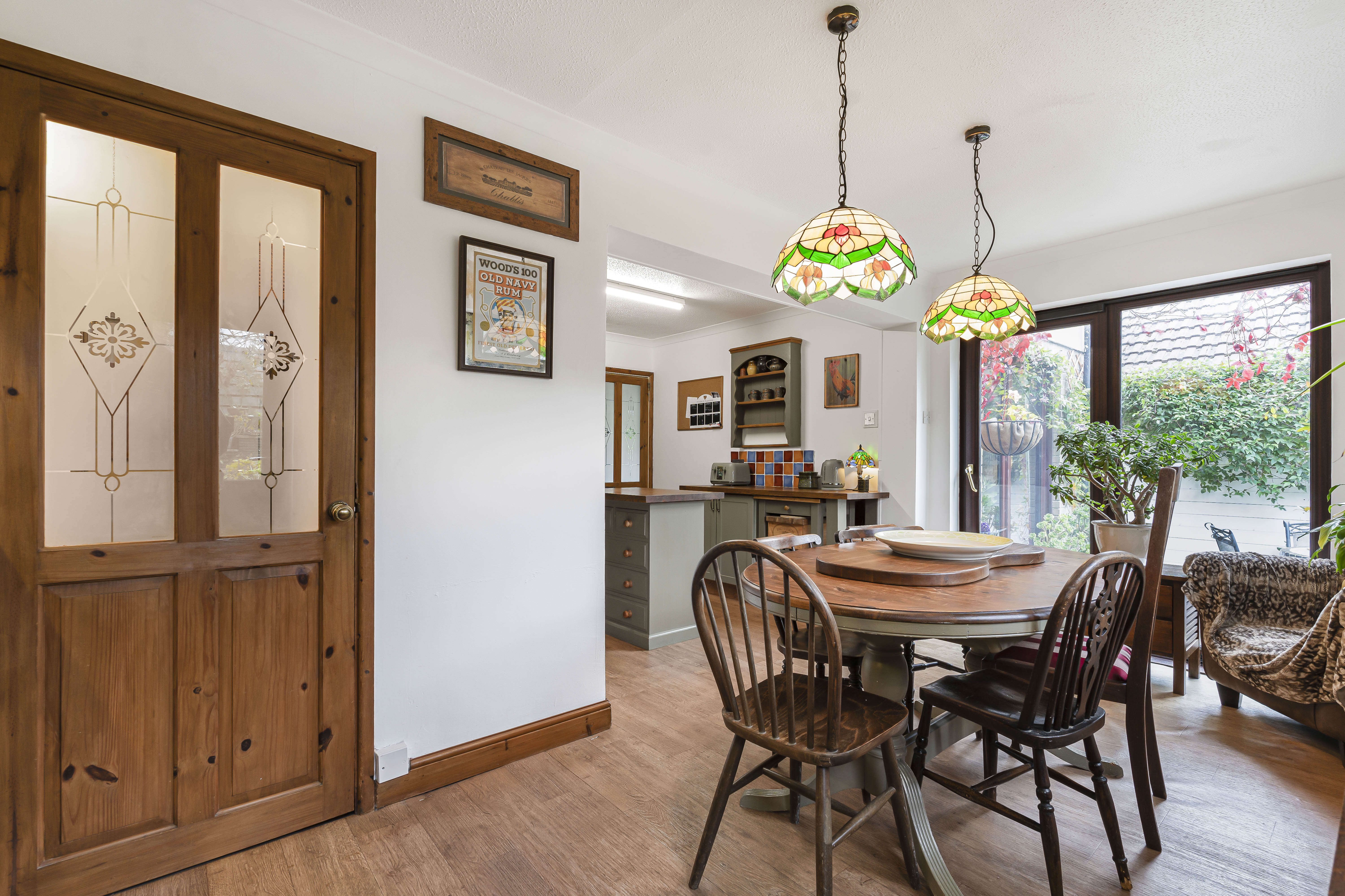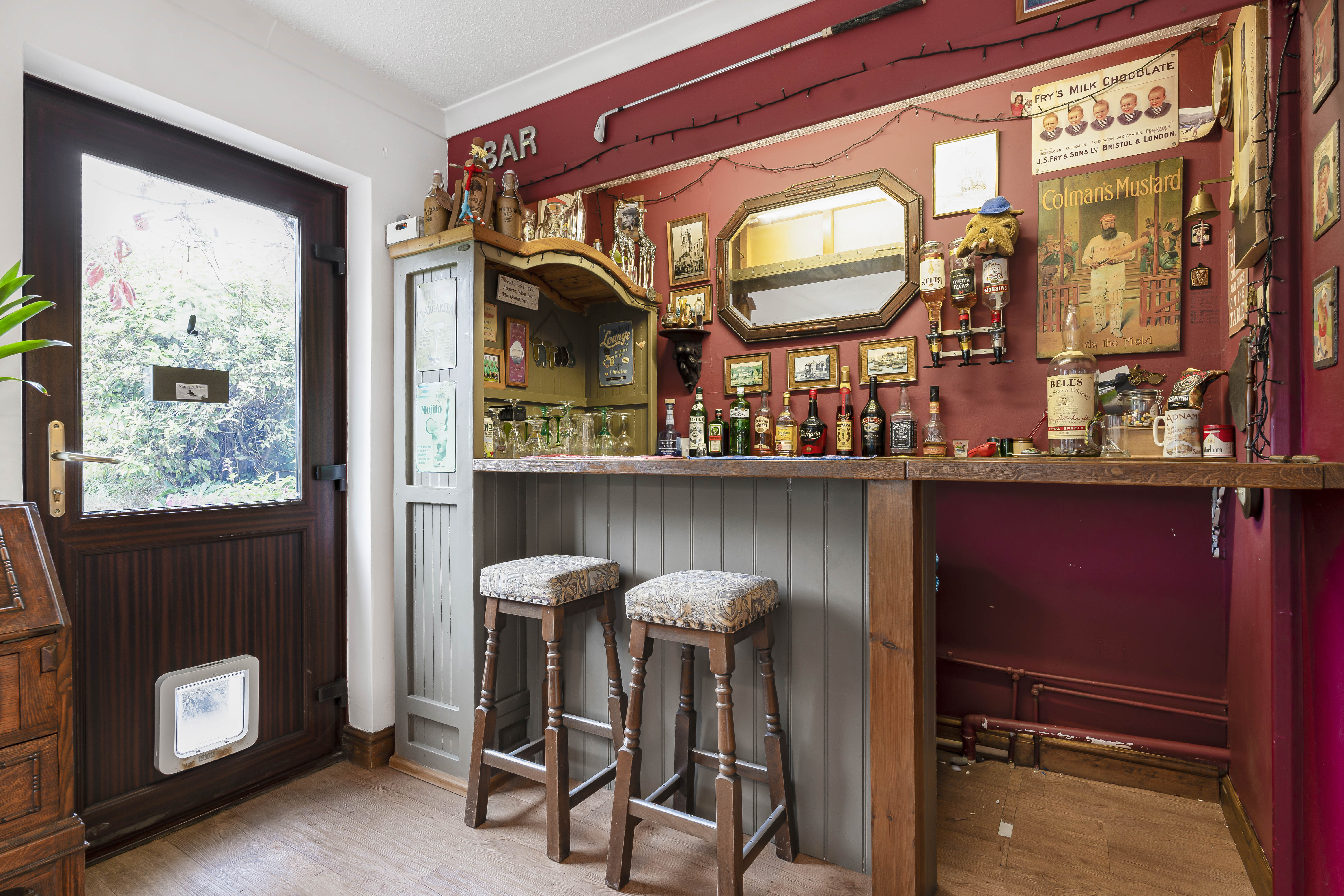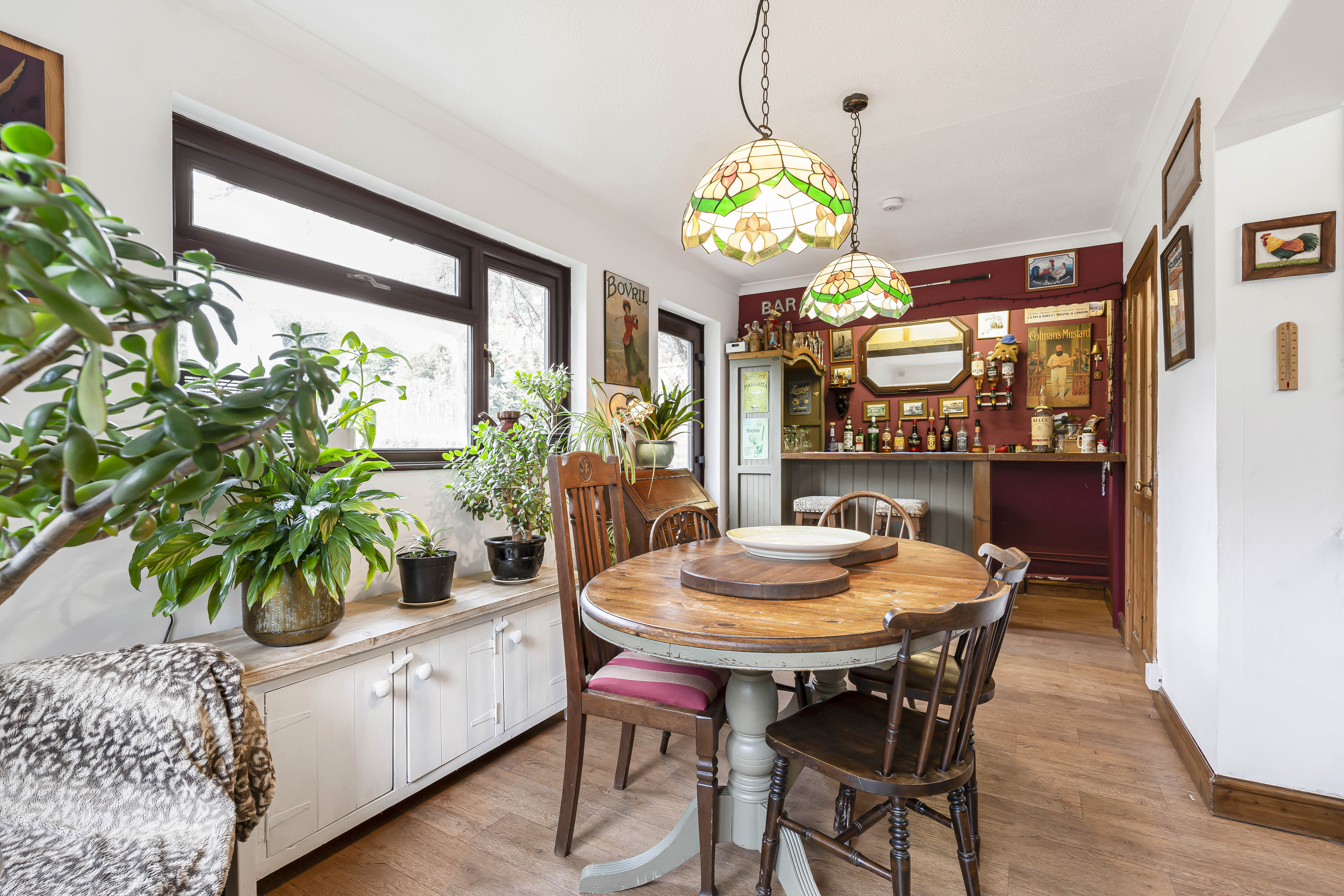 The kitchen/dining area is again a fantastic size, dual aspect and flooded with natural light, enjoying views and providing access to the garden. Just off the dining area is a bar, with stools, making this the perfect space to entertain friends and family.