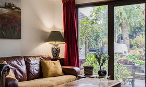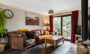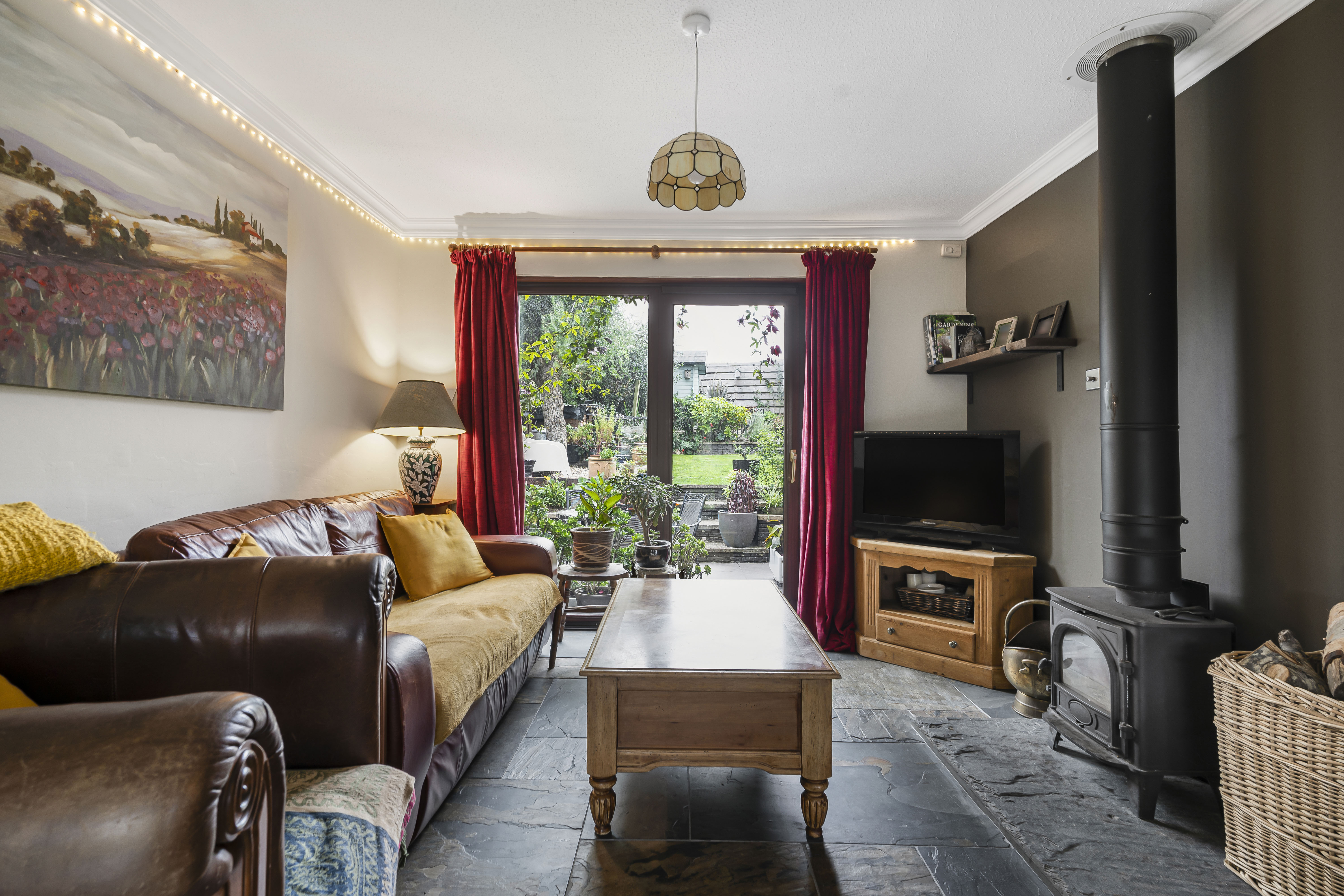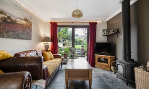 The lounge area has French doors overlooking and providing access to the garden, with a log burner for those winter nights.