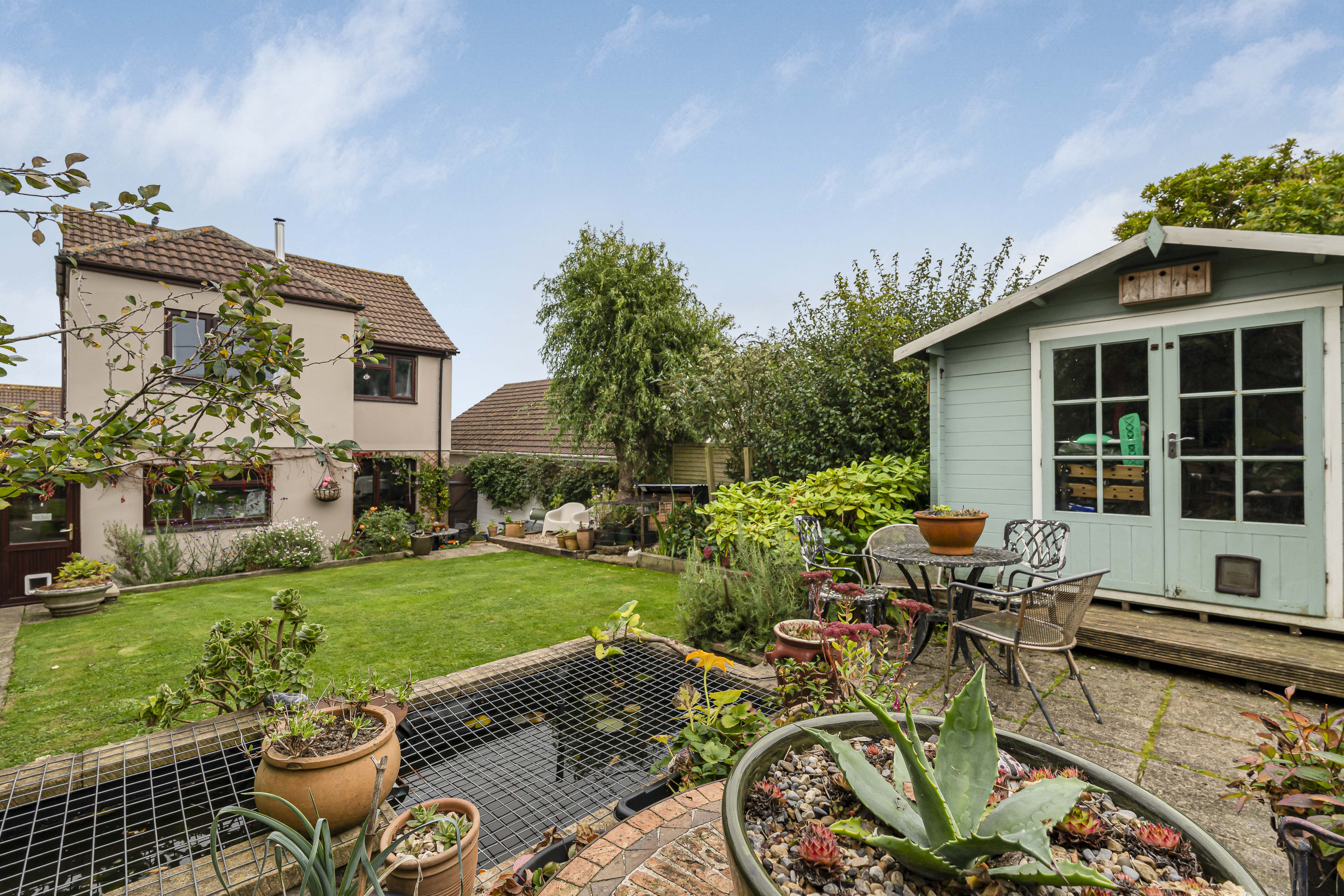 The garden is mature with established borders, raised planted beds and a pond. Enclosed with timber fencing with gated side access,