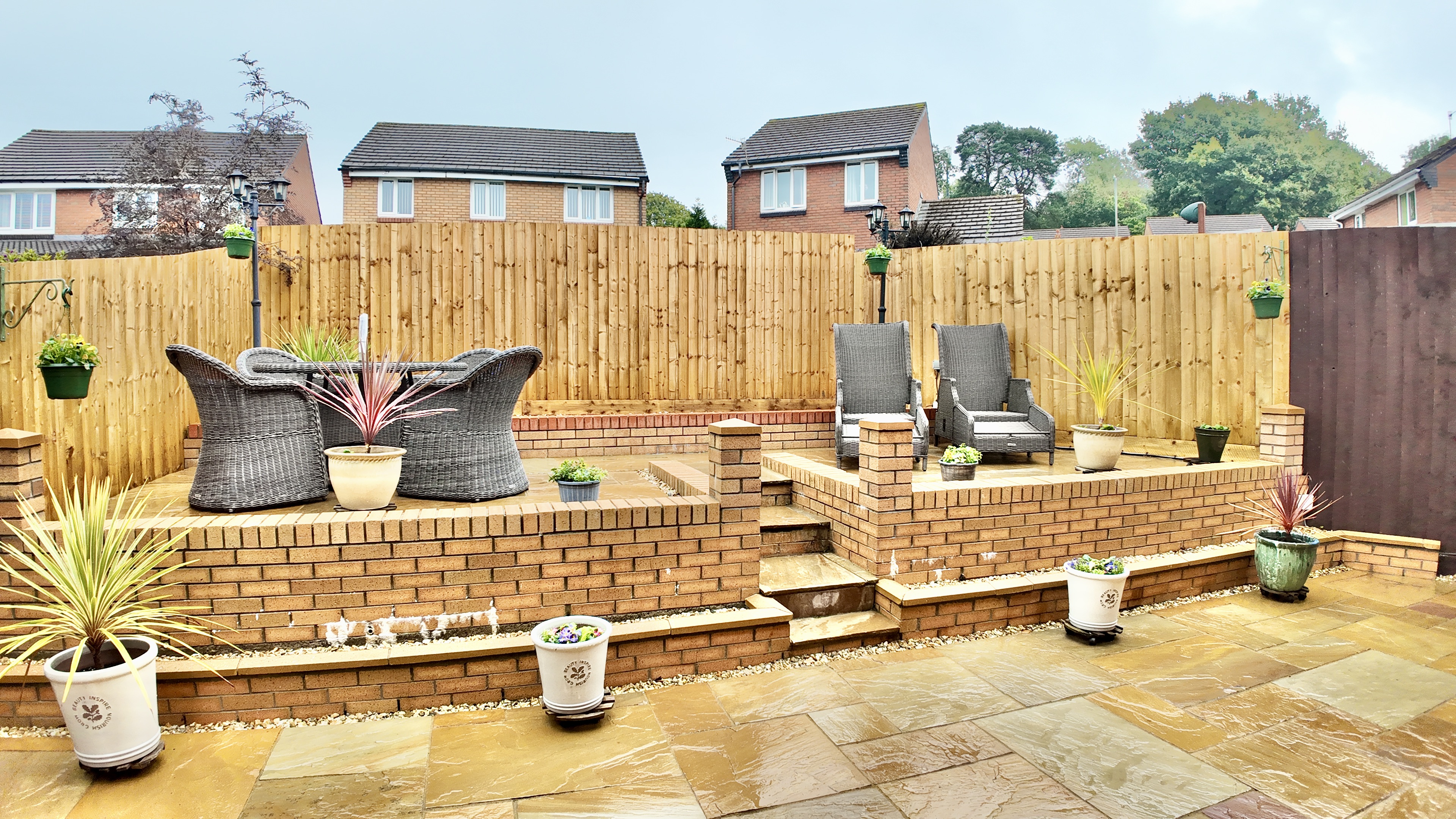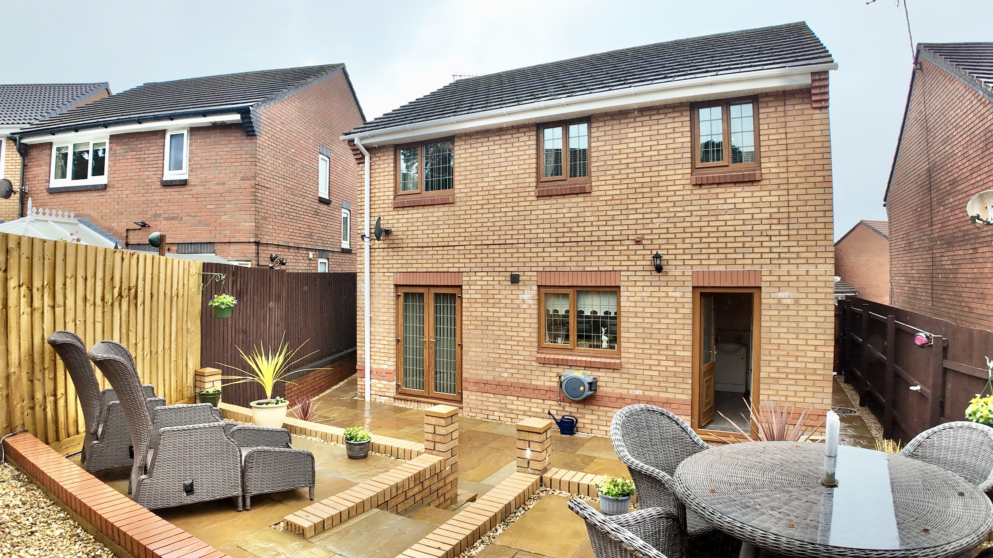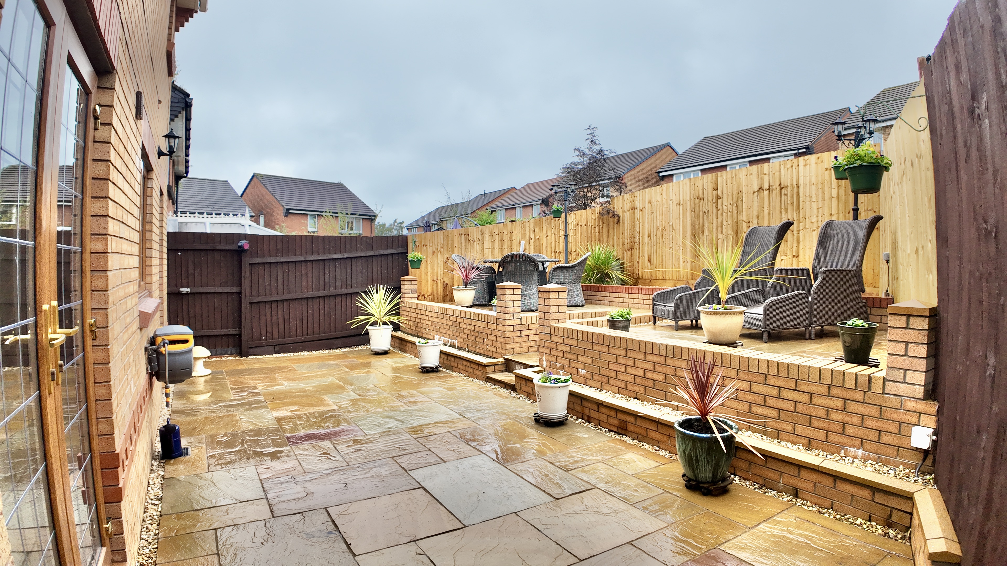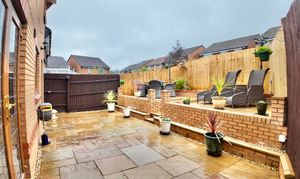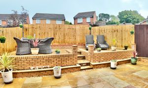 - Low maintenance rear garden with large patio and decking seating area