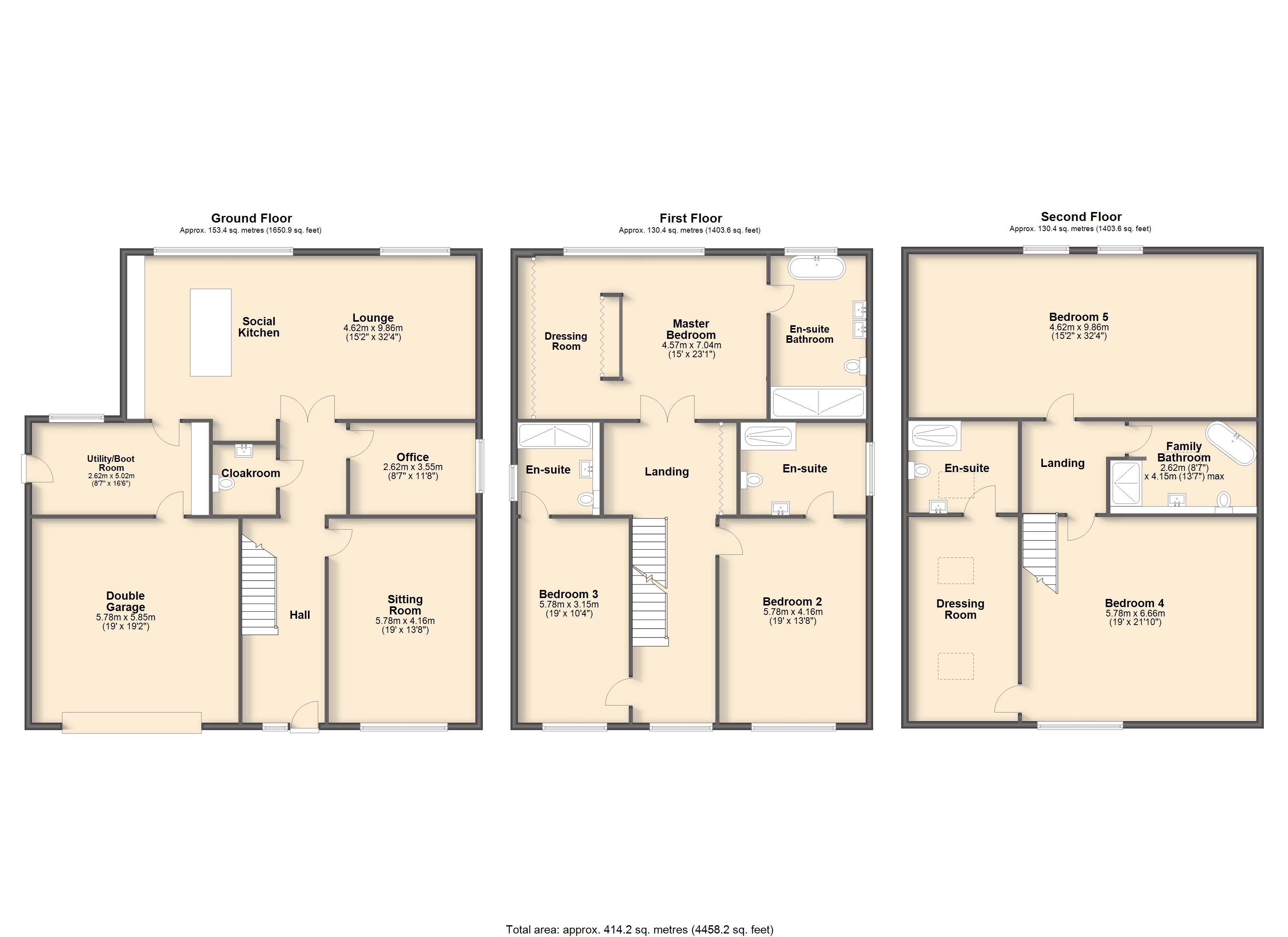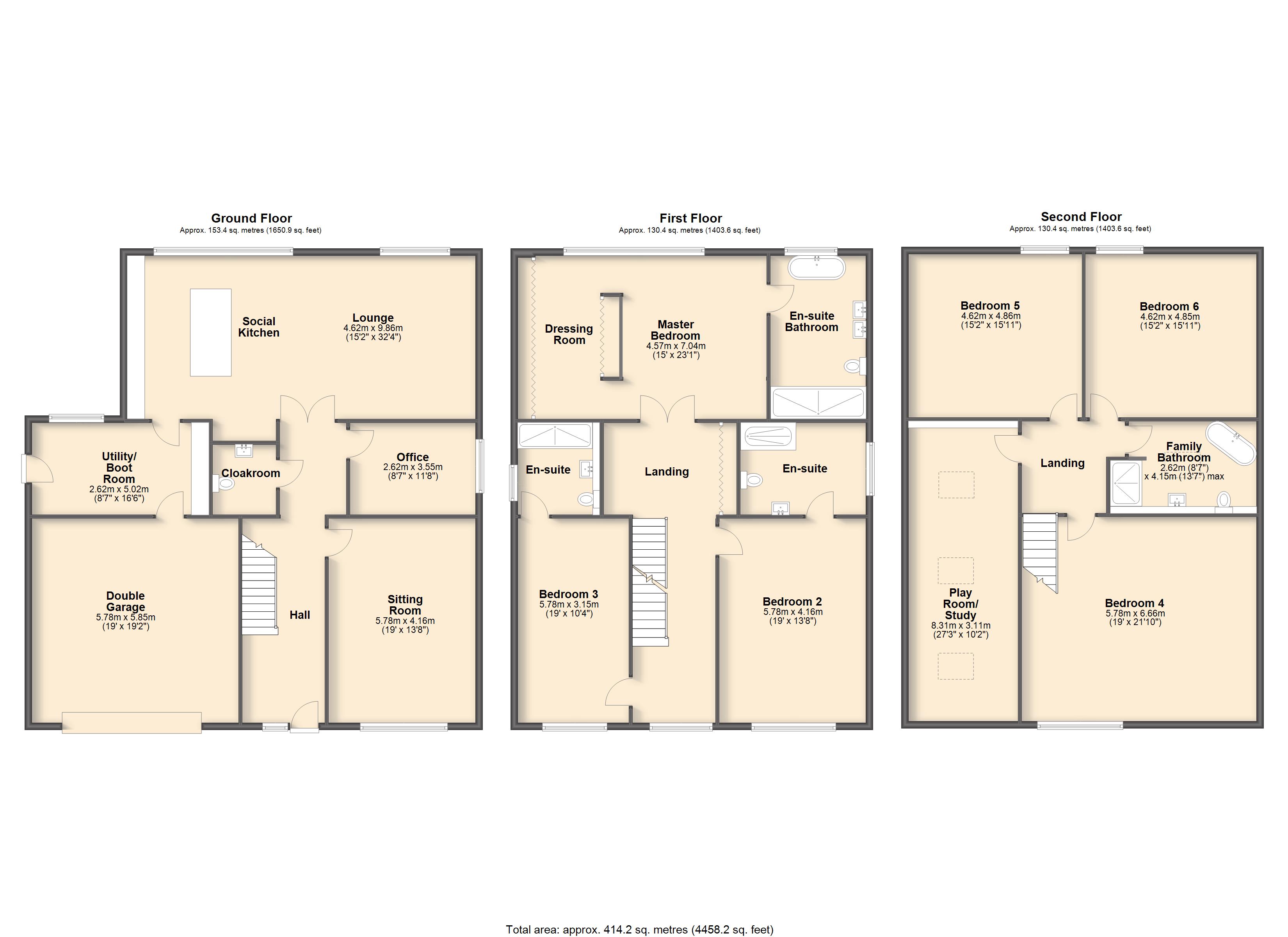 - Flexible 4, 5 or 6 bedroom accommodation over three floors (see floor plan variations)