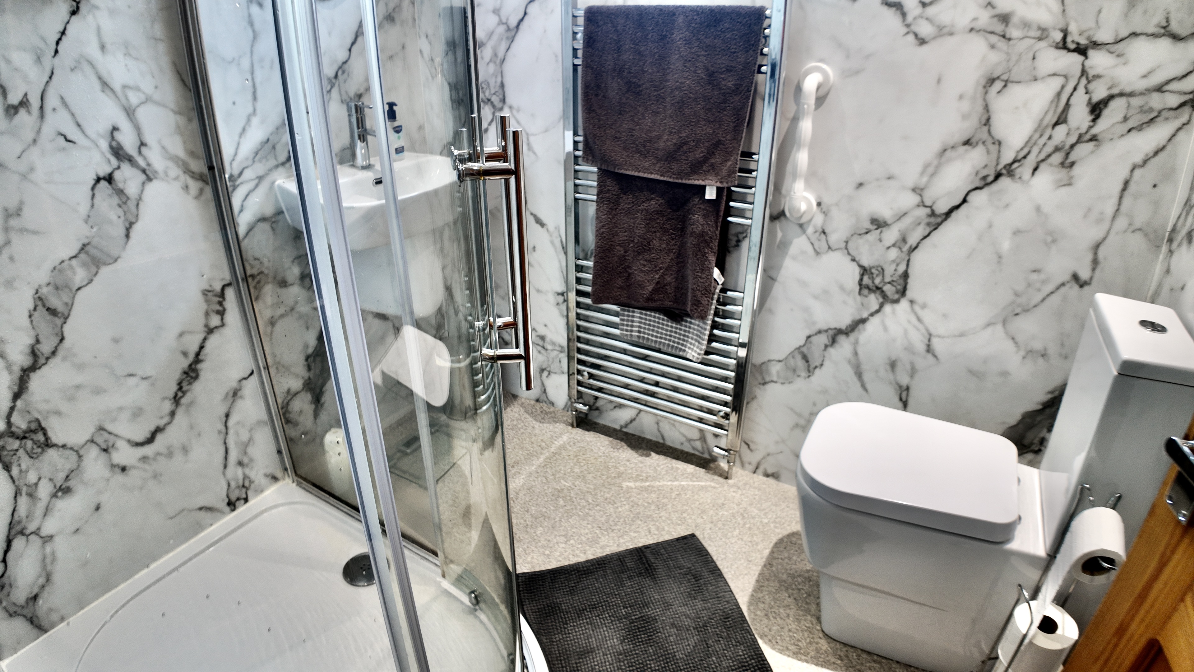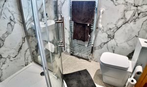 Make your way upstairs to find a first-floor shower room, along with the master bedroom boasting ample built-in storage for all your belongings. The second floor offers another double bedroom, perfect for guests or family members, as well as a single bedroom that could easily be transformed into a home office, complete with its own built-in storage solutions.