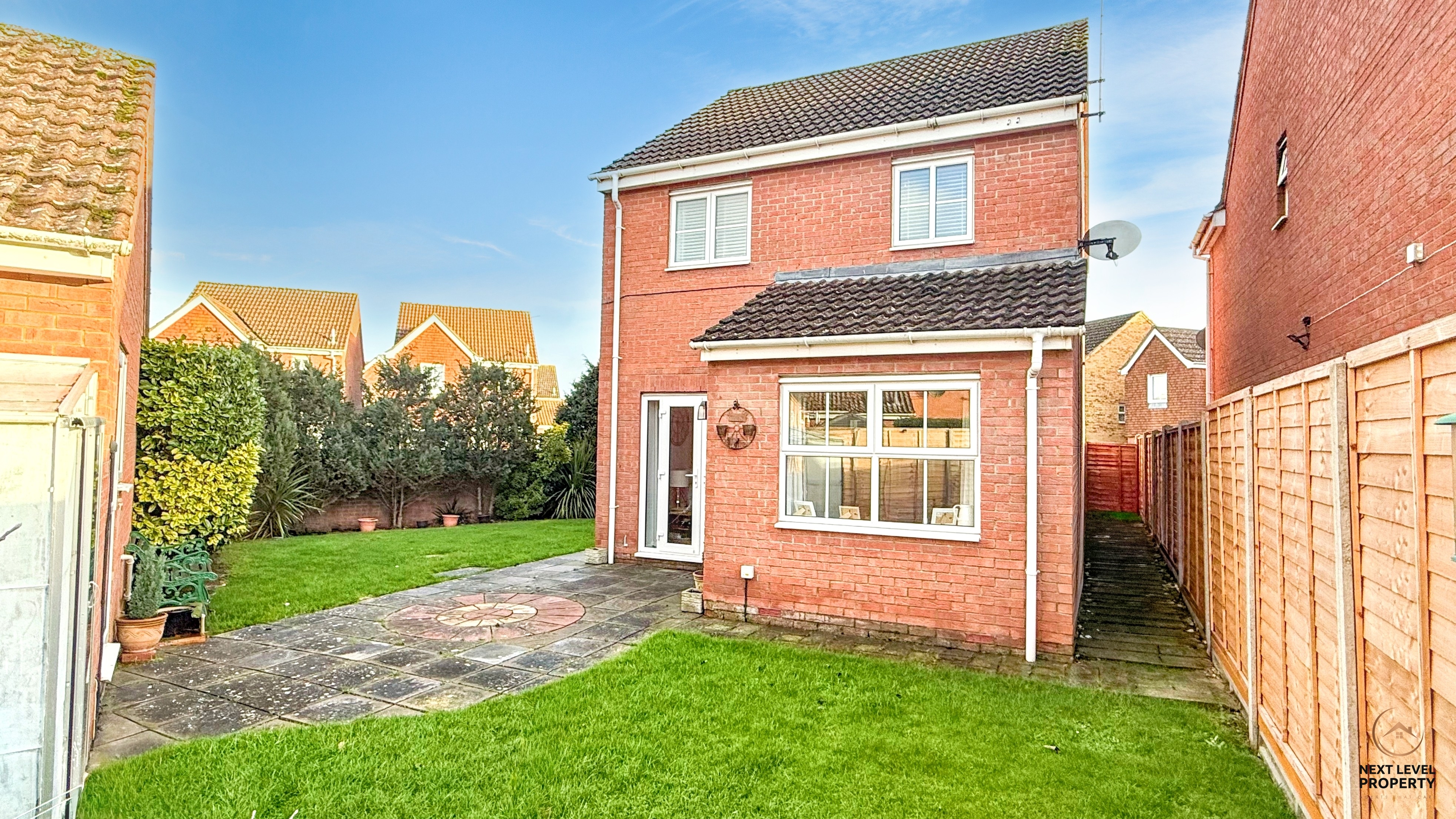 Outside, the corner plot really comes into its own. The gardens wrap around the property, providing a larger-than-average amount of outdoor space. The front garden is mainly laid to lawn with a footpath to the front door and gated access to the side. The side garden is also laid to lawn and enclosed by a brick boundary wall, with a personal door giving access into the garage. The rear garden offers a mix of patio and lawn, along with a greenhouse, and is fully enclosed with fencing and established hedging, making it a secure and enjoyable space.