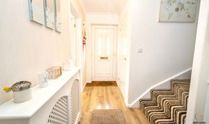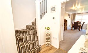 The welcoming entrance hall sets the tone for the home, featuring attractive wood-effect flooring and a natural flow through to the main living spaces. From here, stairs rise to the first floor, with doors leading to the ground floor WC, the kitchen and the spacious lounge/diner, making it a practical and well-laid-out first impression.