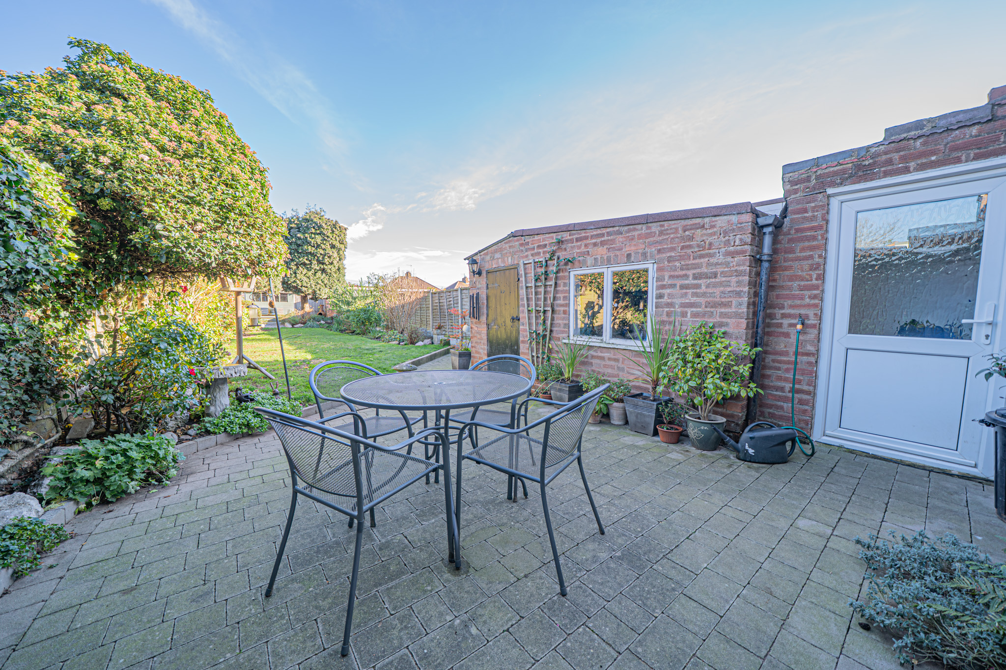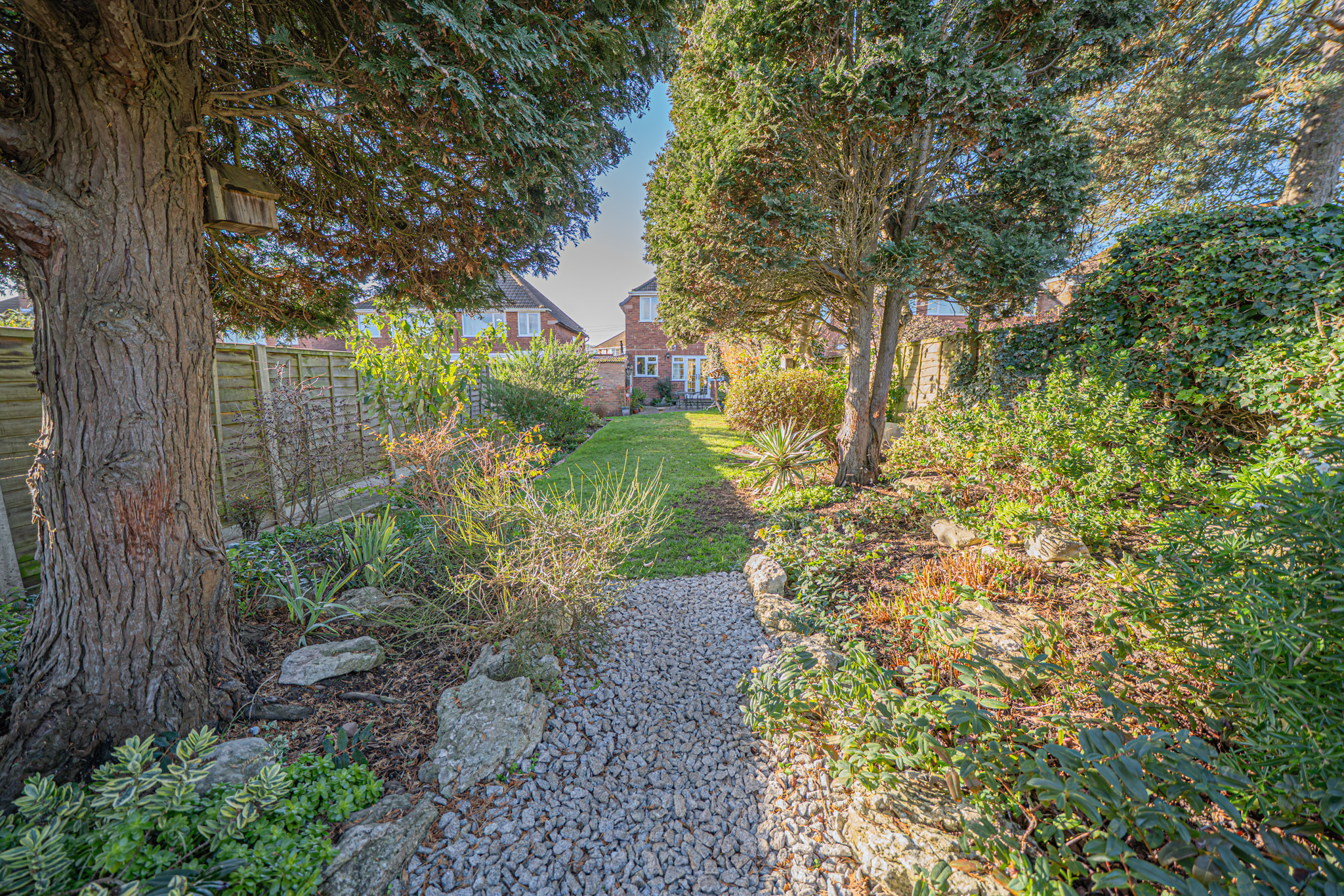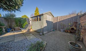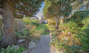 Moving outside, the property boasts a beautifully presented rear garden that is a true oasis of tranquillity. With an abundance of well-established shrubs and borders, this outdoor space provides a serene escape and a charming backdrop for al fresco dining or leisurely moments amidst nature.
