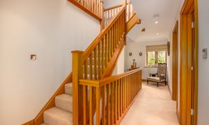 Upstairs, five bedrooms occupy the first floor, two with ensuites and built-in wardrobes, plus a family bathroom. The top floor offers two further double bedrooms with stunning views or due to the flexible nature of this home, could be utilised as guest suites, offices, or hobby rooms.
