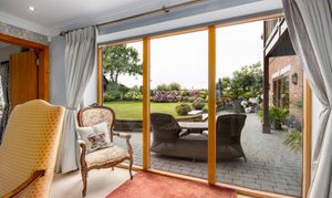 Stunning private gardens with views over open fields. A large entertaining terrace ideal for al fresco dining.