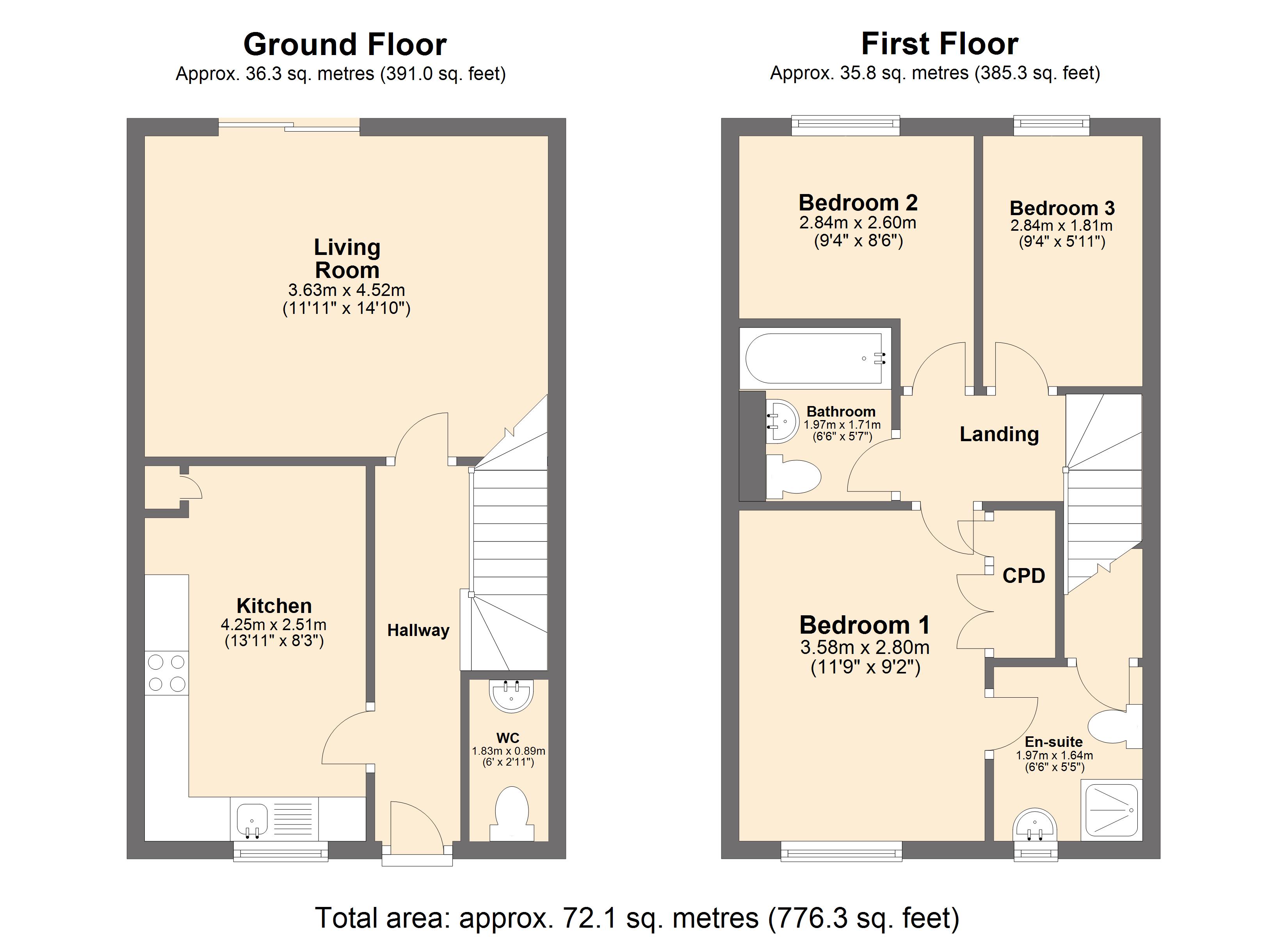 The first floor comprises of three bedrooms, and the family bathroom. The bedroom to the front of the property is a well sized double bedroom and features a built in cupboard unit, and an en suite shower room with a cupboard which houses the boiler. The two bedrooms to the rear of the property are ideally suited for use as single bedrooms, whilst the family bathroom has been finished with a three piece suite which includes a bath/shower, a WC, and a hand wash basin.
