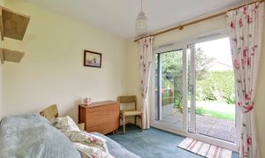 Both bedrooms are generously sized and benefit from plenty of natural light, with the main bedroom providing built-in wardrobe for additional storage and the second bedroom offering direct access out to the gardens. The shower room is easily accessible, designed with comfort in mind.