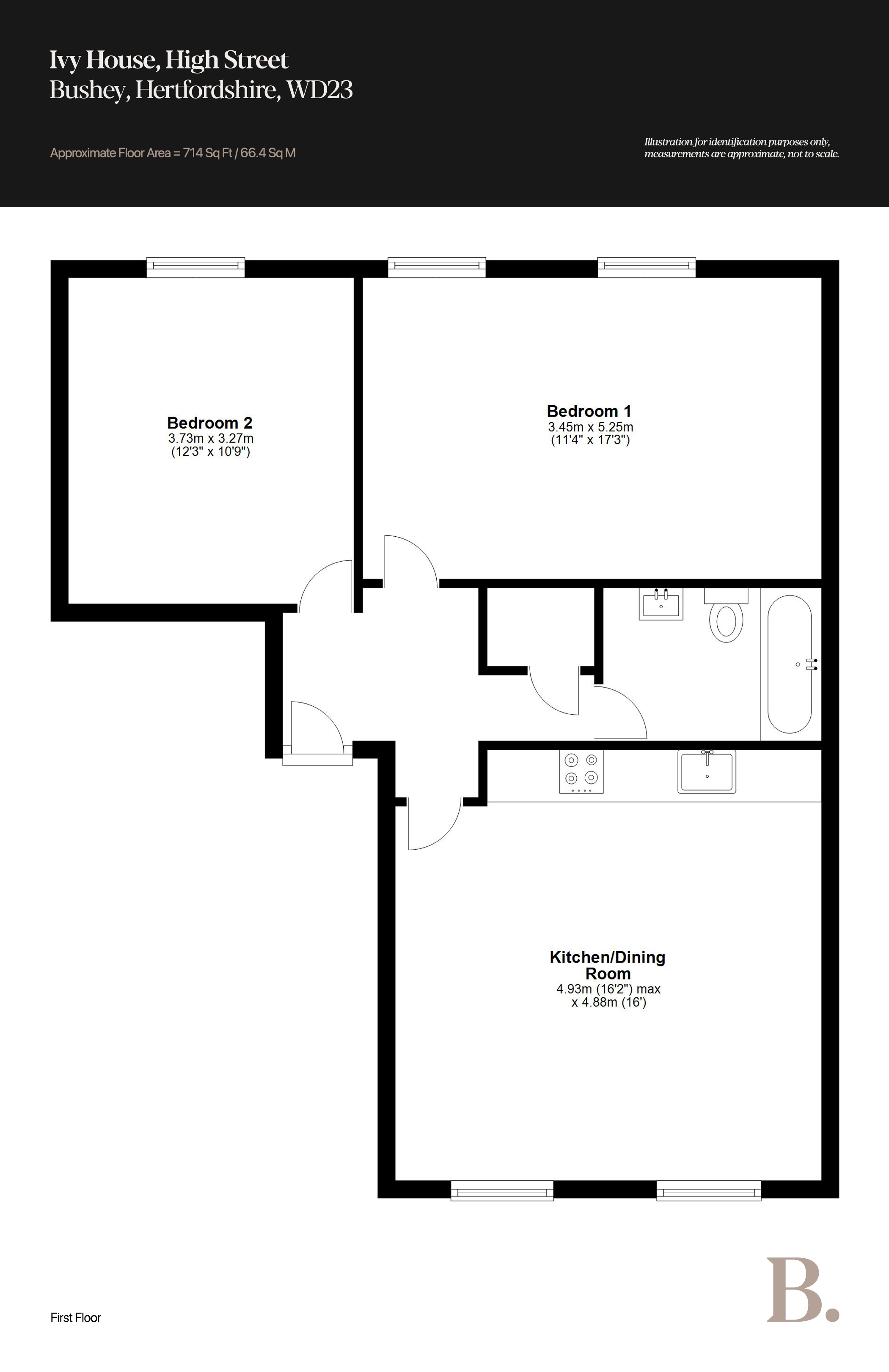 - First-floor, two-bedroom apartment measuring 714 sq.ft.
