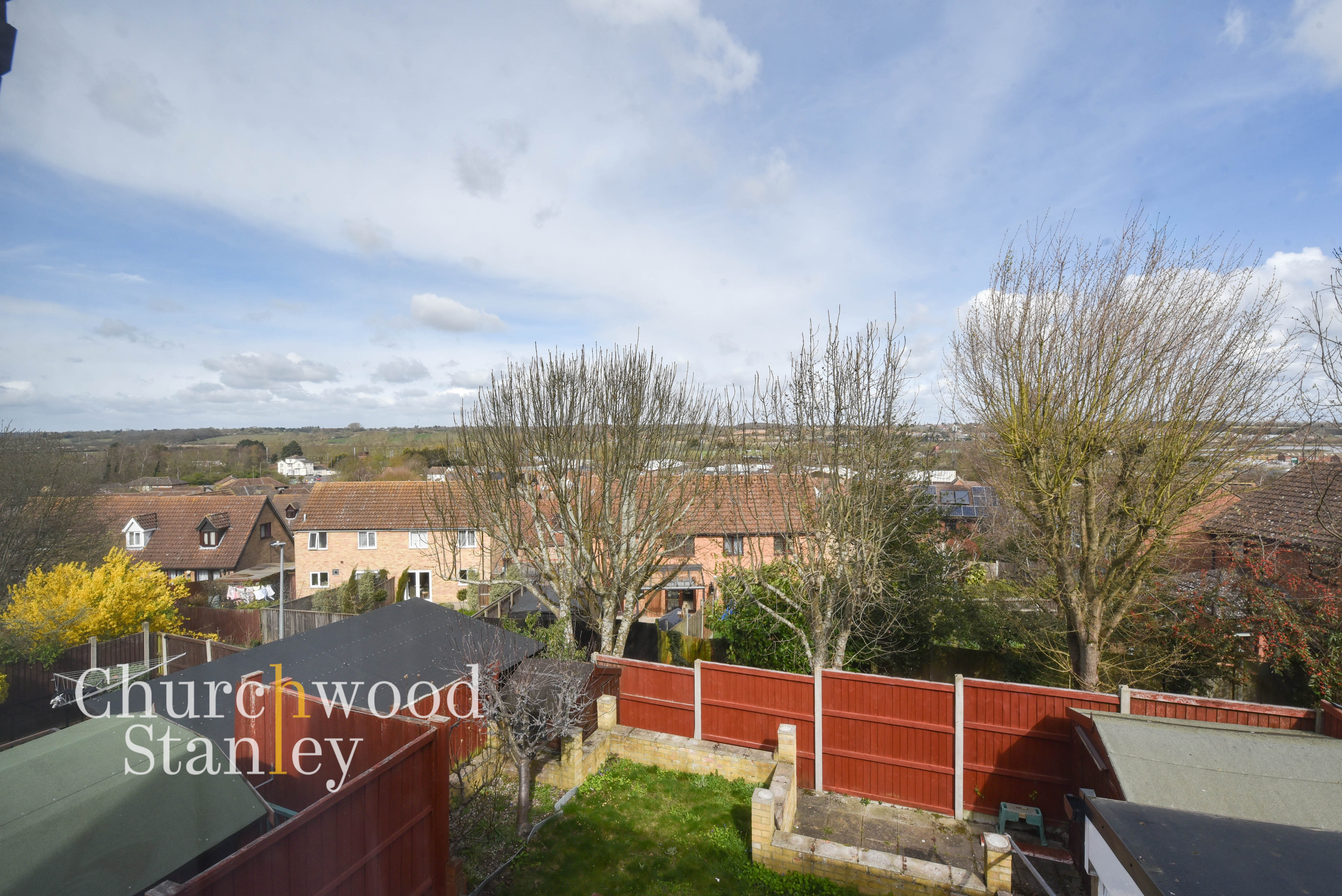 Upstairs, the same outlook becomes even more apparent. The main bedroom sits to the rear and takes full advantage of the elevated setting, with distant views reaching out towards the Stour estuary and across into Suffolk. Built-in wardrobes are already in place, helping to keep the room uncluttered.