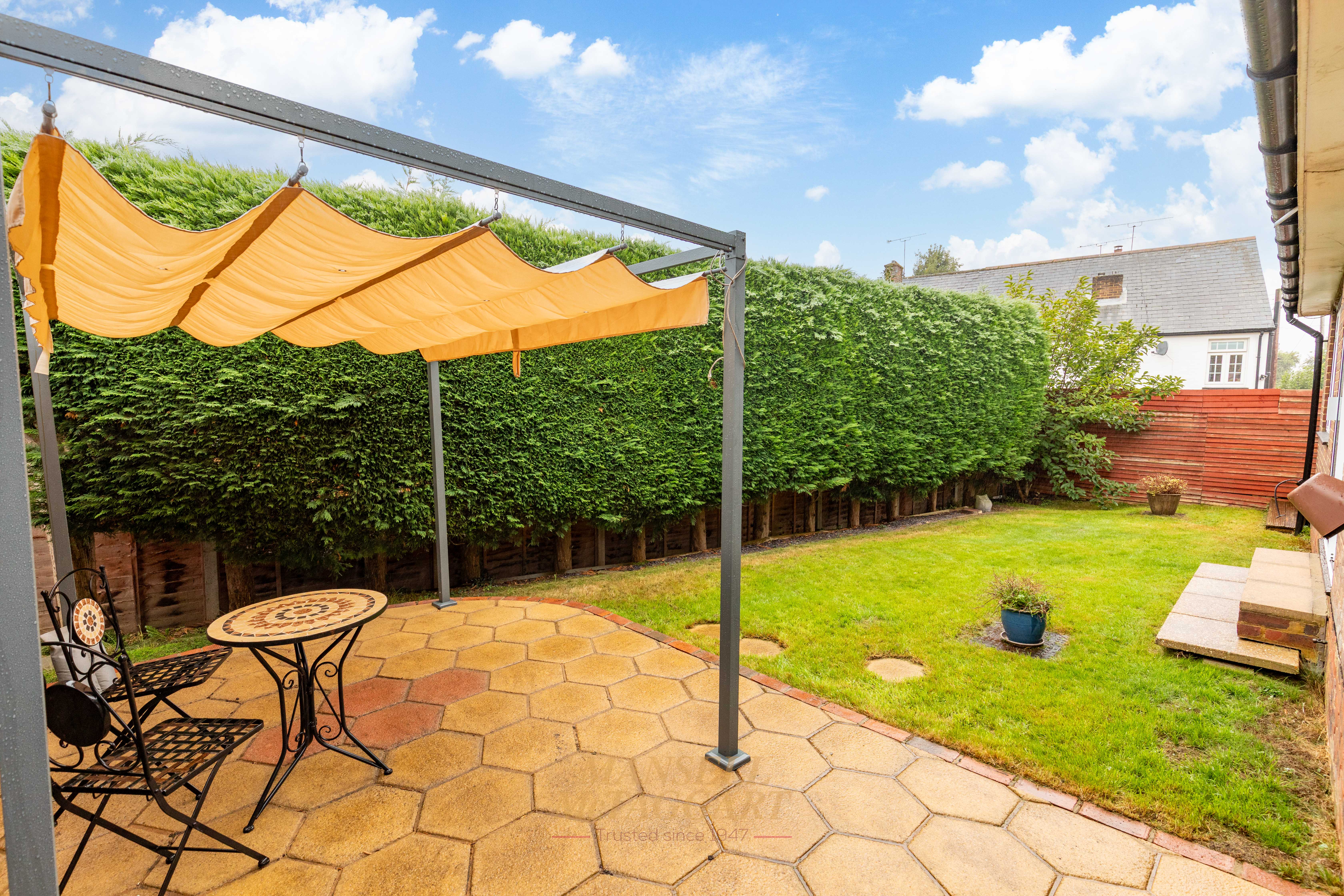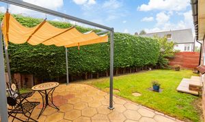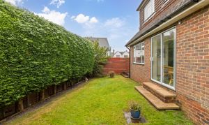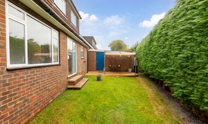 Externally, the front of the property is primarily devoted to parking, complemented by a neat lawn, shrubs, and flowerbeds. Gated side access leads to the beautifully landscaped rear garden, which enjoys a sunny south-facing aspect. This private and low-maintenance space combines paved patio areas with a well-kept lawn, colourful flower and shrub borders, all complemented by an outside tap. It provides an ideal setting for outdoor dining, family relaxation, and year-round enjoyment.