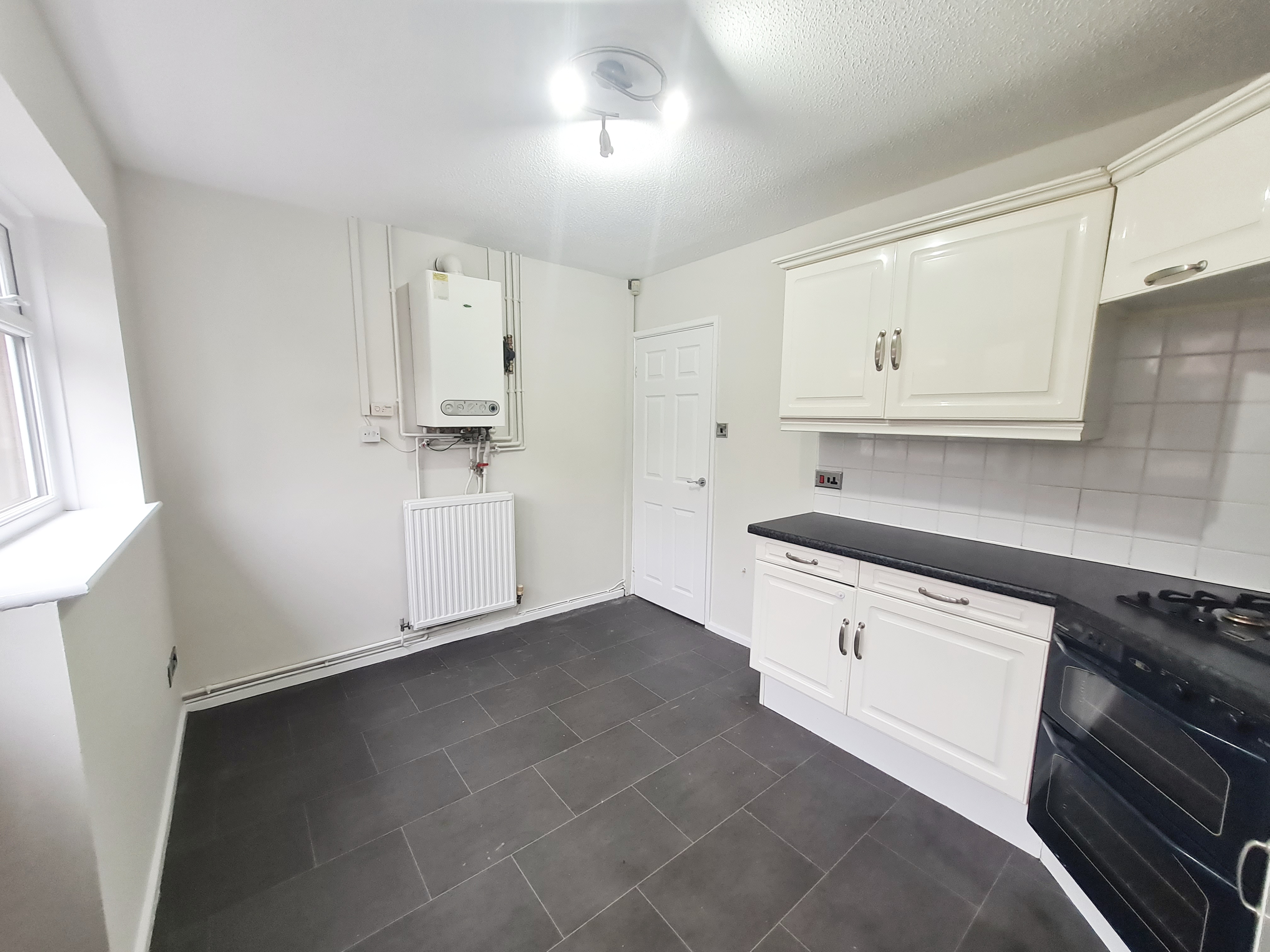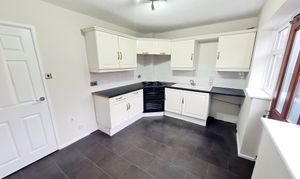 The property briefly comprises a spacious lounge leading through to a generous dining kitchen fitted with a range of wall and base units, complemented by contrasting work surfaces. There is ample space for a fridge/freezer and washing machine, making this a practical and well-designed space for everyday living.