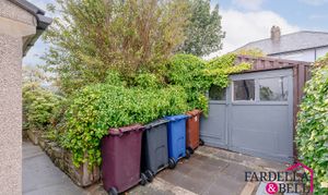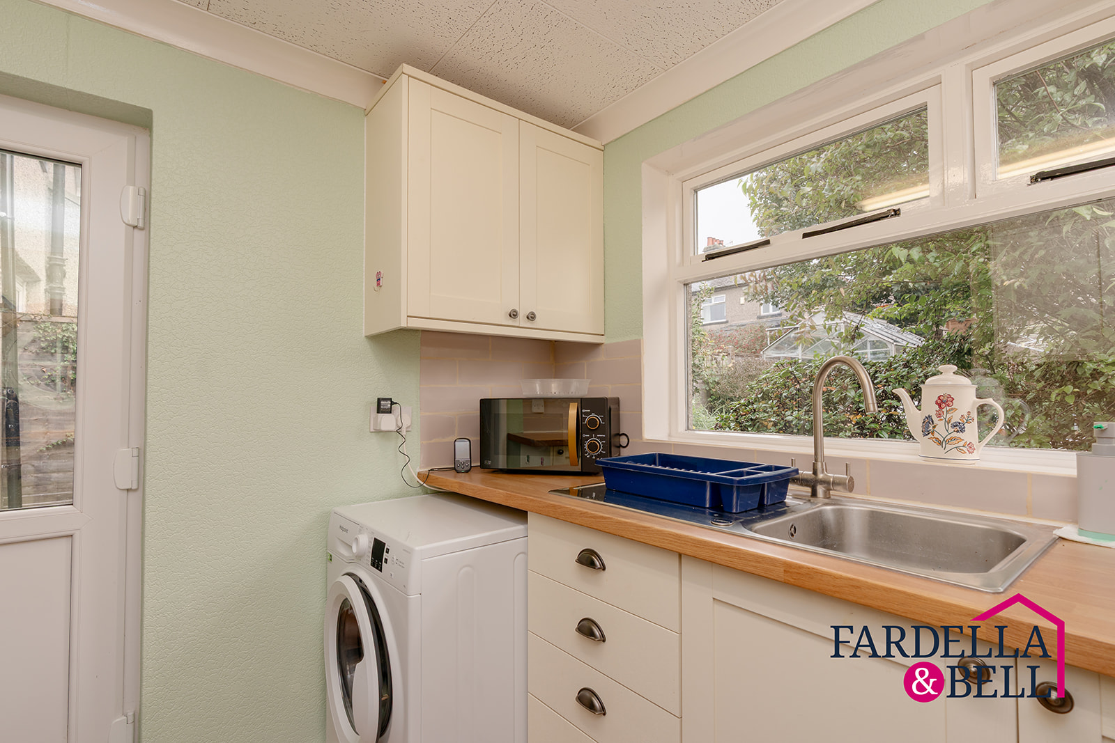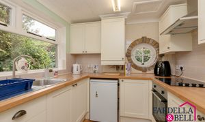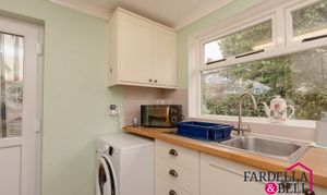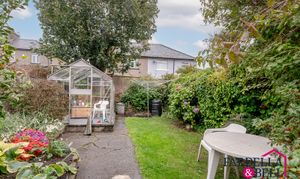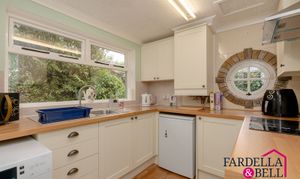 The modern kitchen stands out with its sleek cabinetry, integrated appliances, and unique circular window, making it both functional and stylish. Two comfortable bedrooms benefit from large windows, neutral décor, and plenty of storage, offering restful retreats for all household members. The stylish bathroom features a contemporary sink fixture and a large window for light and privacy. Outside, the private rear garden is beautifully landscaped with a lawn, mature shrubs, and an inviting outdoor seating area - ideal for alfresco dining or unwinding in peaceful surroundings. With a greenhouse and storage shed, this property also caters to gardening enthusiasts and those seeking extra storage. This home presents an ideal opportunity for families or professionals seeking space, comfort, and a harmonious indoor-outdoor lifestyle.