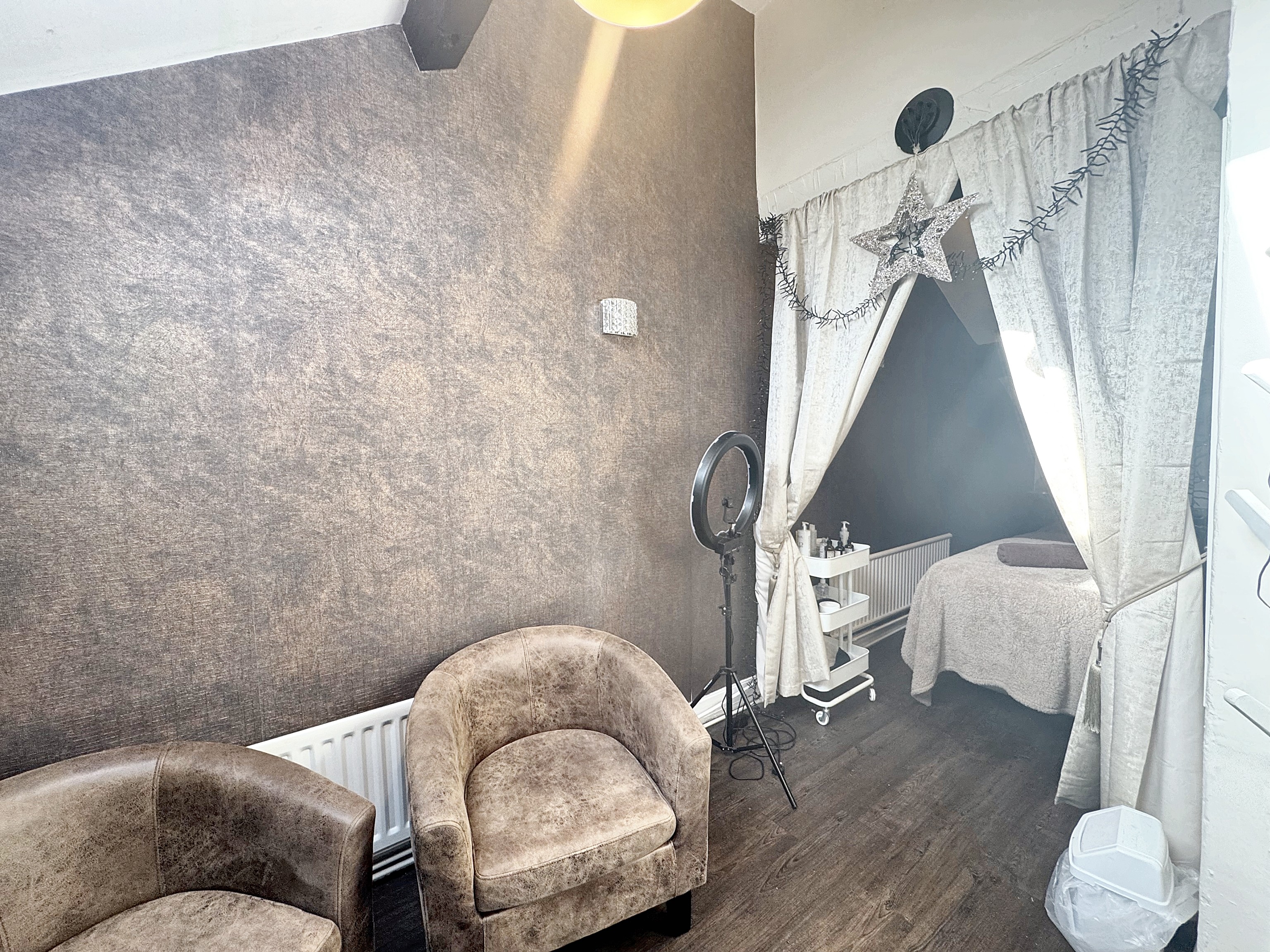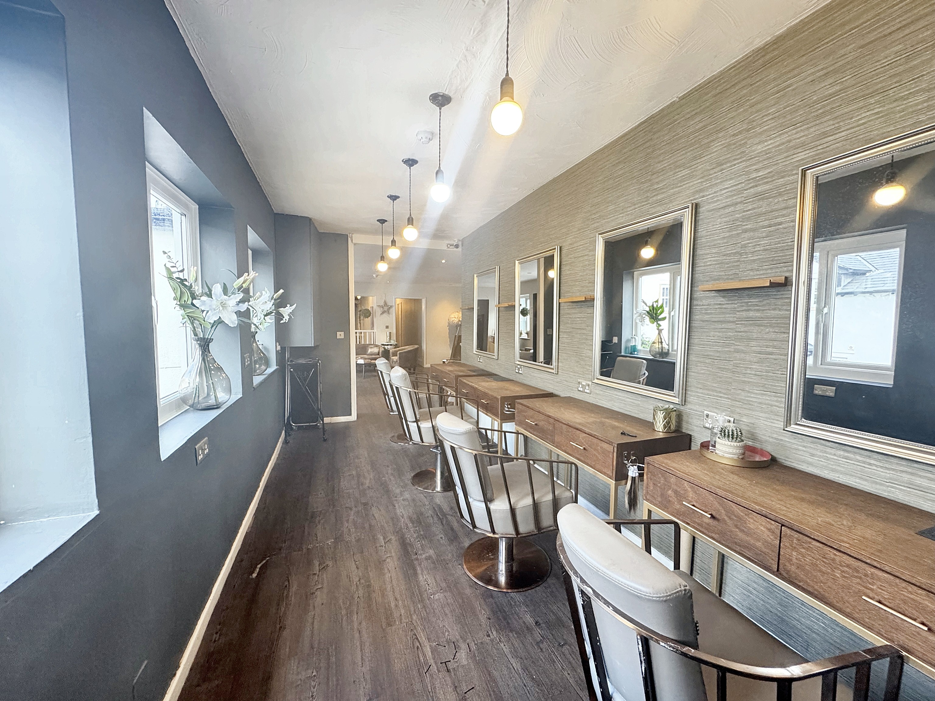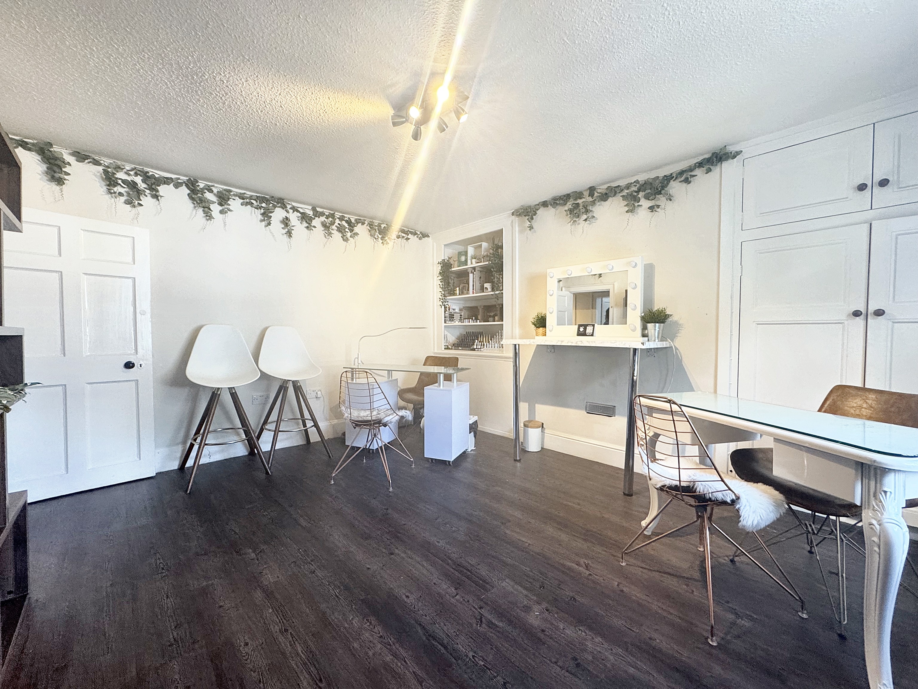 Further three windows to the side elevation. Currently used as hair dressing stations. A variety of p0lug sockets with USB ports. Combi boiler is housed in a cupboard. Back door access to the rear elevation with gated padlock access.