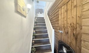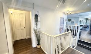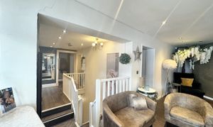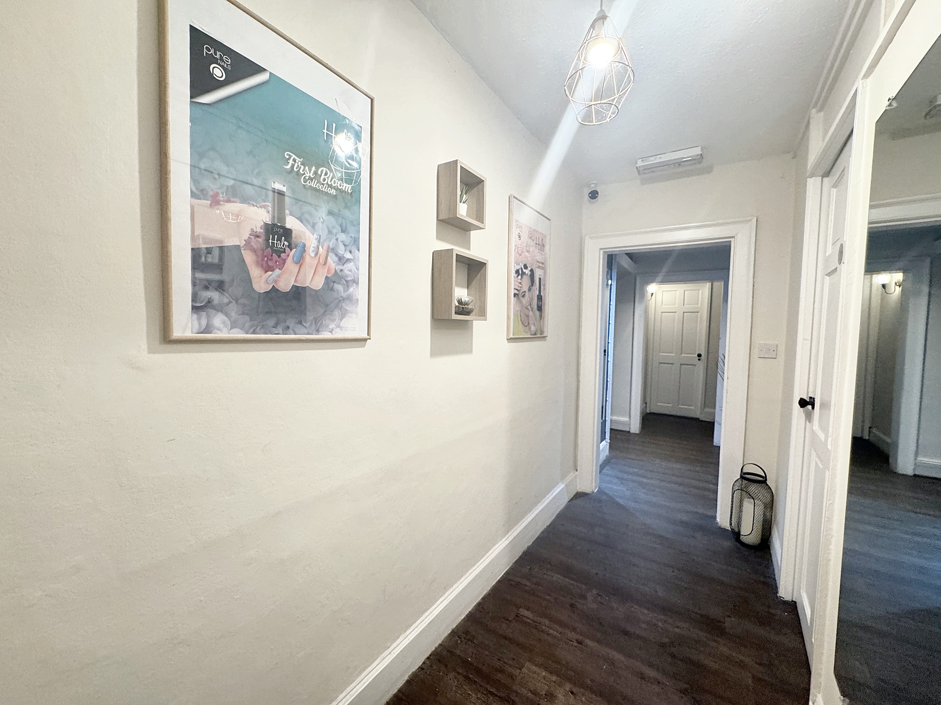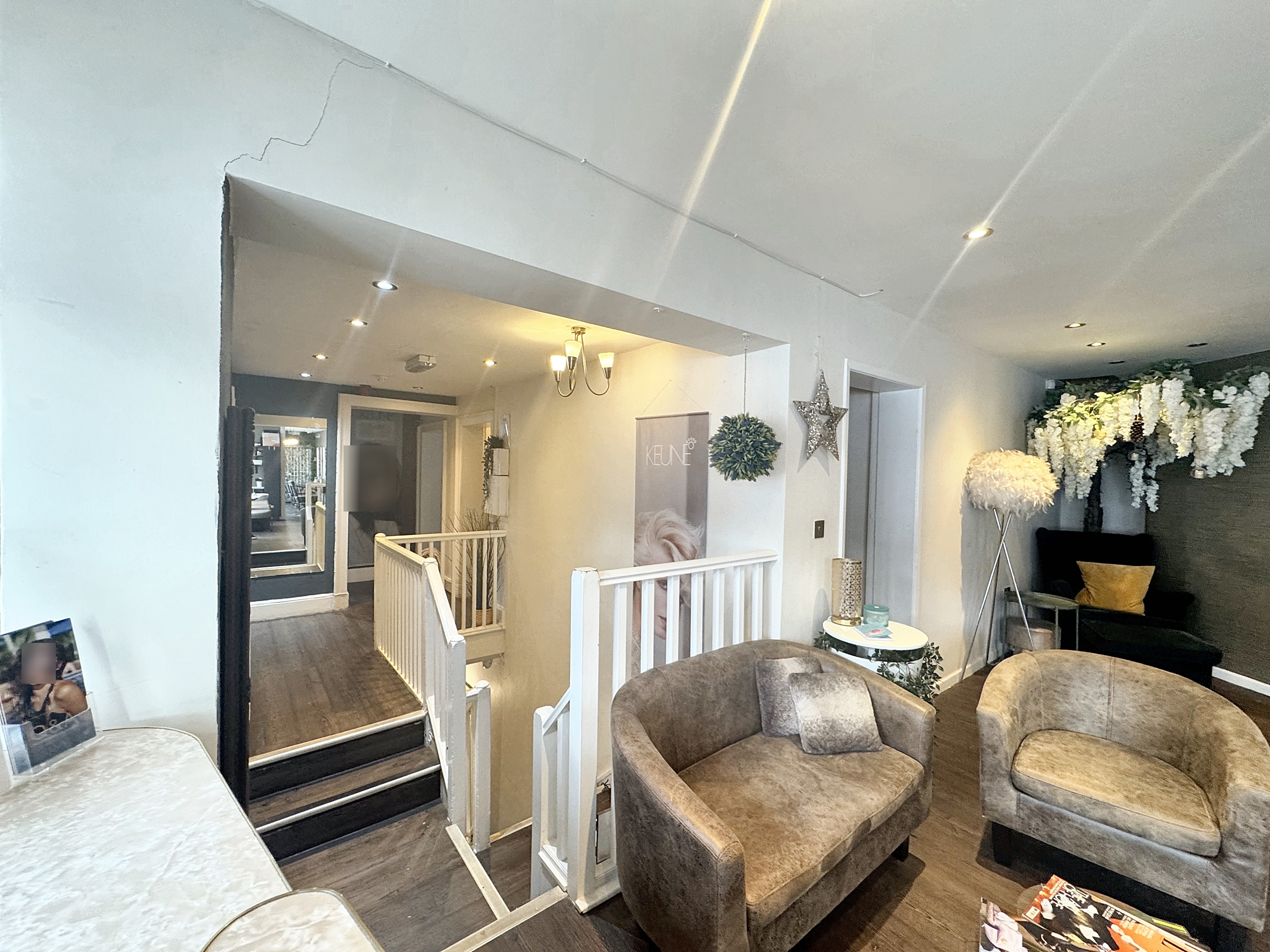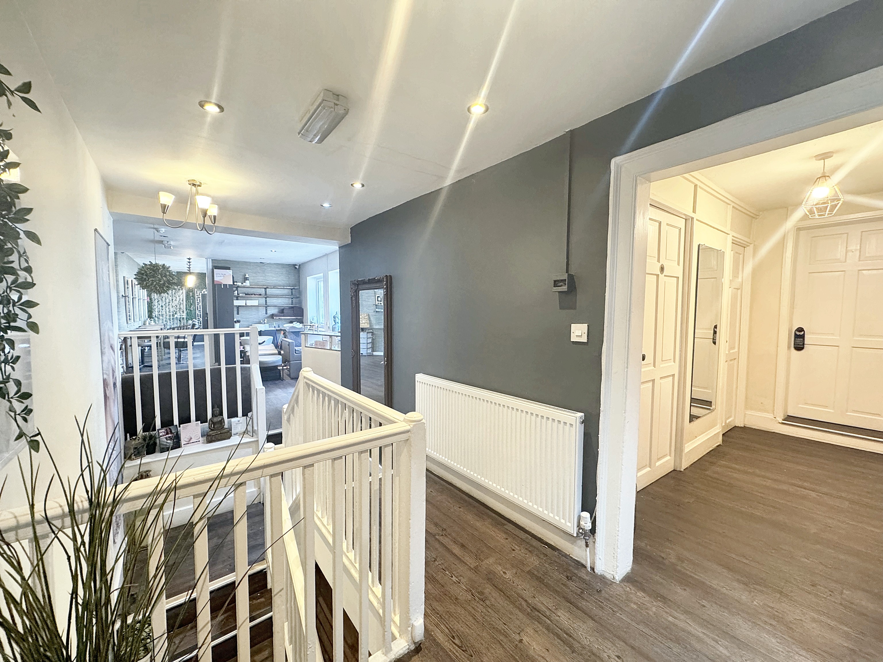 Further three windows to the side elevation. Currently used as hair dressing stations. A variety of p0lug sockets with USB ports. Combi boiler is housed in a cupboard. Back door access to the rear elevation with gated padlock access.