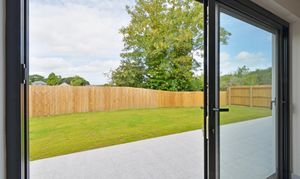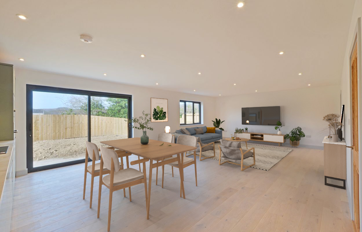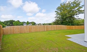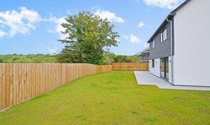 Plot 1 has the largest plot, level, enclosed with timber fencing, with granite sun terrace and the rest will be laid to lawn.