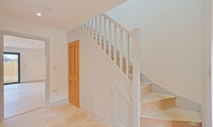 Entering the property through the front door, into an entrance hallway with the staircase to the first floor.