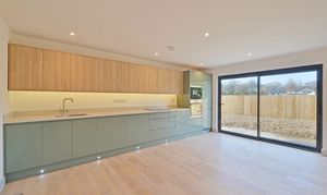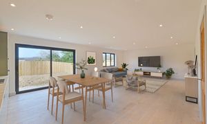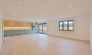 The generous open plan kitchen features a fully fitted contemporary kitchen with a range of integrated appliances and Quartz worktops, the dining area, which is capable of accommodating a large family dining table and lounge area.