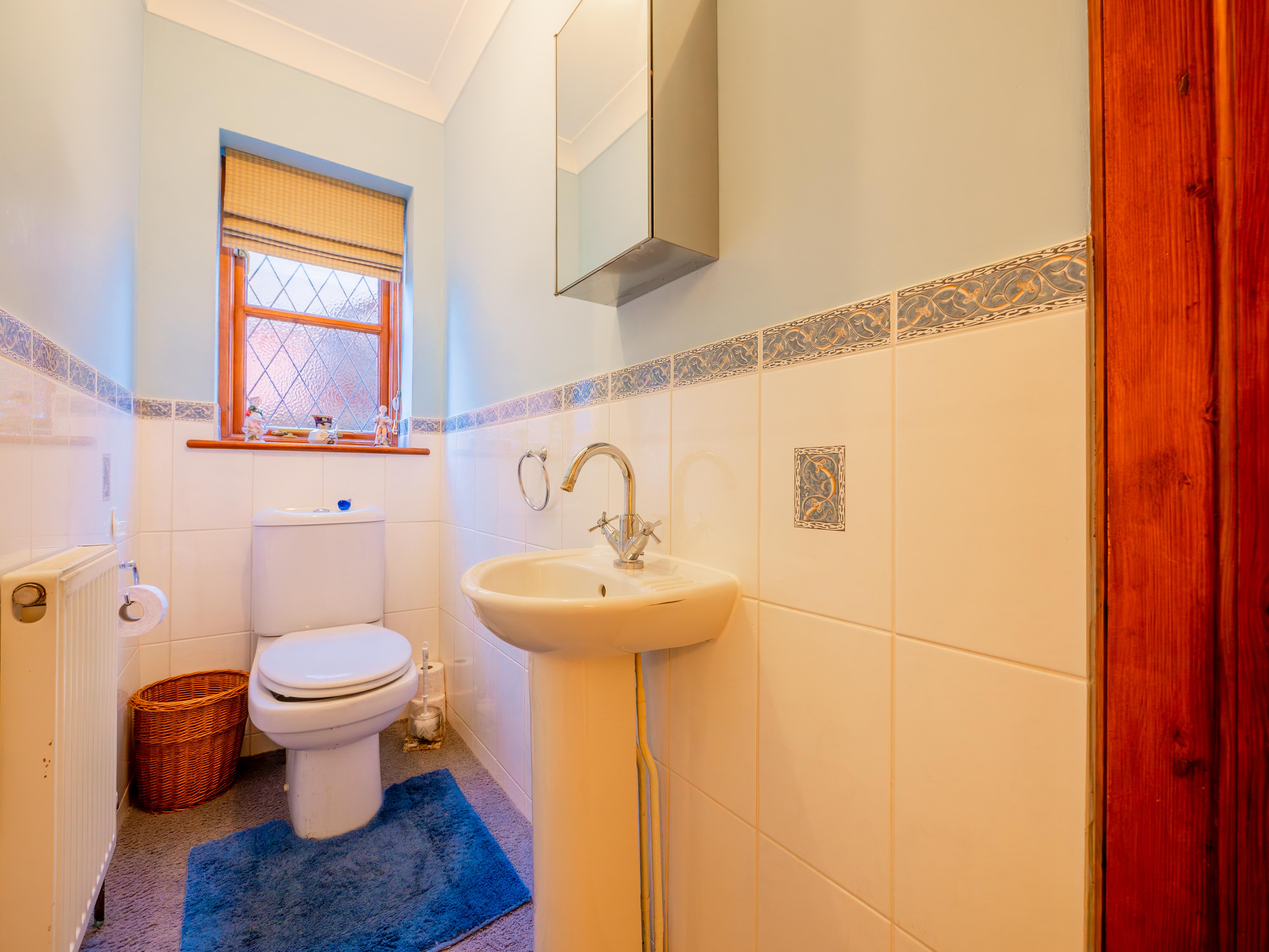 Upstairs, four remarkably spacious double bedrooms provide ample room for family, guests, or home office setups, while the principal bedroom features its own modern en-suite for added privacy. A well-appointed family bathroom and a ground floor W/C ensure convenience across both floors.