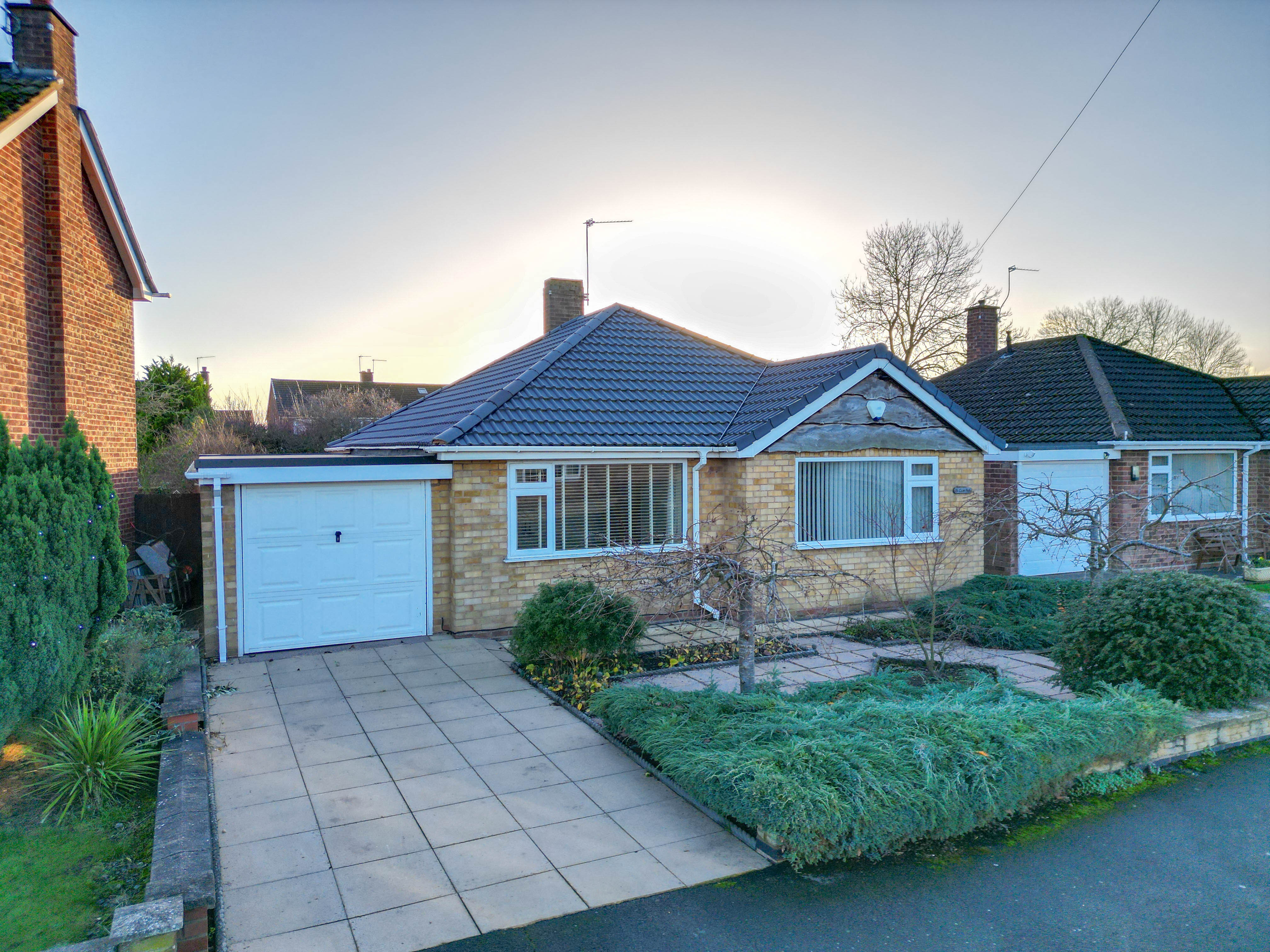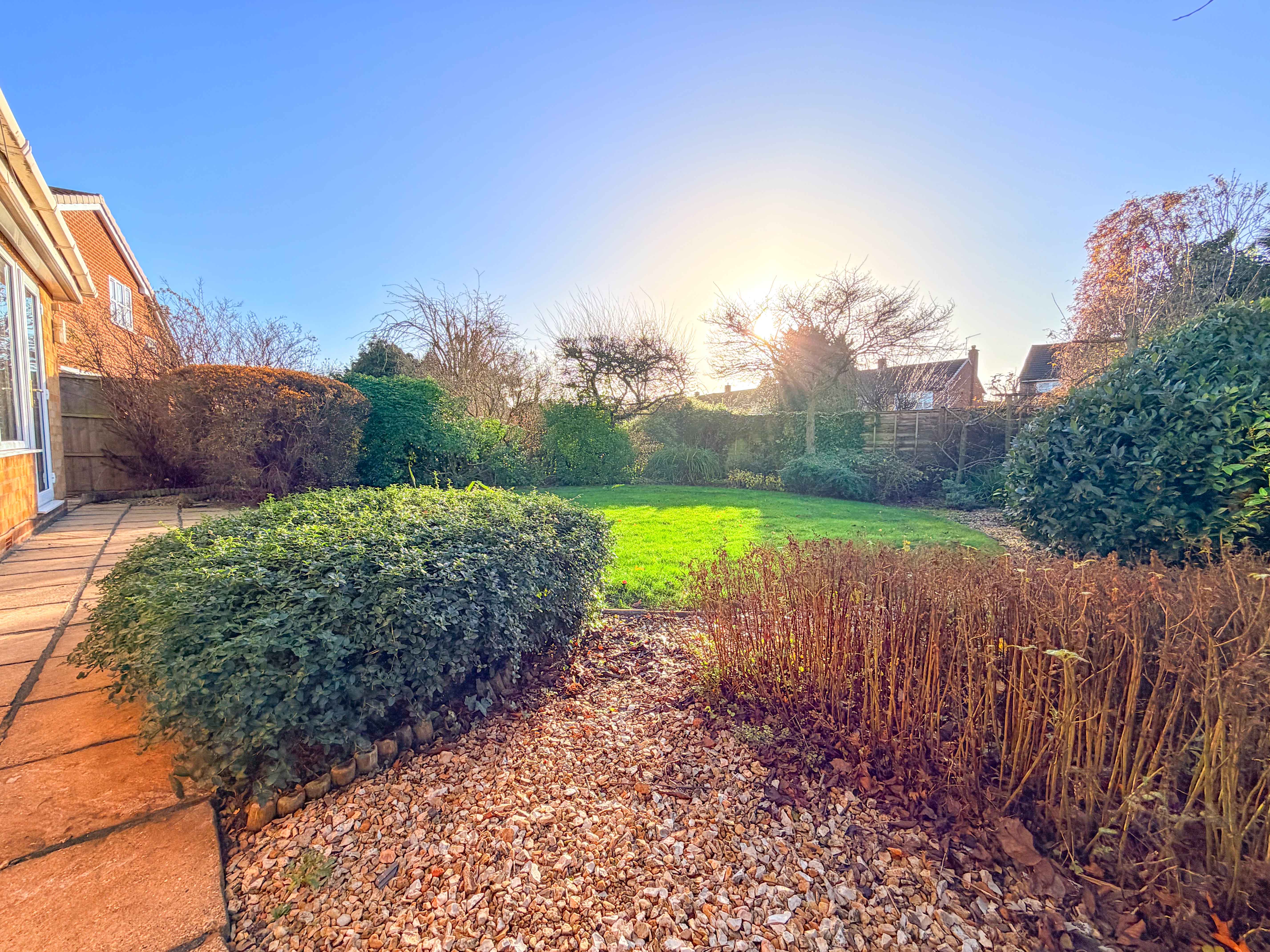 The property is approached via a driveway providing off-road parking and leading to the garage. An attractive, low-maintenance front garden enhances the home’s kerb appeal and creates a welcoming first impression, with a pathway guiding you to the side entrance door.