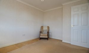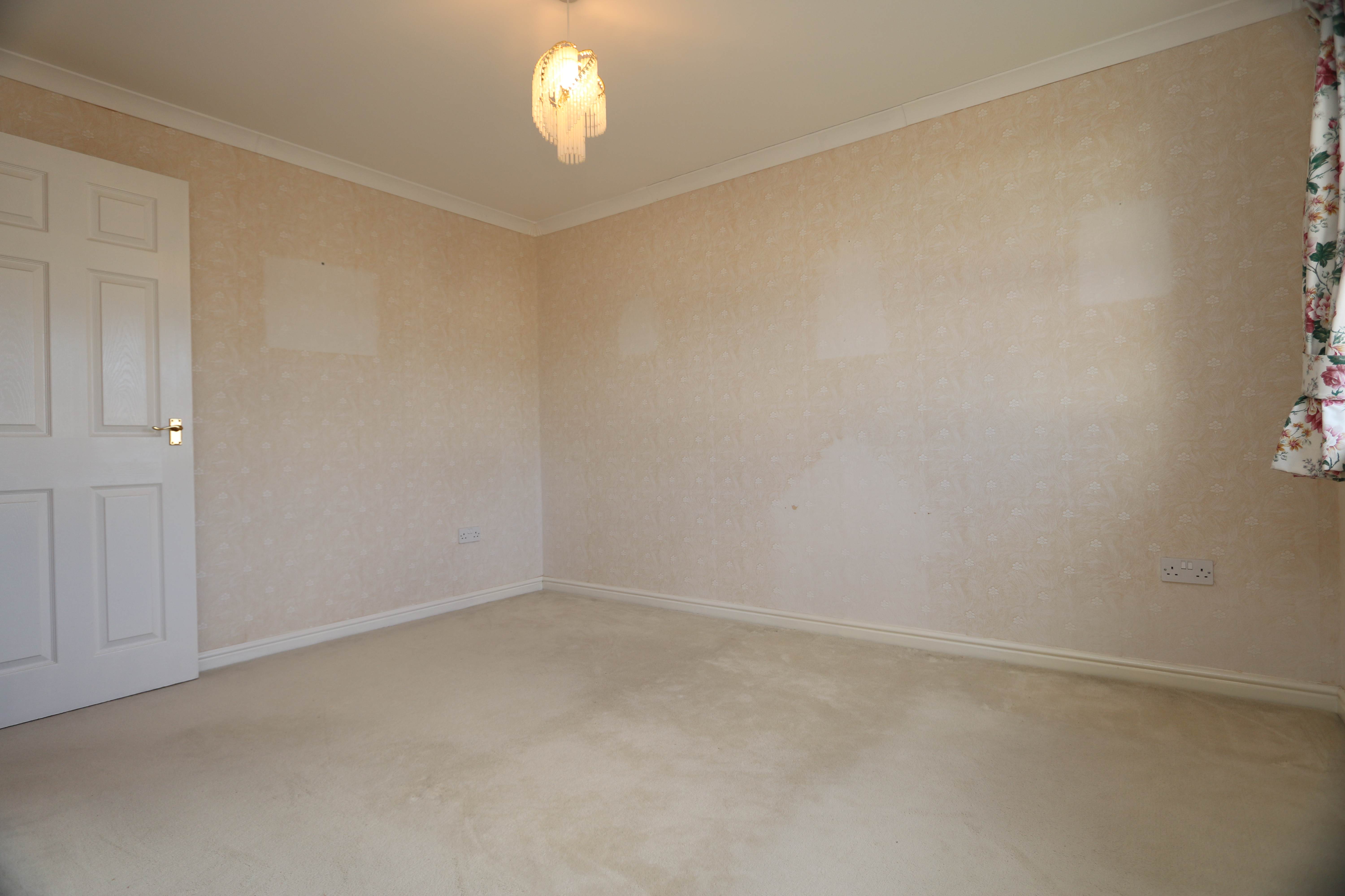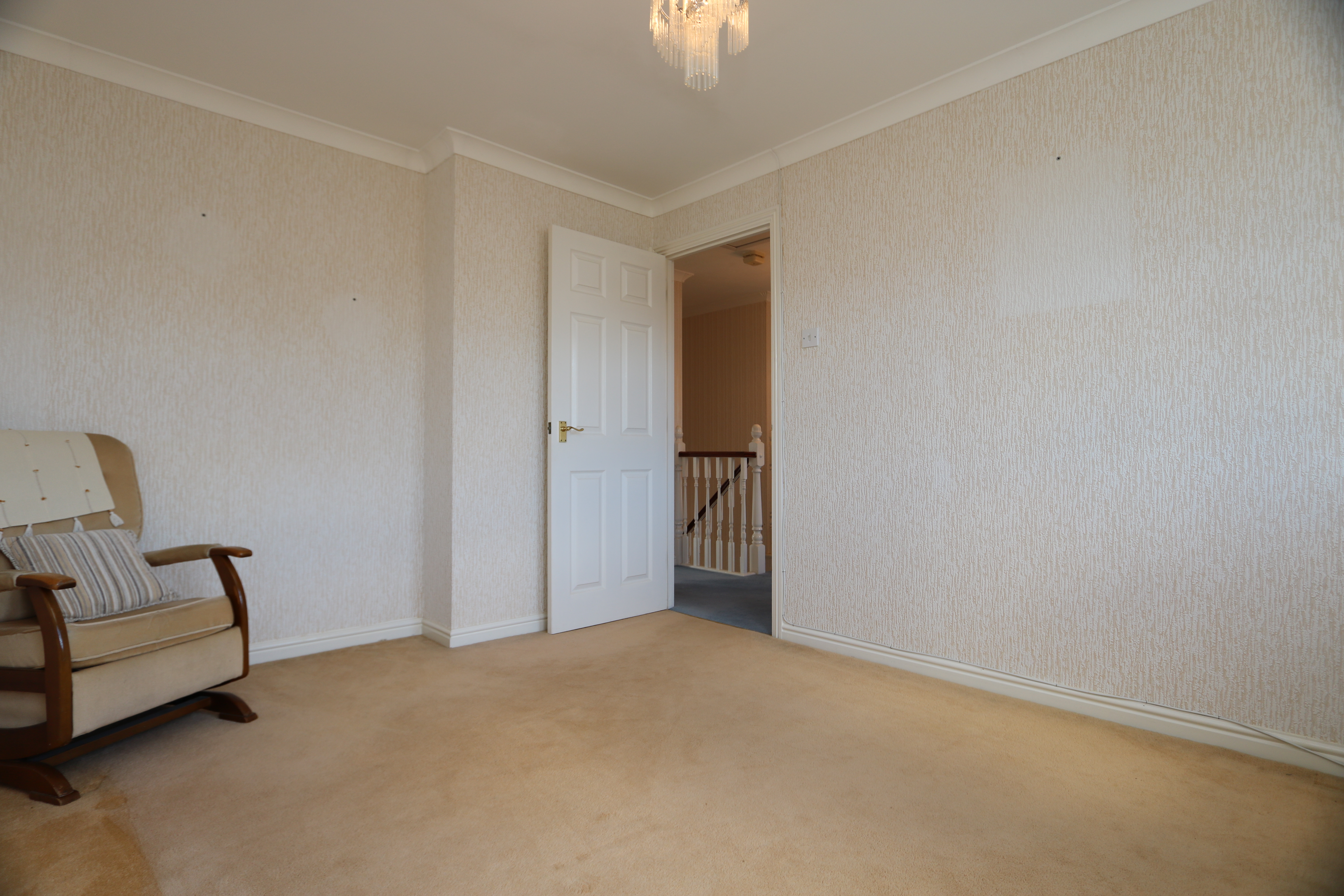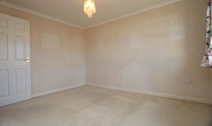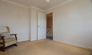 Carpeted with wallpapered walls and a smooth coved ceiling. Two rear aspect windows and a radiator.