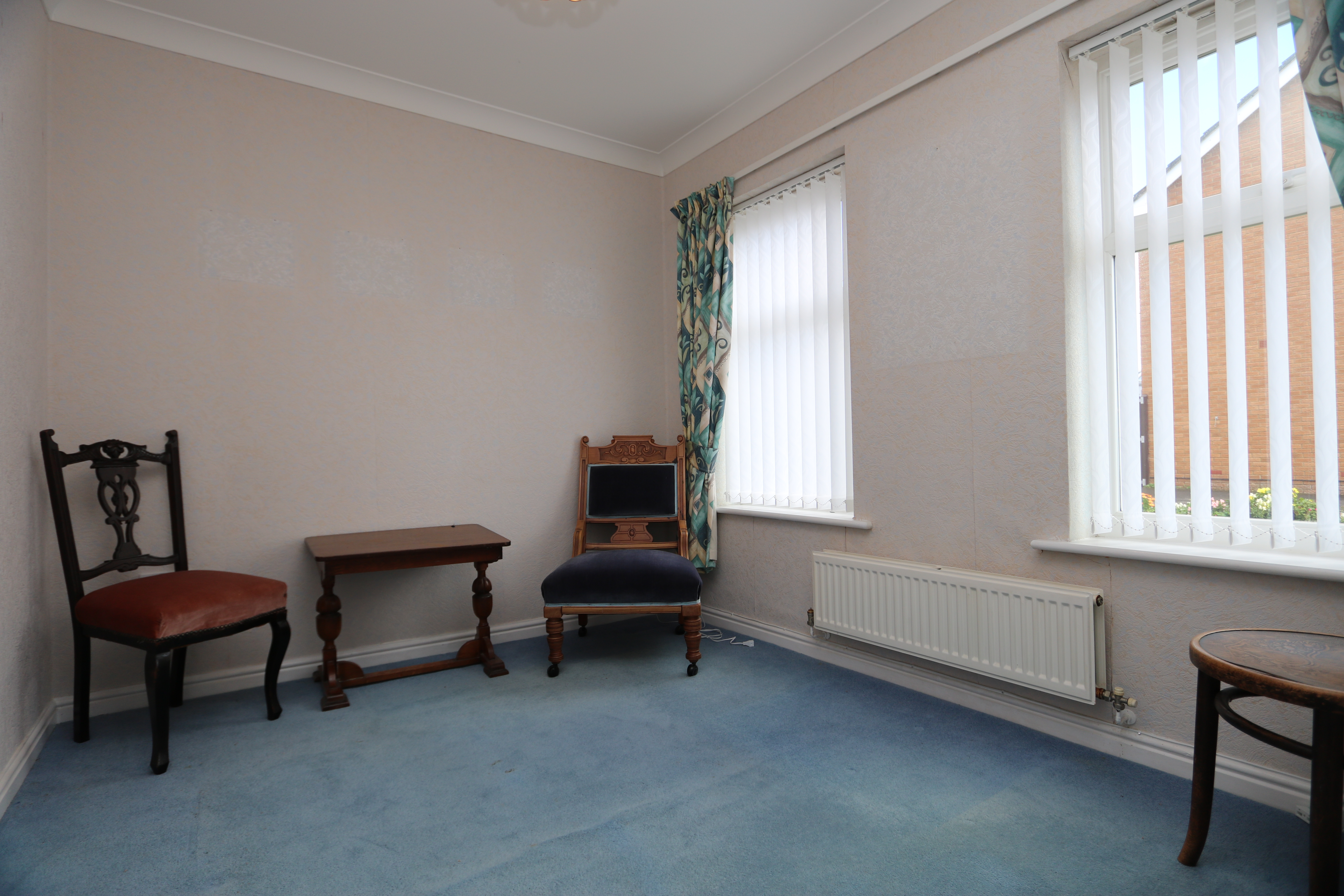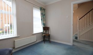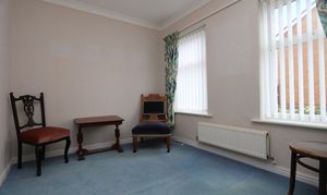 Carpeted with wallpapered walls and a smooth coved ceiling. Two front aspect windows and a radiator.