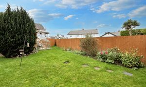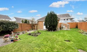 Step out of the double opening doors from the dining room onto a well-appointed patio area perfect for outdoor seating. This generous rear garden is largely laid to lawn with a greenhouse, well established shrubbery, access to the double garage and side access to the front of the property.