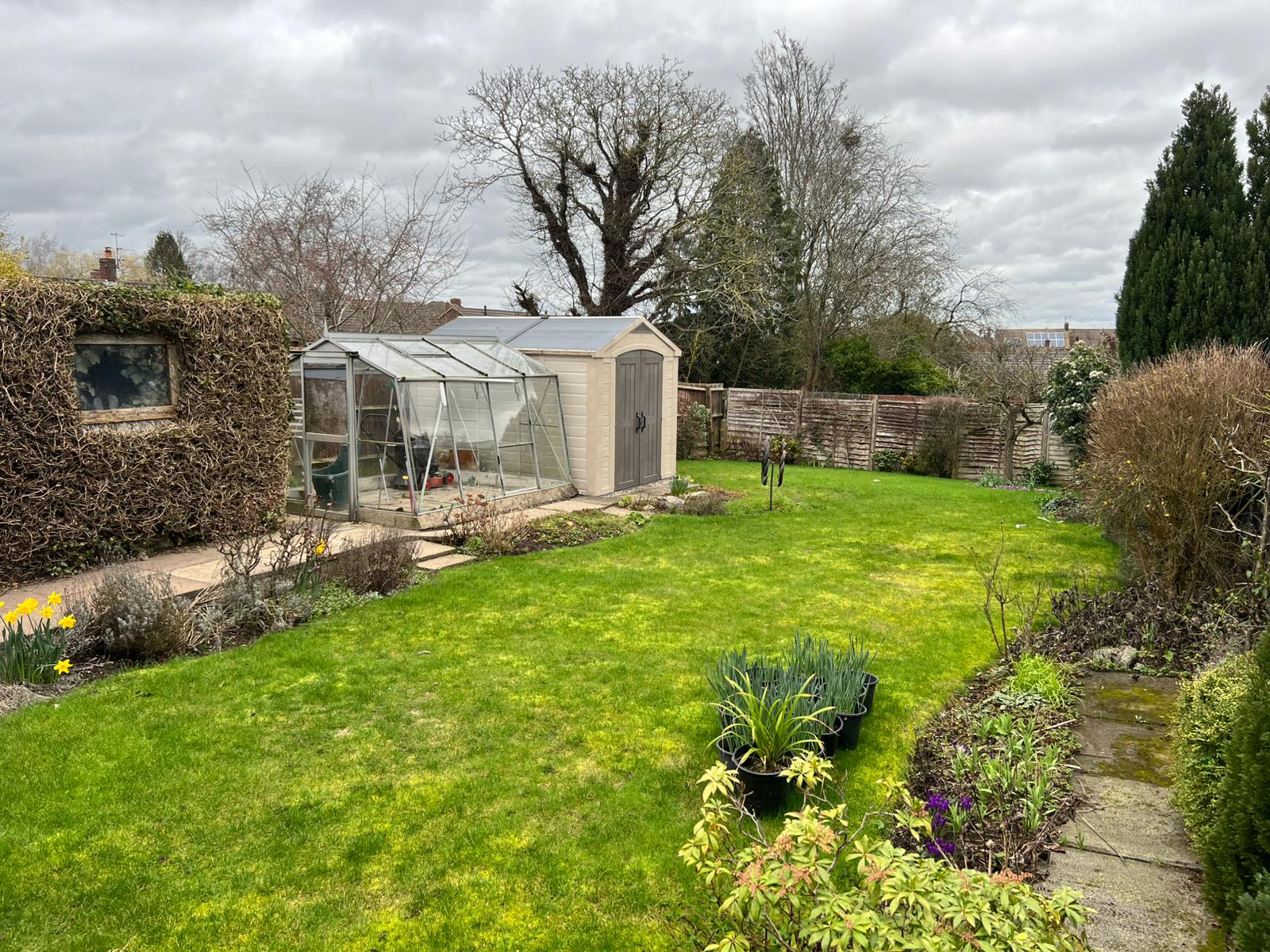 To the back of the property, there is a generous garden which has mainly laid lawn, shrub borders, fenced boundaries, green house, shed, raised patio, slabbed pathway and cold water tap.