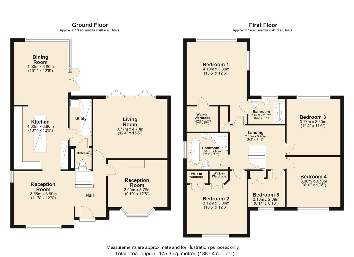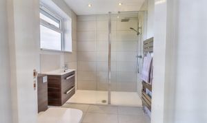 Upstairs, four well-proportioned bedrooms include a fabulous principal suite with walk-in wardrobe and a sleek en-suite featuring a double shower. Two further large doubles and a good-sized single are served by a contemporary family bathroom with both bath and separate shower.