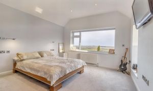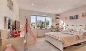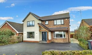 Set on a generous plot with far-reaching views, this modern five-bedroom detached home pairs stylish interiors with superb family flexibility and brilliant outdoor space. A broad driveway provides ample off-road parking, and the rear garden enjoys an open aspect with a wide lawn and a large patio that’s perfect for summer entertaining.