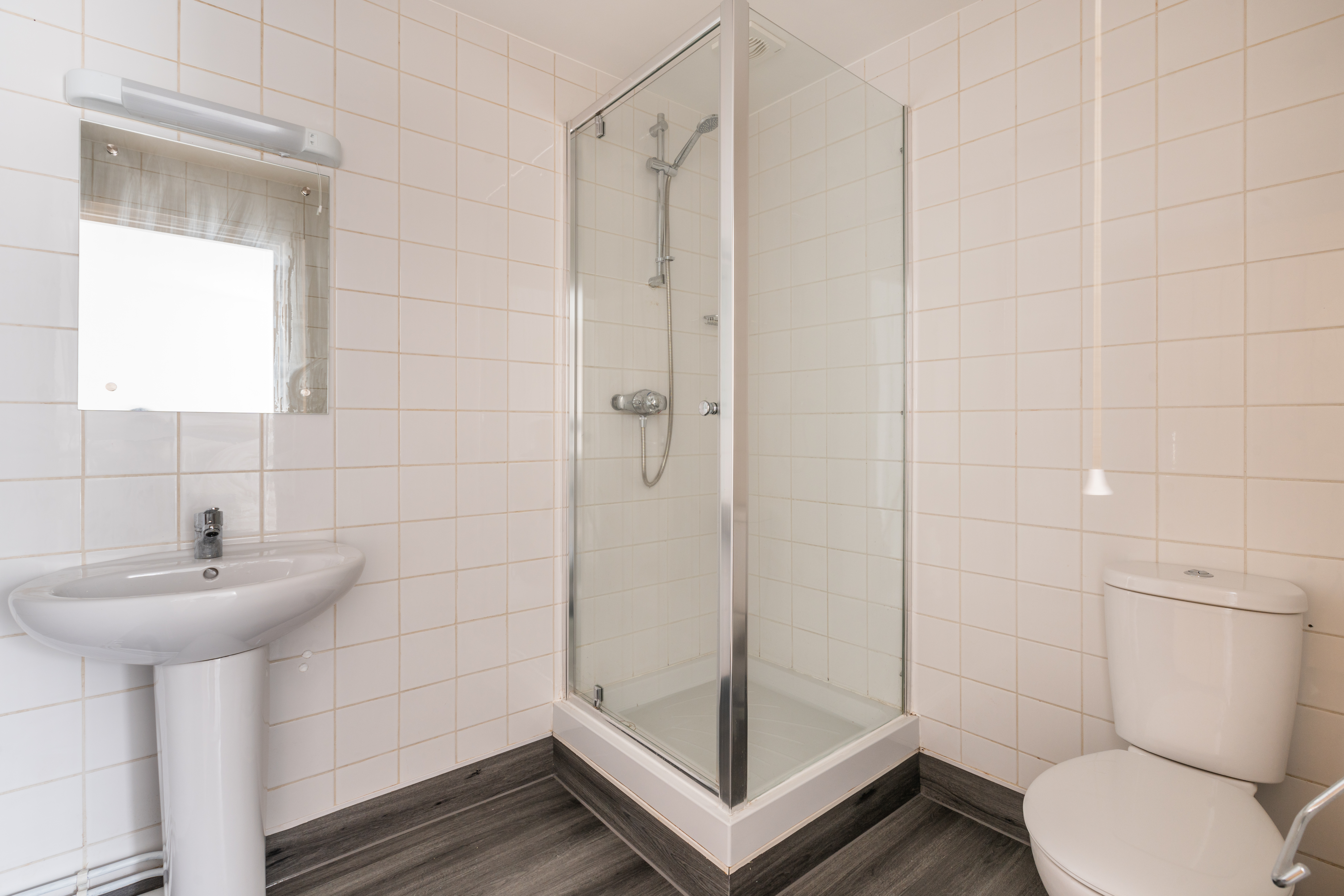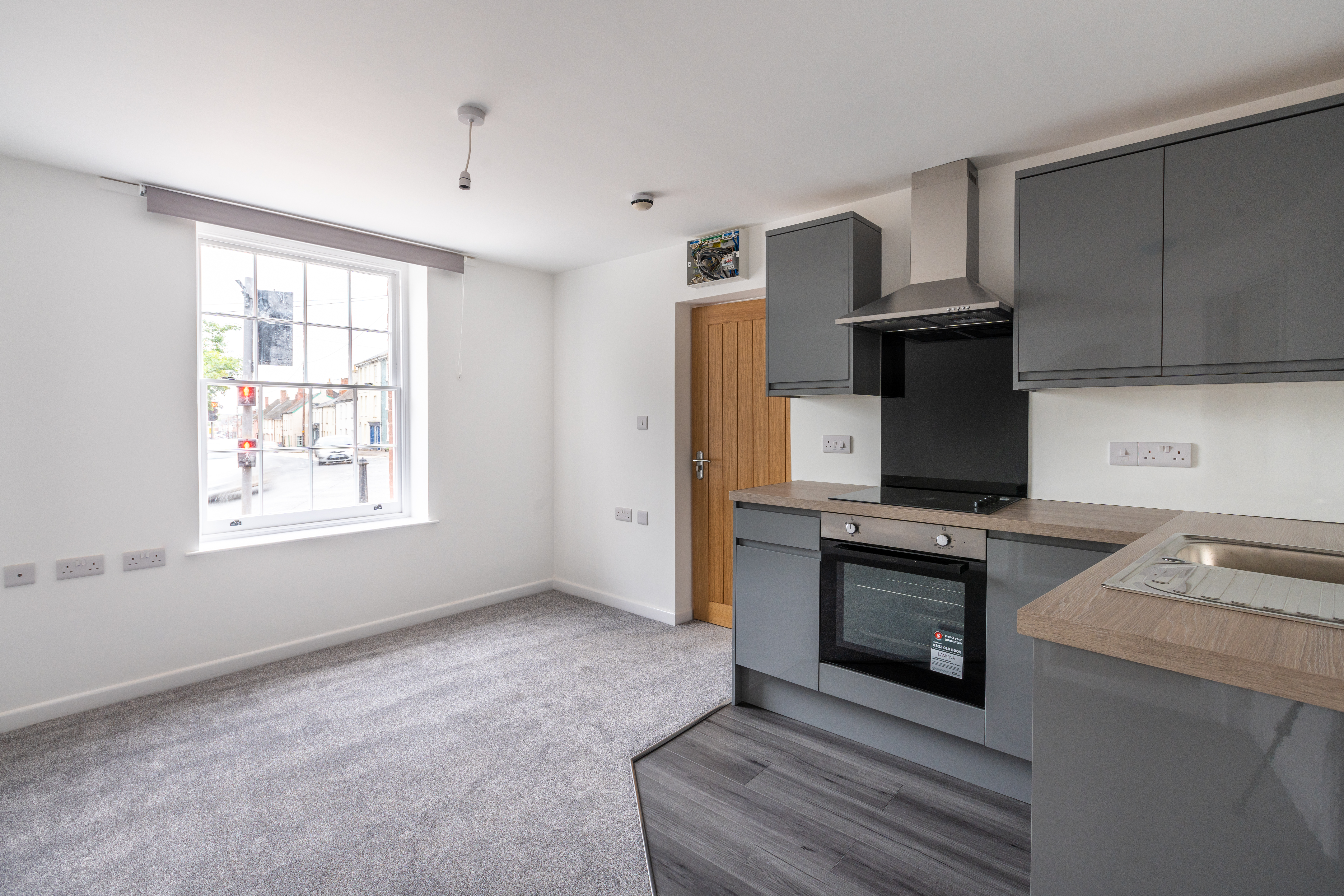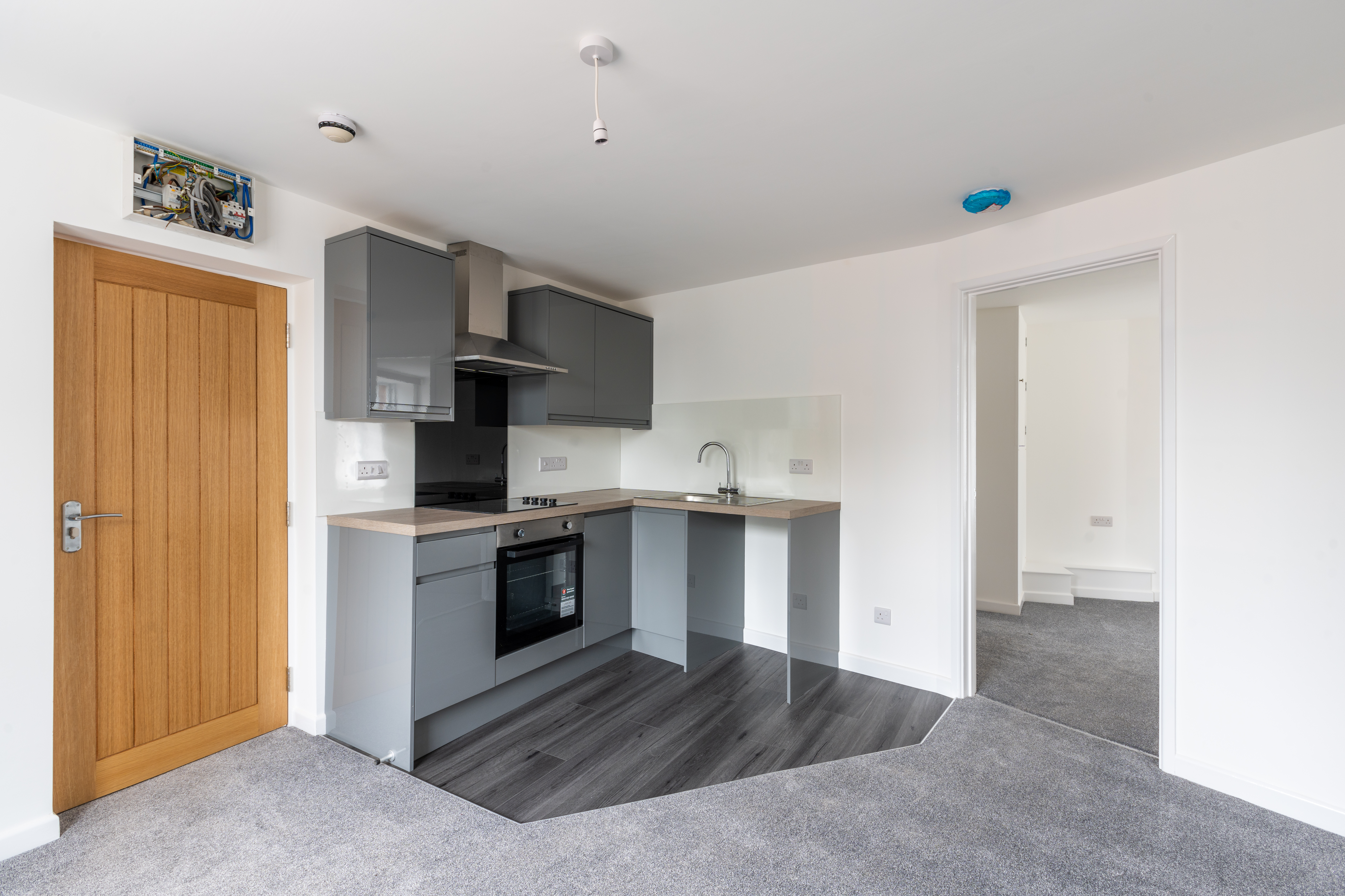 Flat 2, The Red House, St Lawrence Green is a ground floor apartment available in a modern development of studio and one bedroom flats in the centre of Crediton. The renovation has been carried out to a very high specification and offers contemporary living in the heart of this bustling town. Flat 2 is a one bedroom flat with shower room on the ground floor. As with all of the units at The Red House it benefits from new kitchen, flooring and has high efficiency hot water and heating through an electric combi boiler.