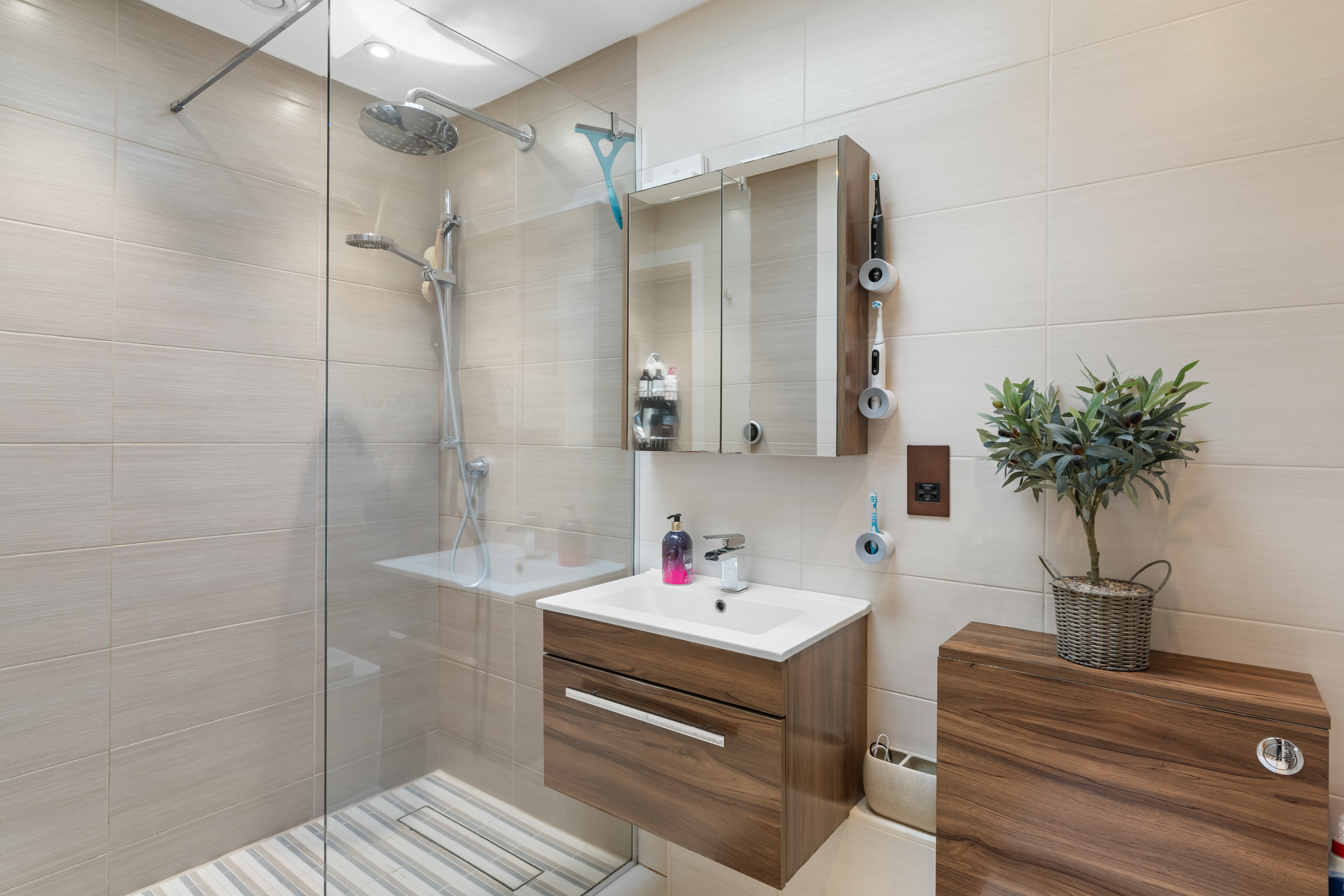 The accommodation includes five generous bedrooms, served by stylish bathrooms. The principal bedrooms benefit from well-appointed dressing areas and contemporary en-suite shower room, offering both comfort and privacy.