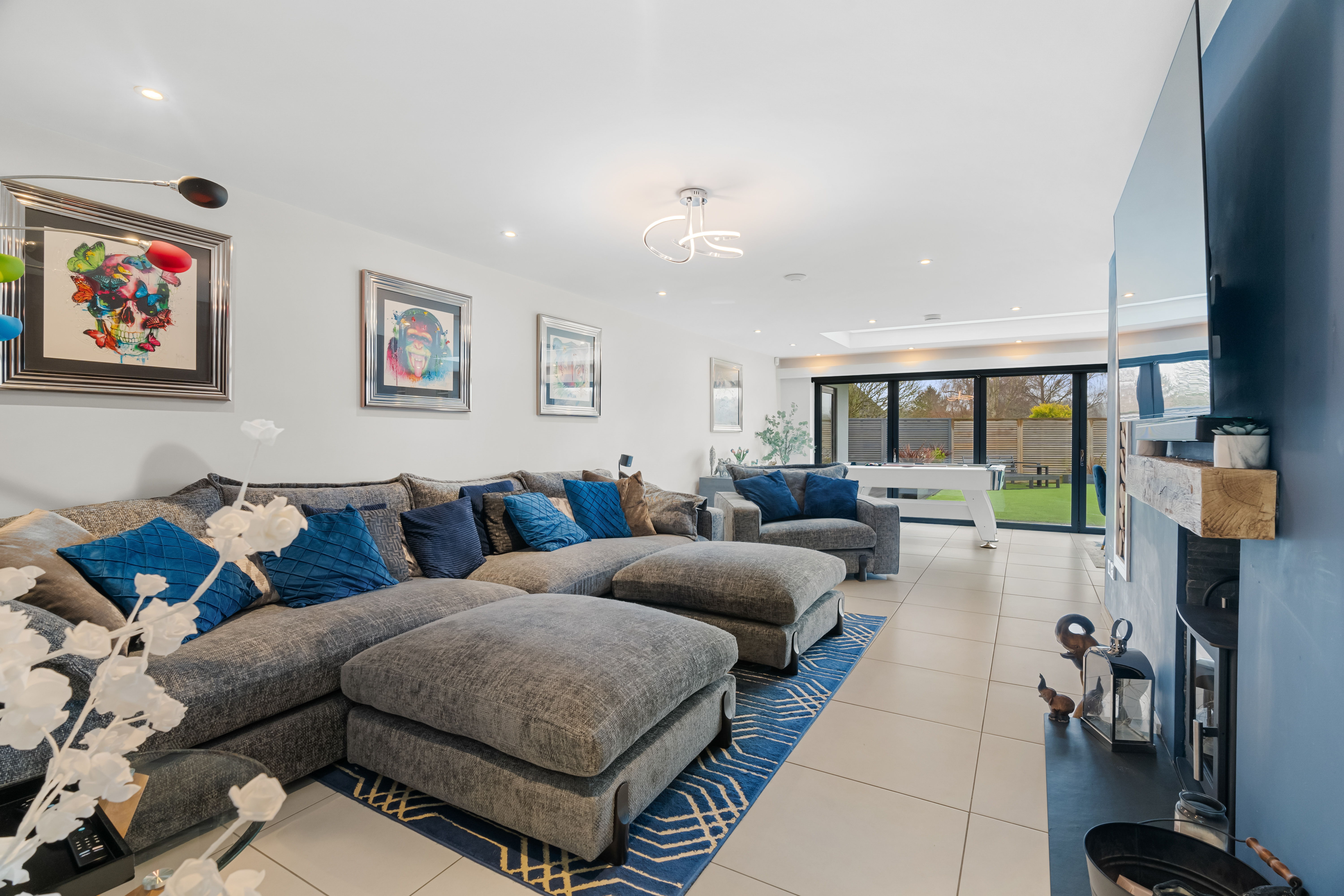 The home is equipped with an array of advanced features, including integrated Wi-Fi hotspots, underfloor heating, smart appliances, electric blinds, CCTV, and a luxurious hot tub with built-in lighting and sound system- creating a home perfectly suited to modern living.