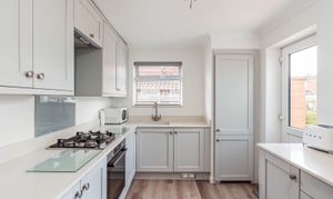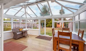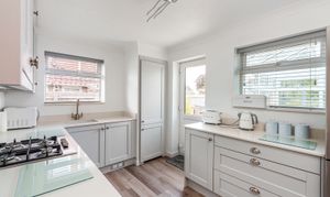 The Entrance hall way has a staircase rising to the first floor, cloak room and further cupboard housing the hot water tank. Further rooms on the ground floor included two bedrooms one having a bay fronted window, this room could also be used as and office. The larger bedroom also has a bay fronted window. Shower room with cubicle, wash hand basin and WC, living room with French doors leading into the conservatory which has French doors onto the substantial rear garden. The newly fitted kitchen (2025 Sussex trade kitchens) includes a selection of eye level and base units, quartz worksurfaces, integral appliances including four Bosch gas hob, Bosch oven and grill, Bosch washing machine, extractor fan, cupboard housing Valliant gas boiler, door onto rear garden.