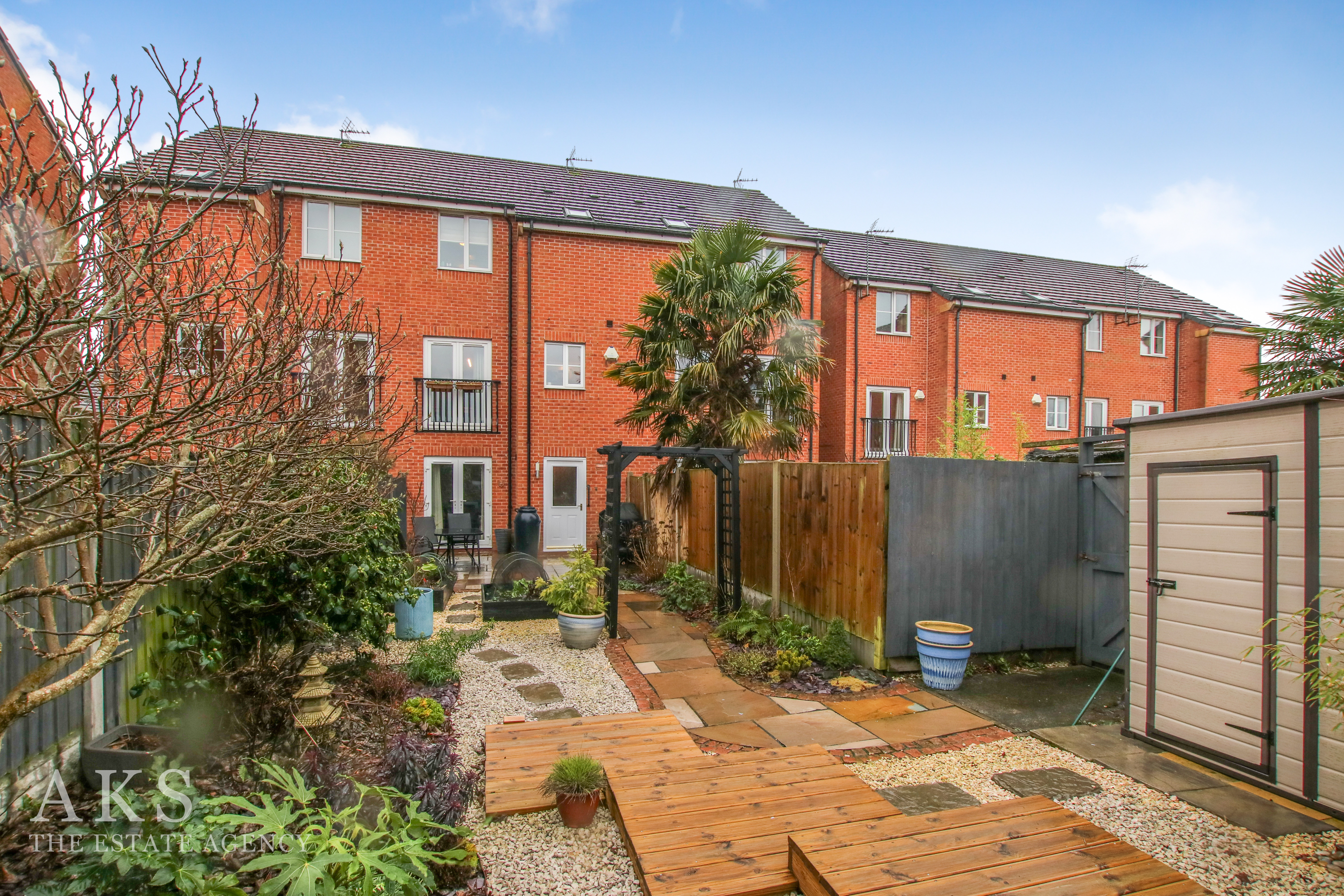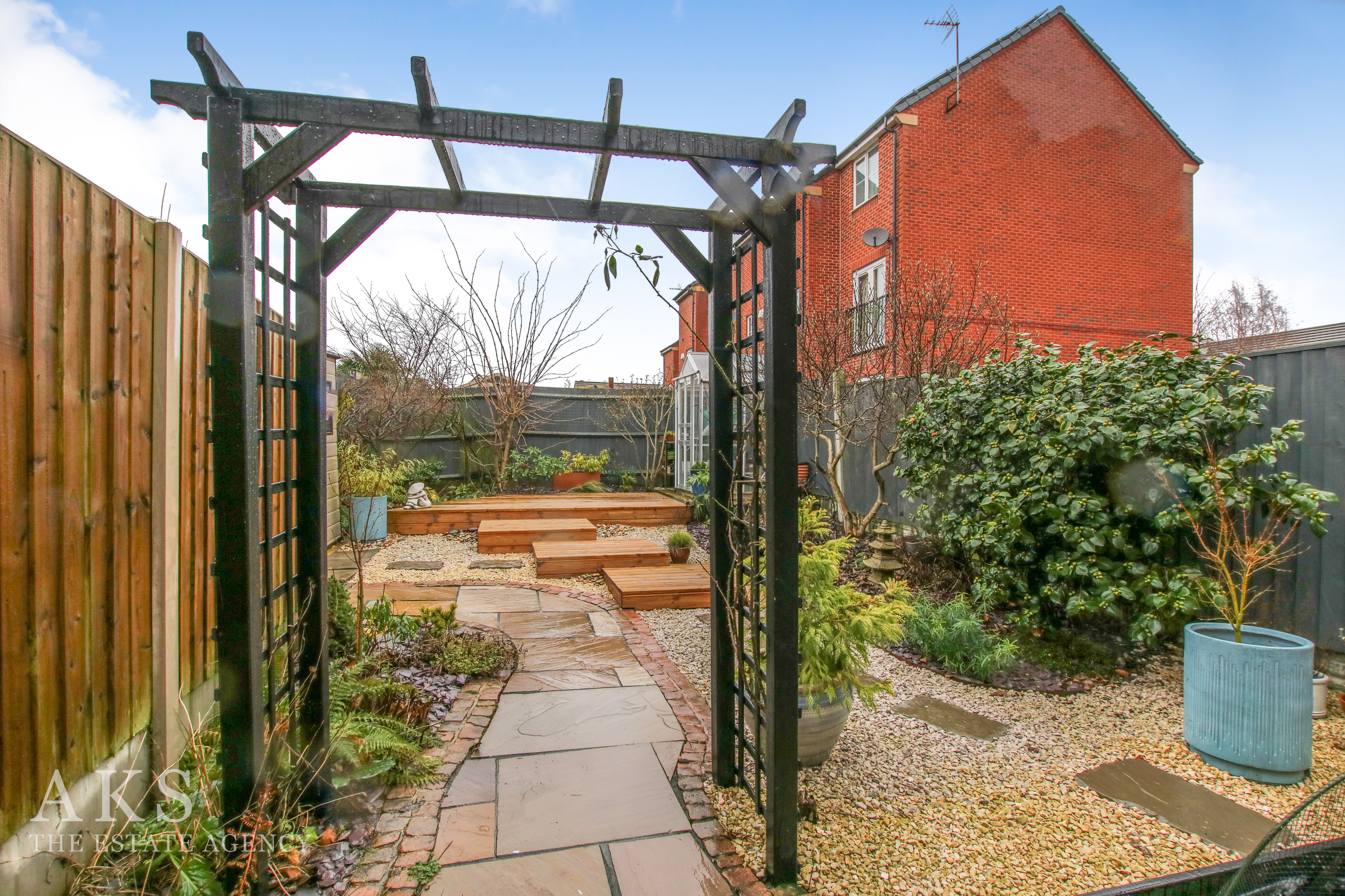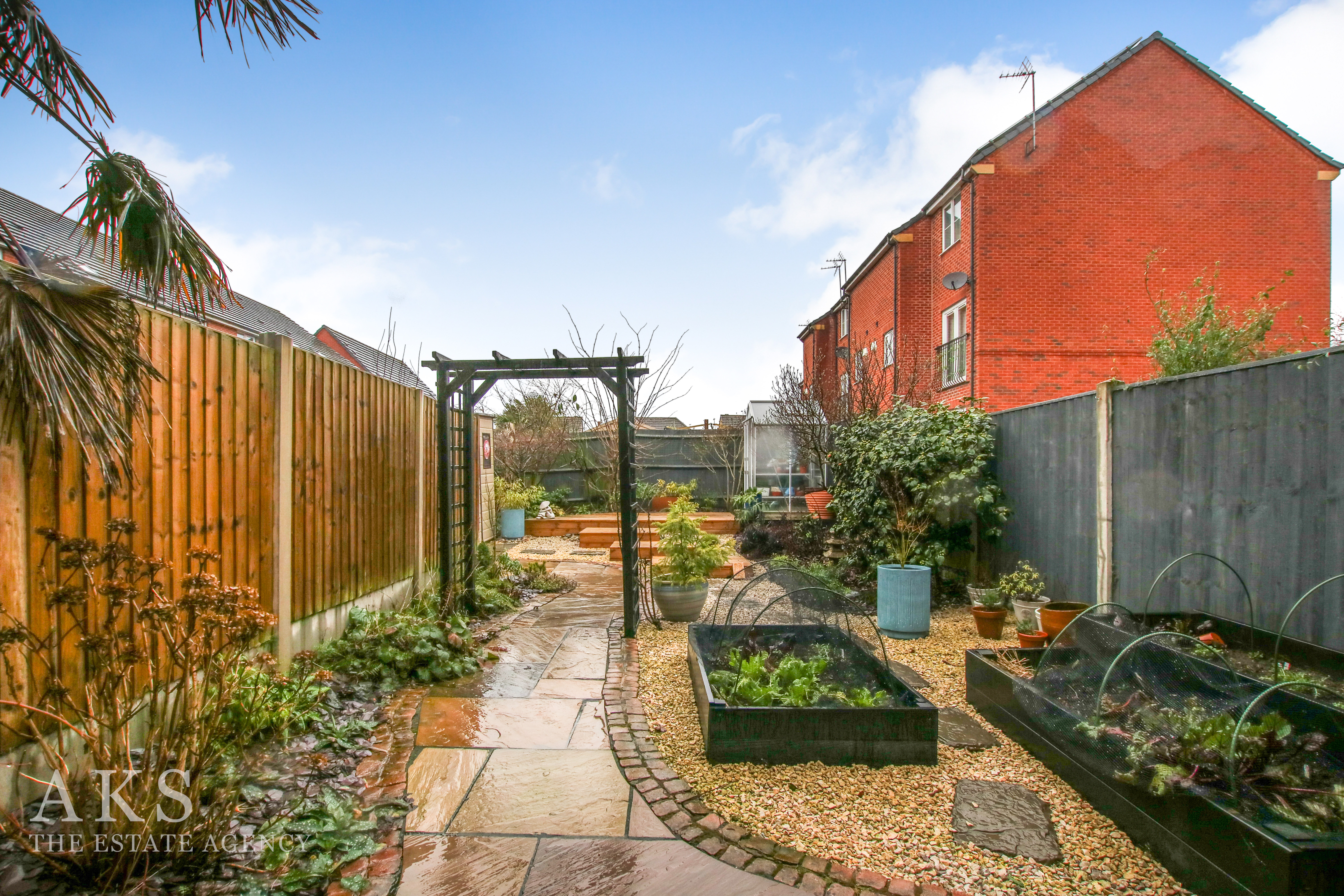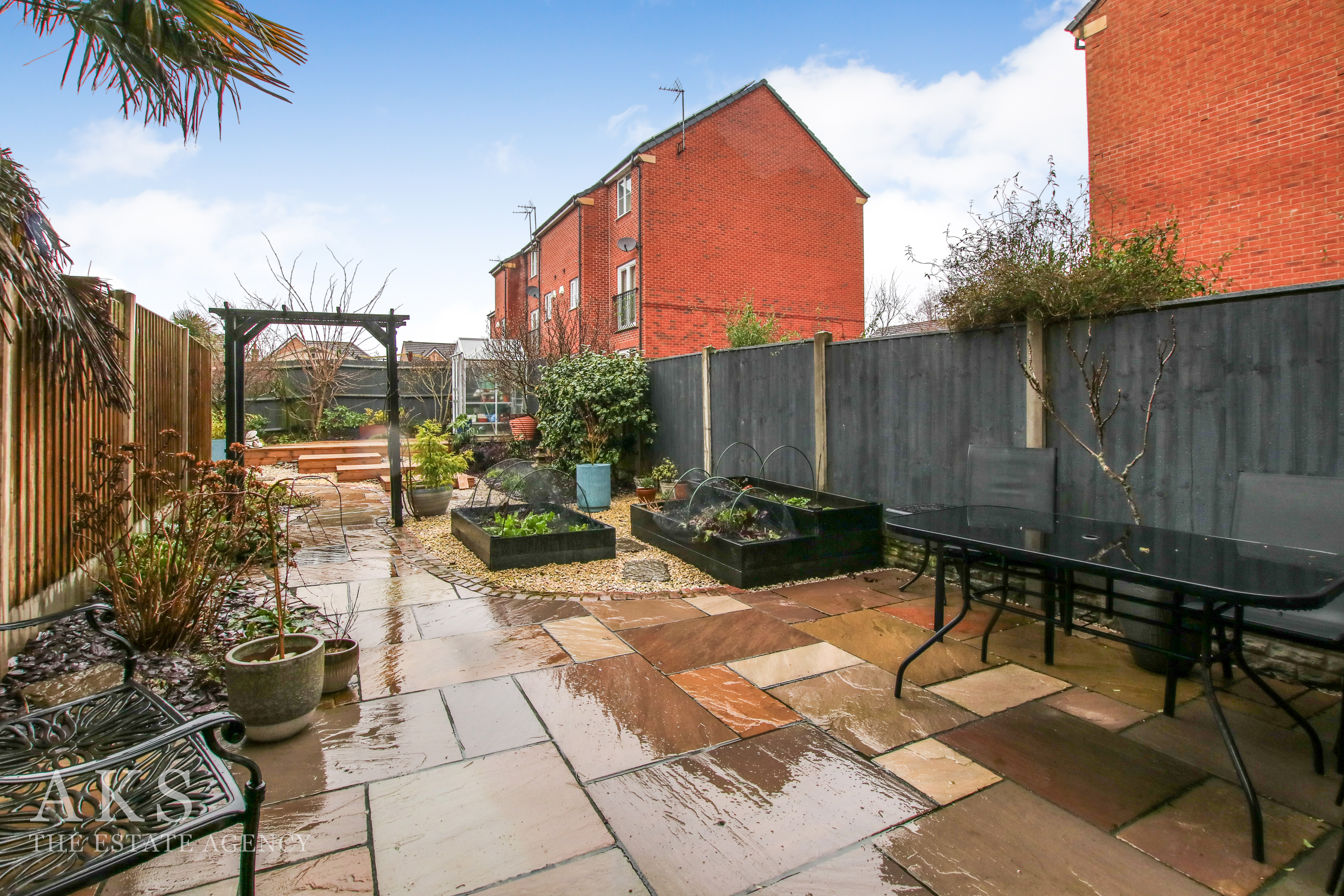 The garden is one of my favourite parts. It’s been fully landscaped to be low‑maintenance but still full of colour and character, with a patio, pathway, stoned area and decking. There’s plenty of storage space outside too, along with raised borders that are ideal for growing vegetables or plants if you enjoy a bit of gardening.